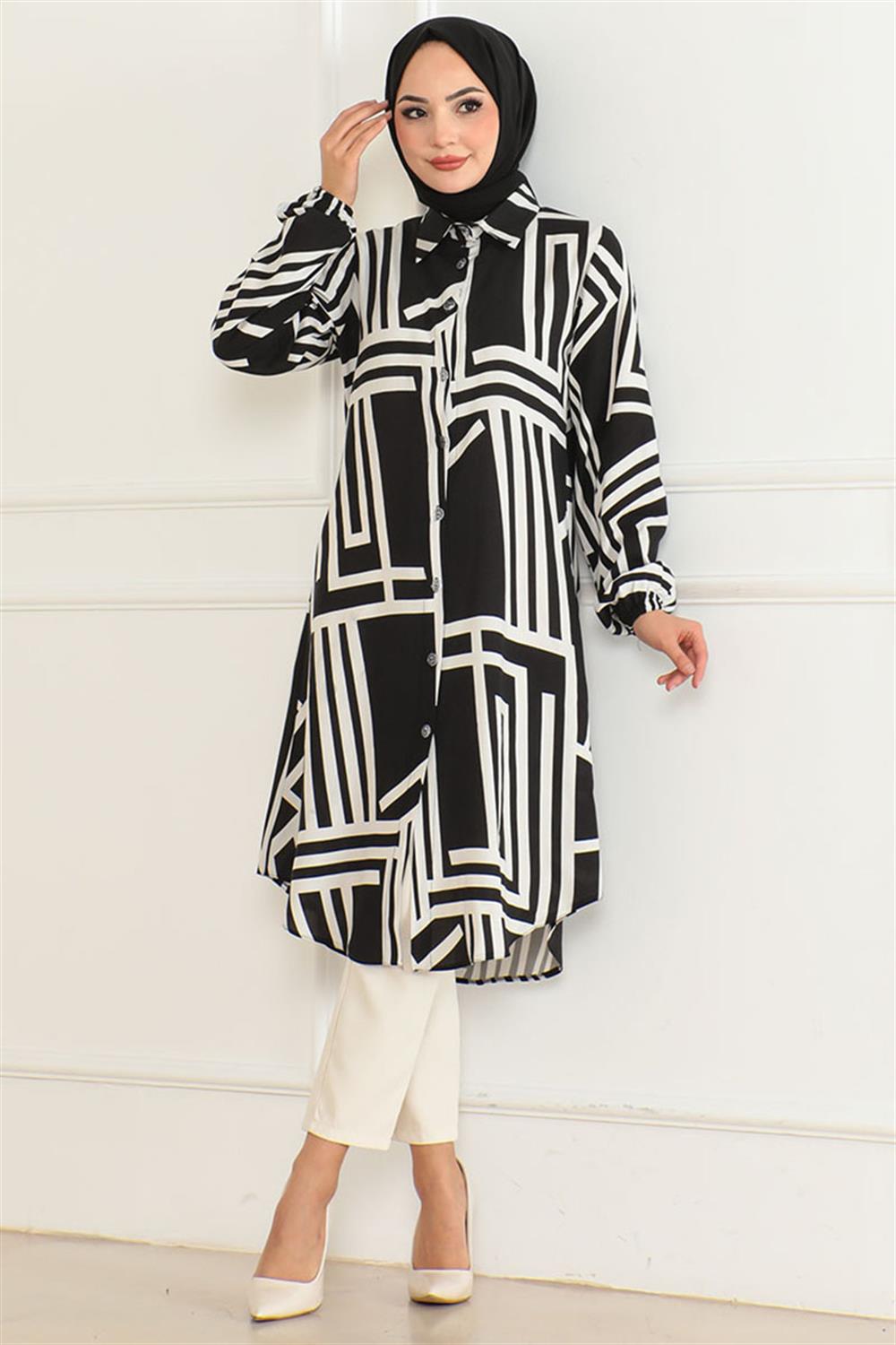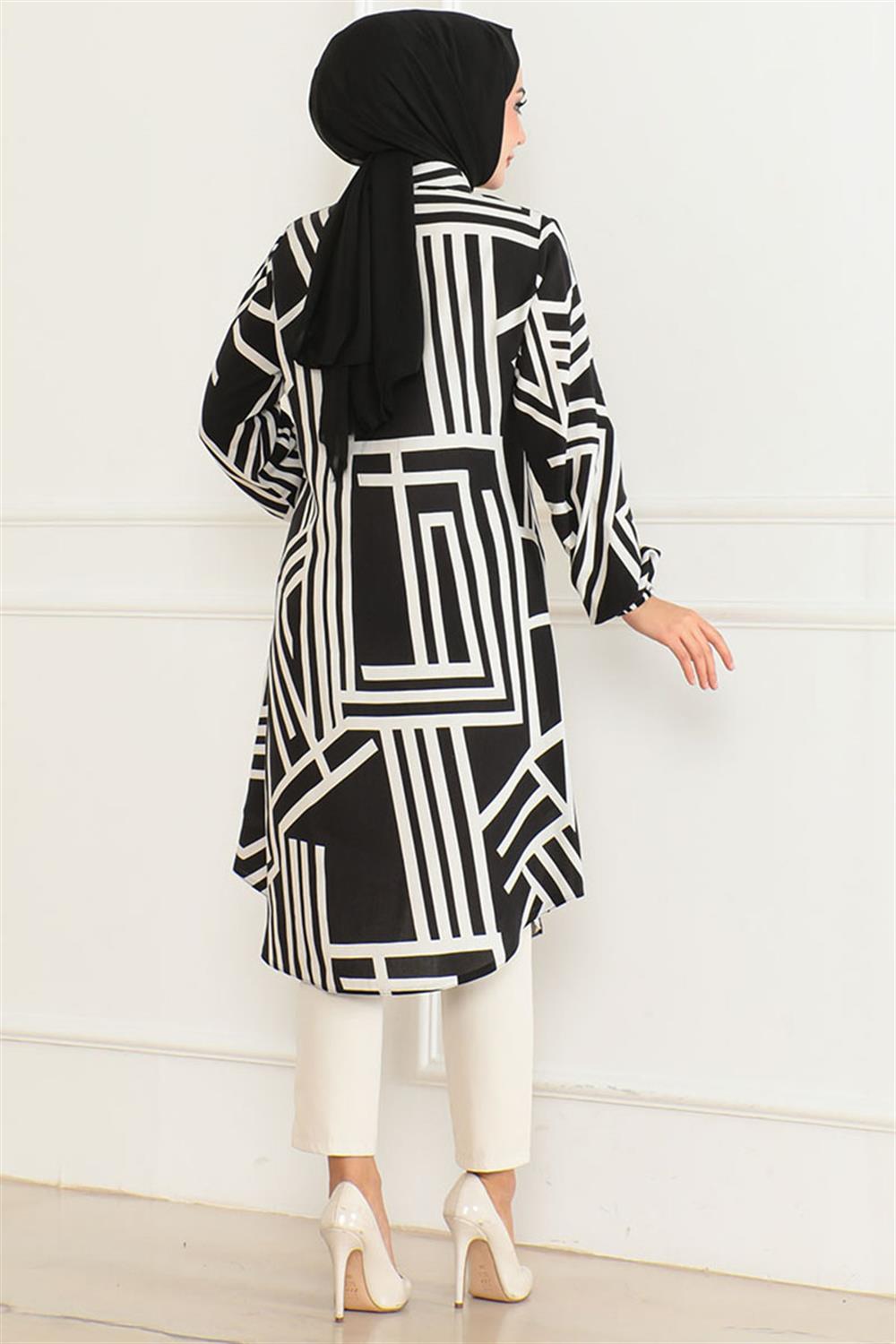 Geometrik Desen Viskon Tunik SİYAH