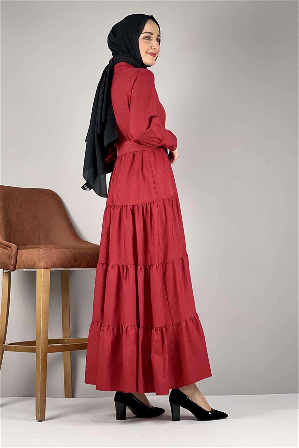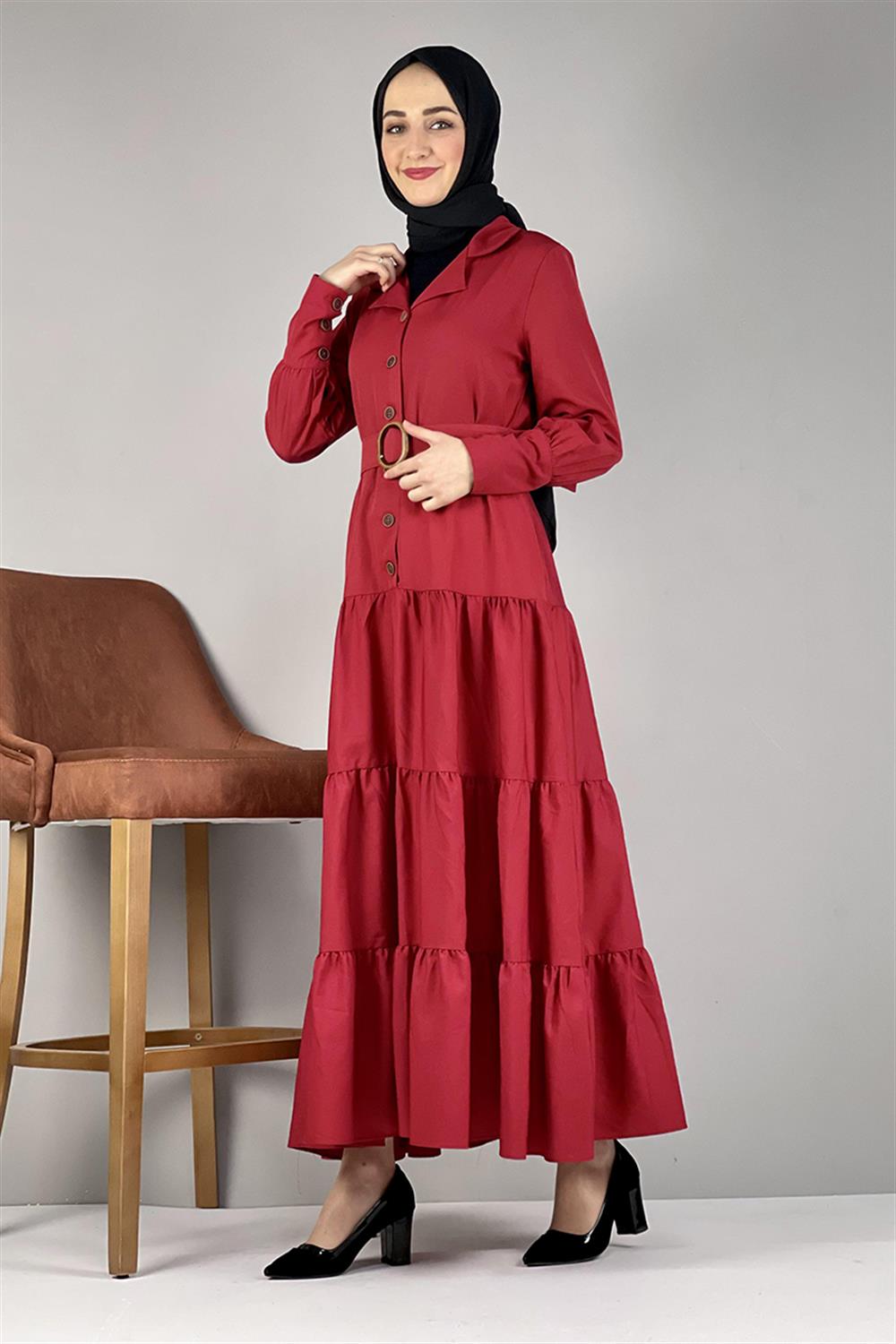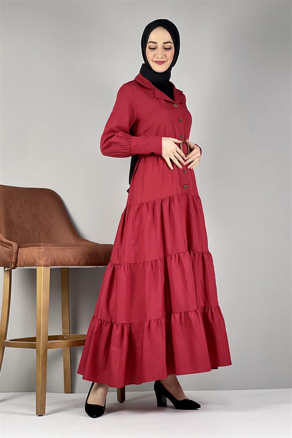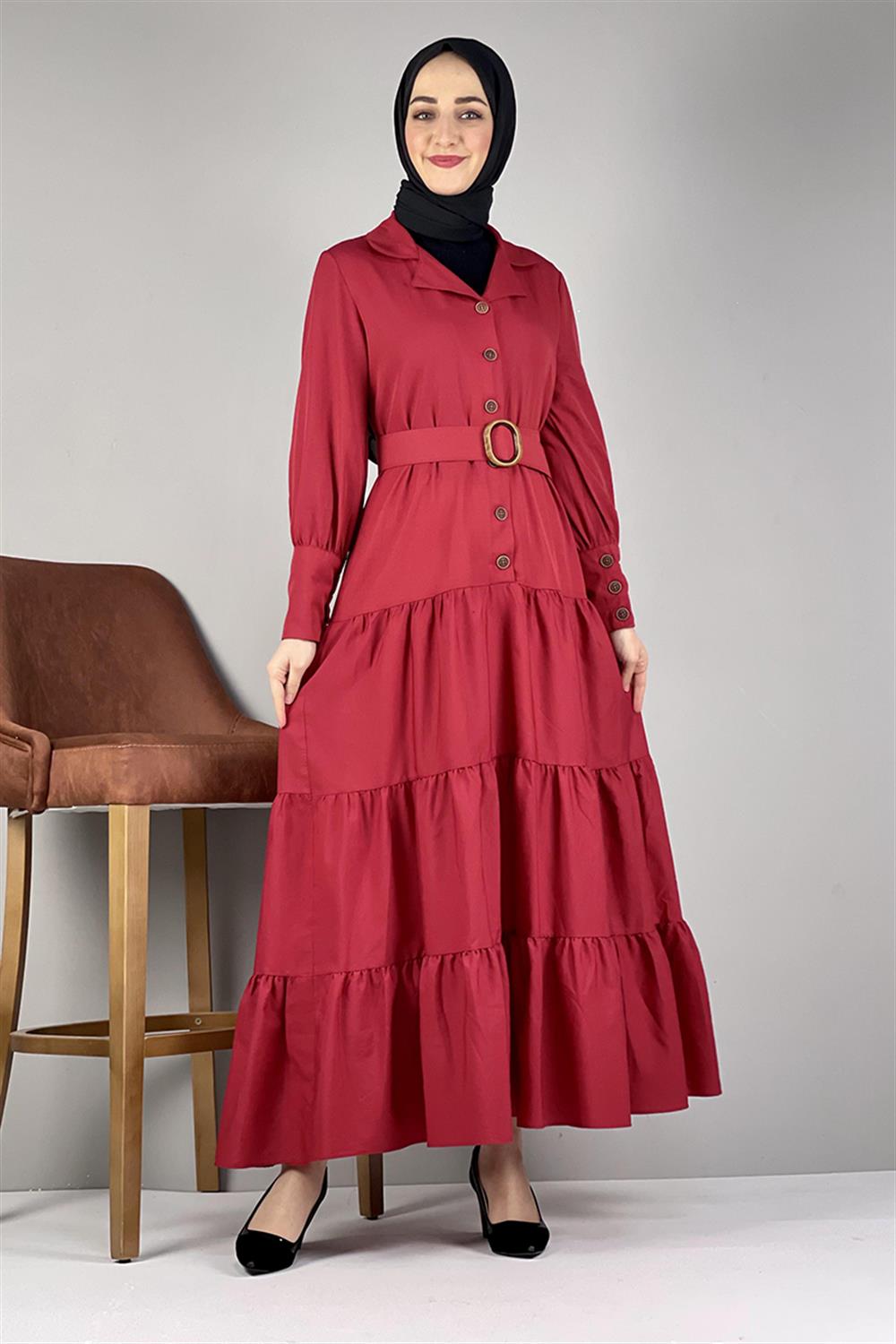 Gömlek Yaka Elbise Kırmızı