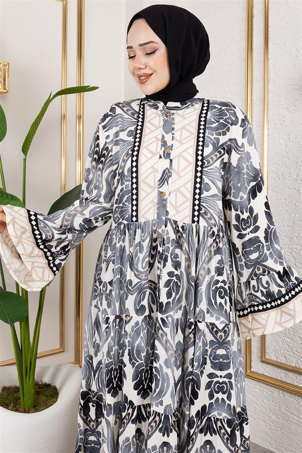 Viskon kumaştan üretilmiştir. Hakim yaka detayı ile rahat kullanıma sahiptir.