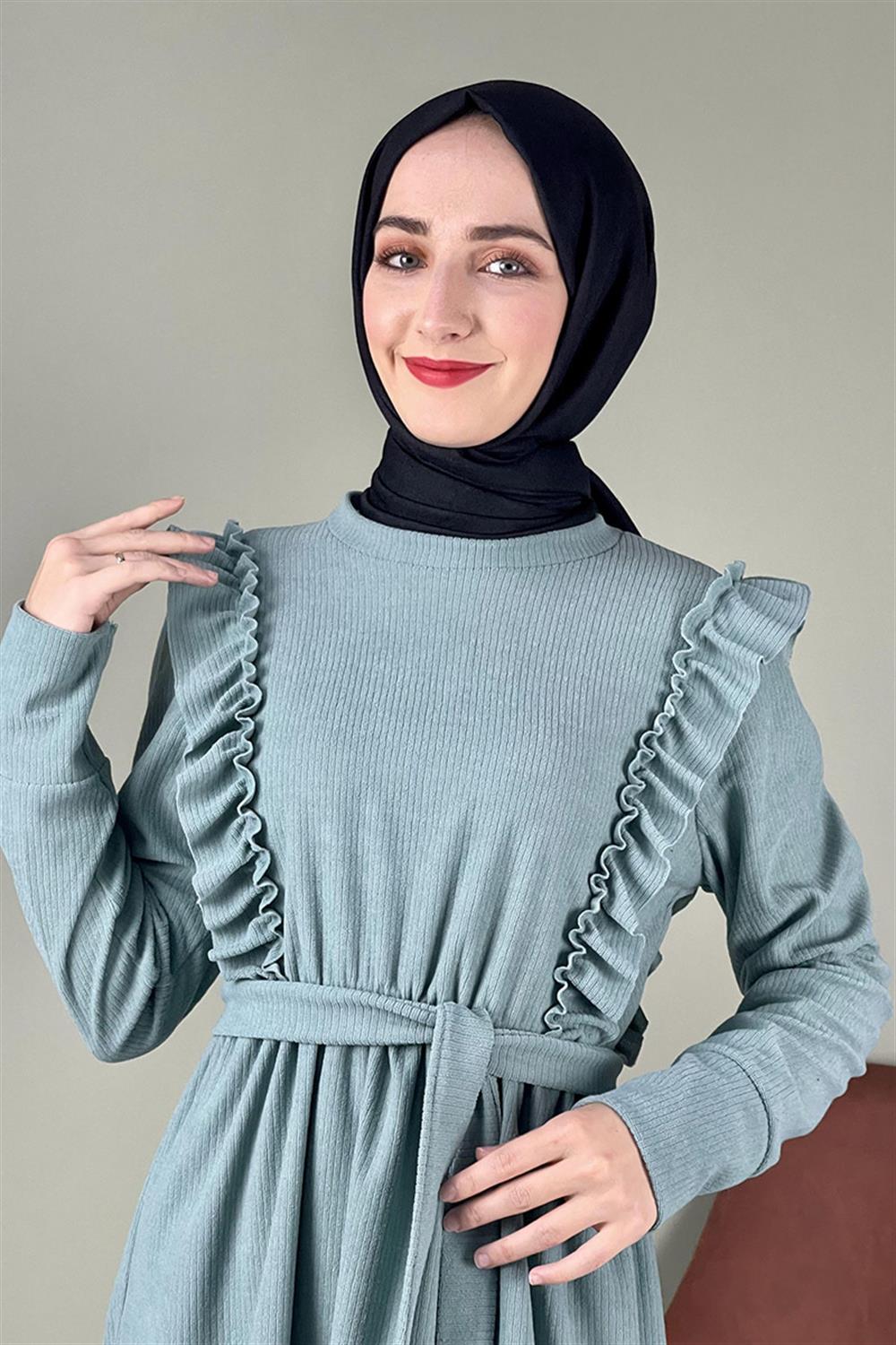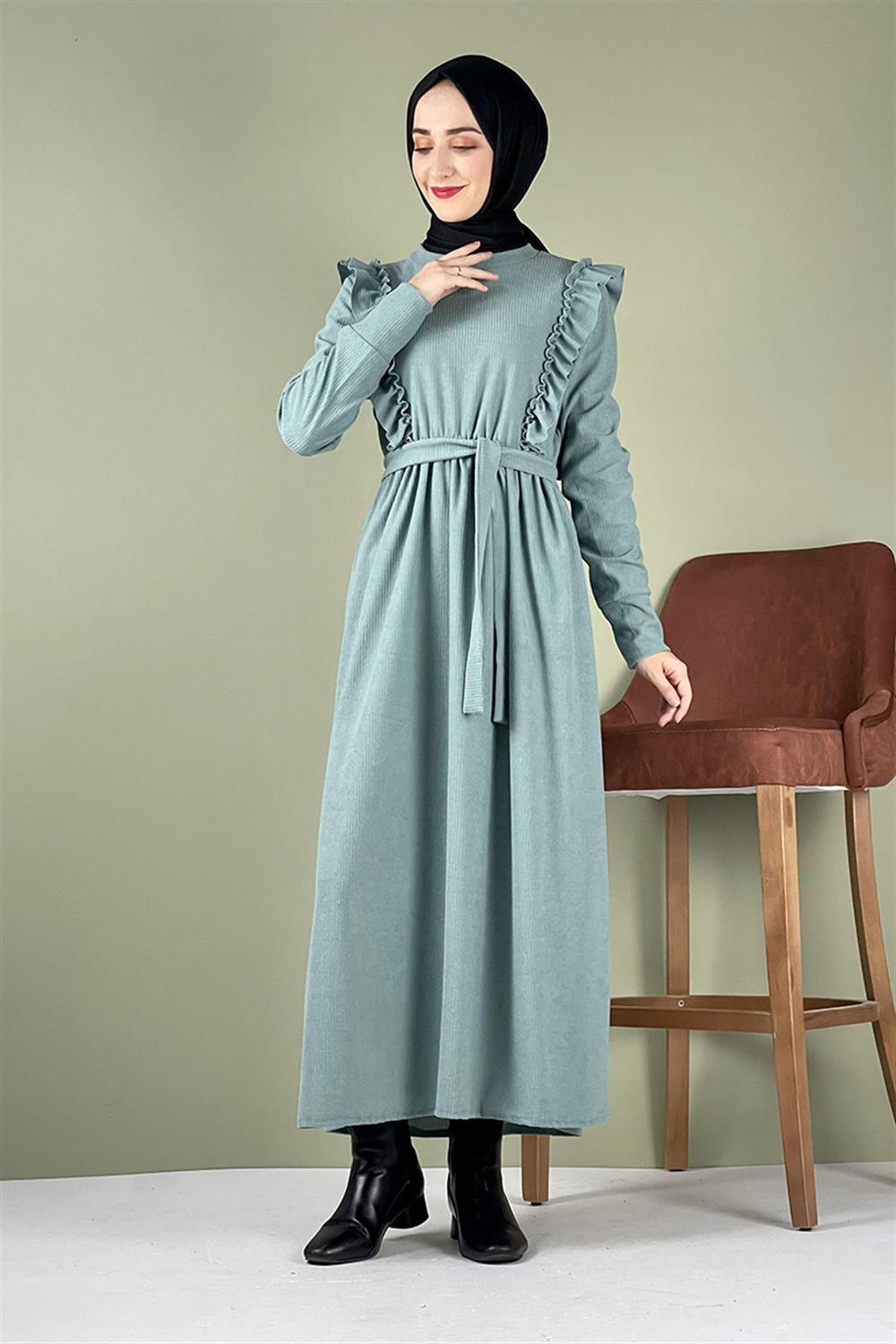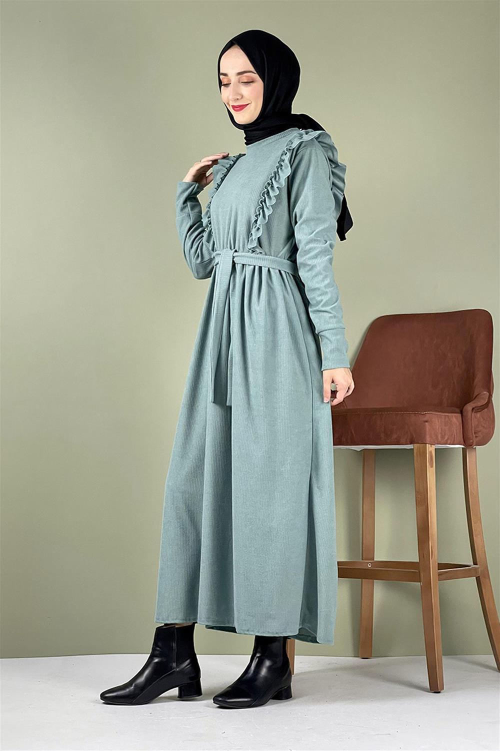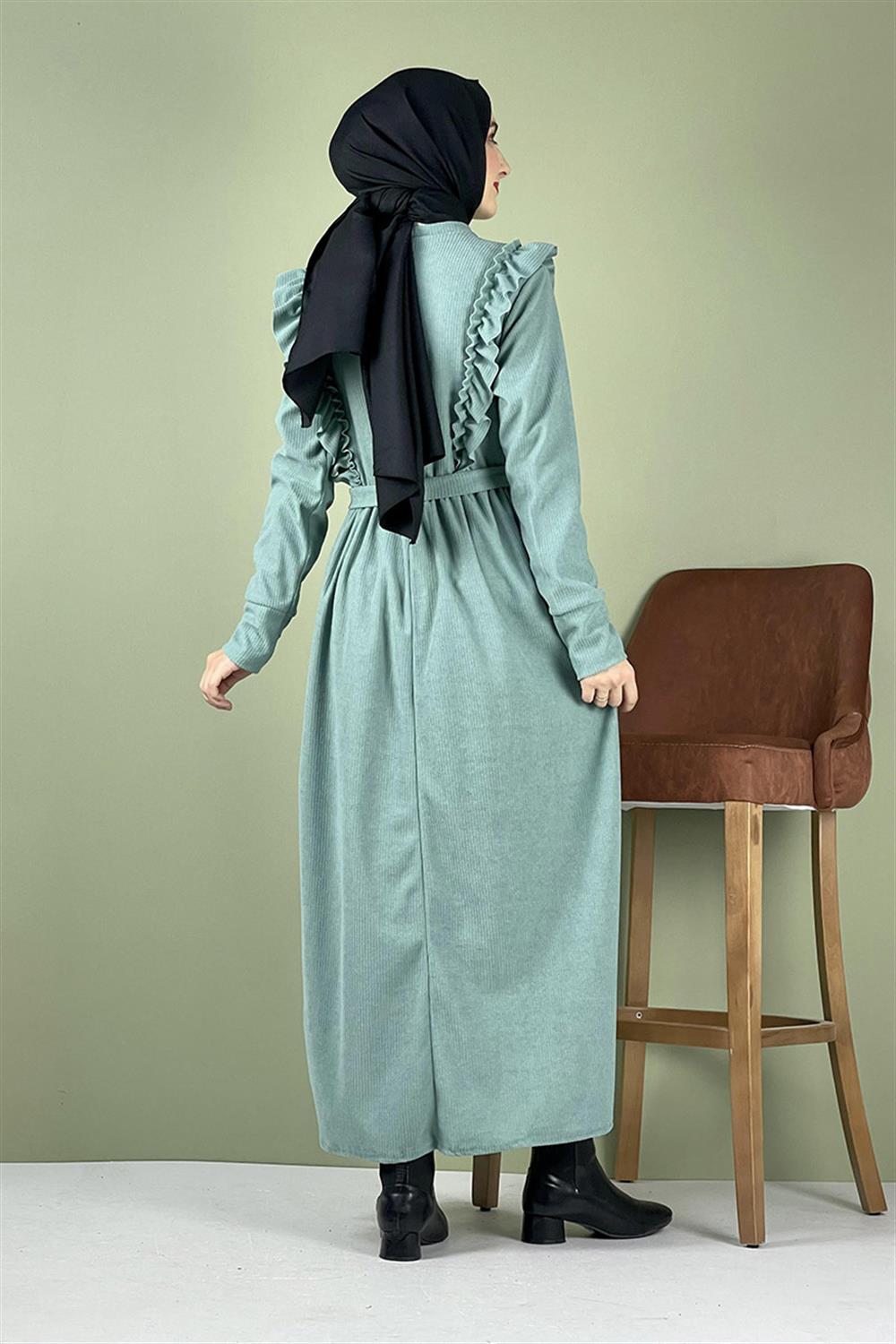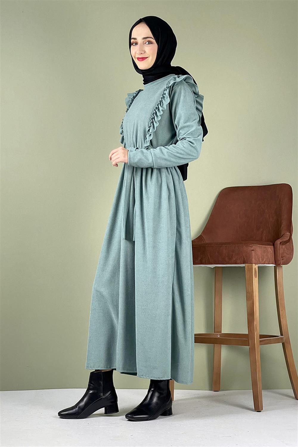 Kadife Fırfırlı Elbise Çağla
