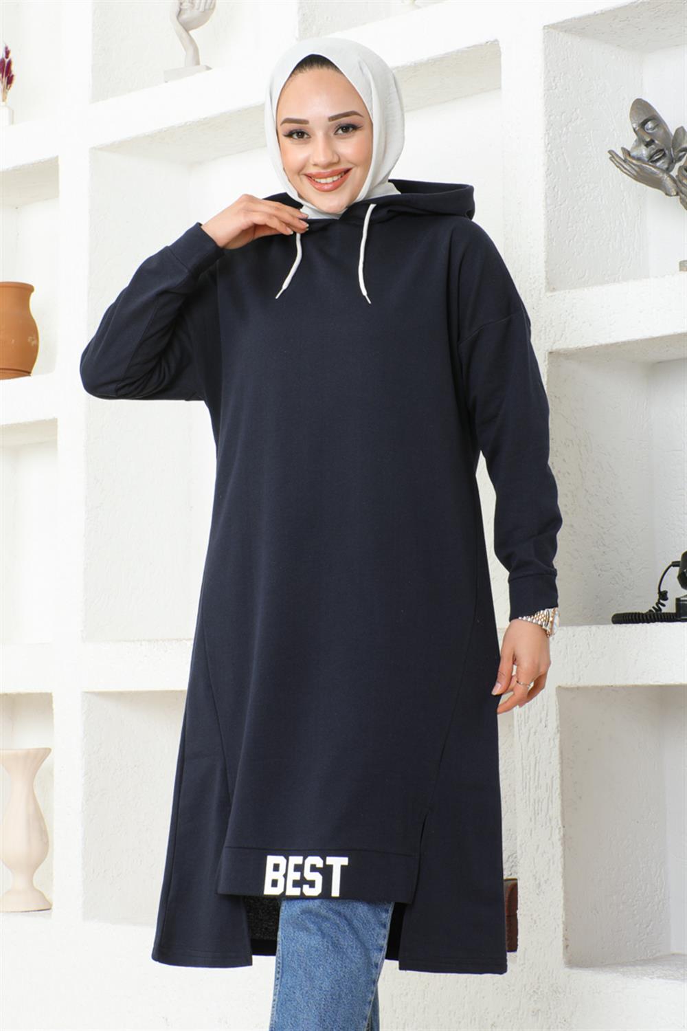 Kapüşonlu Spor Tunik LACİVERT