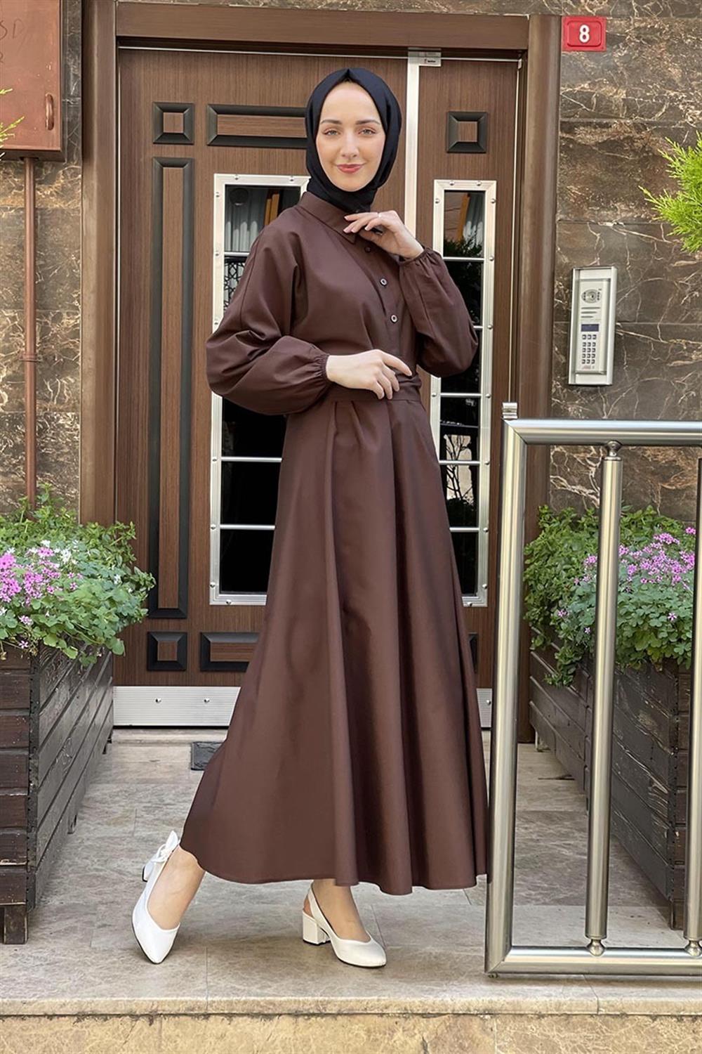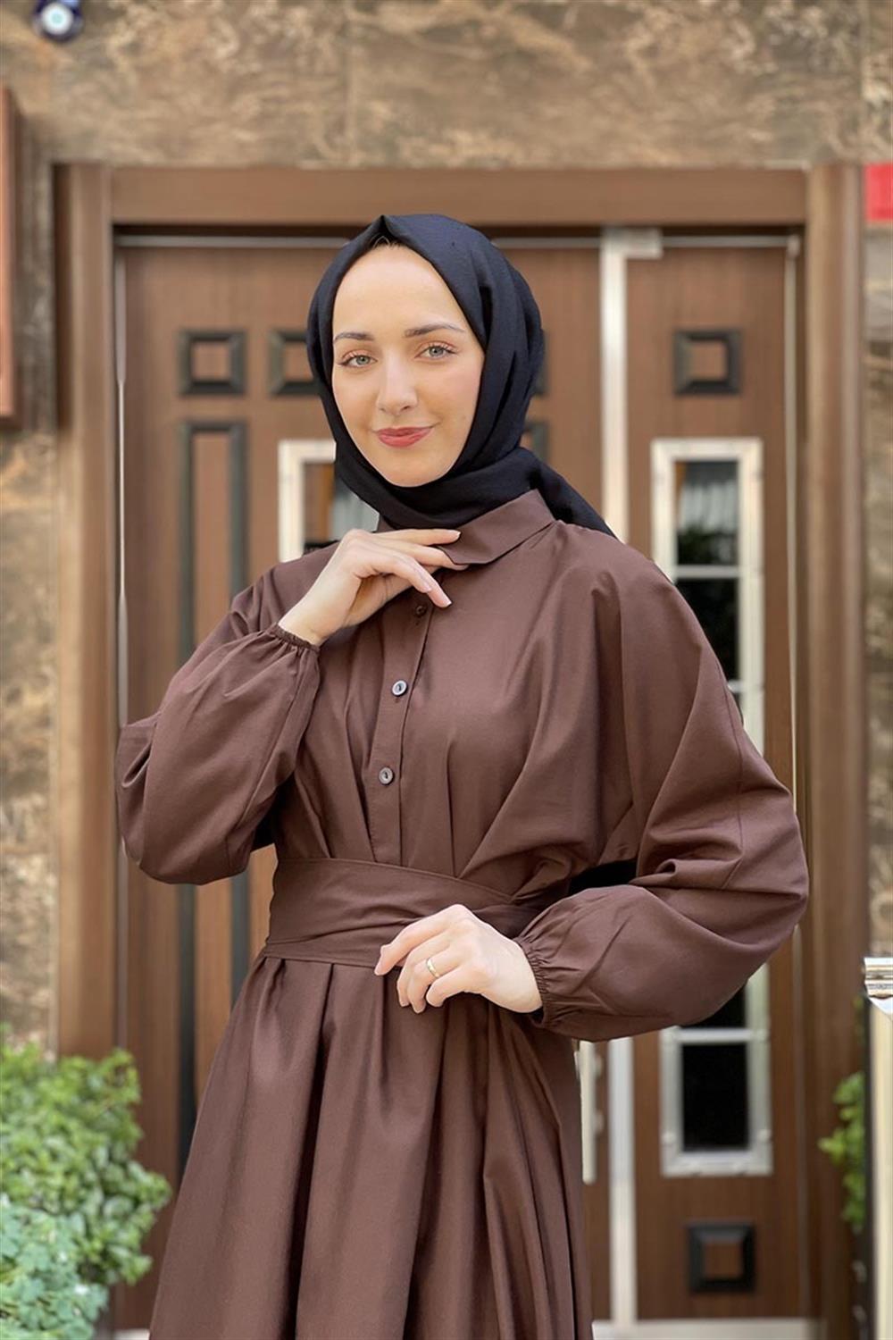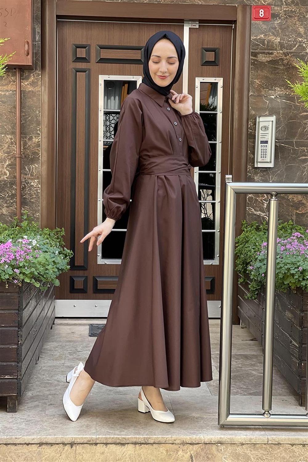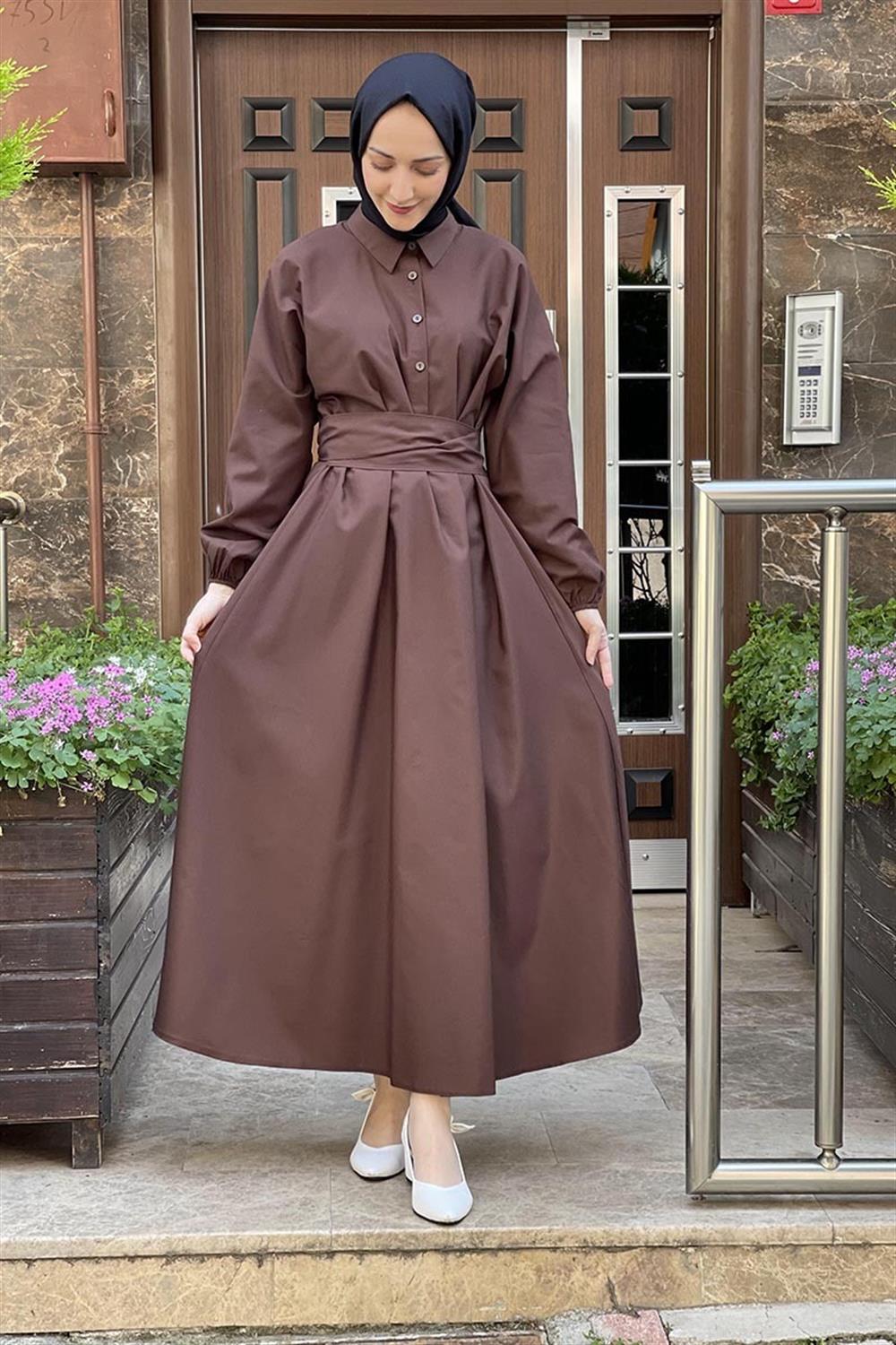 KEMERLİ POPLİN ELBİSE KAHVERENGİ