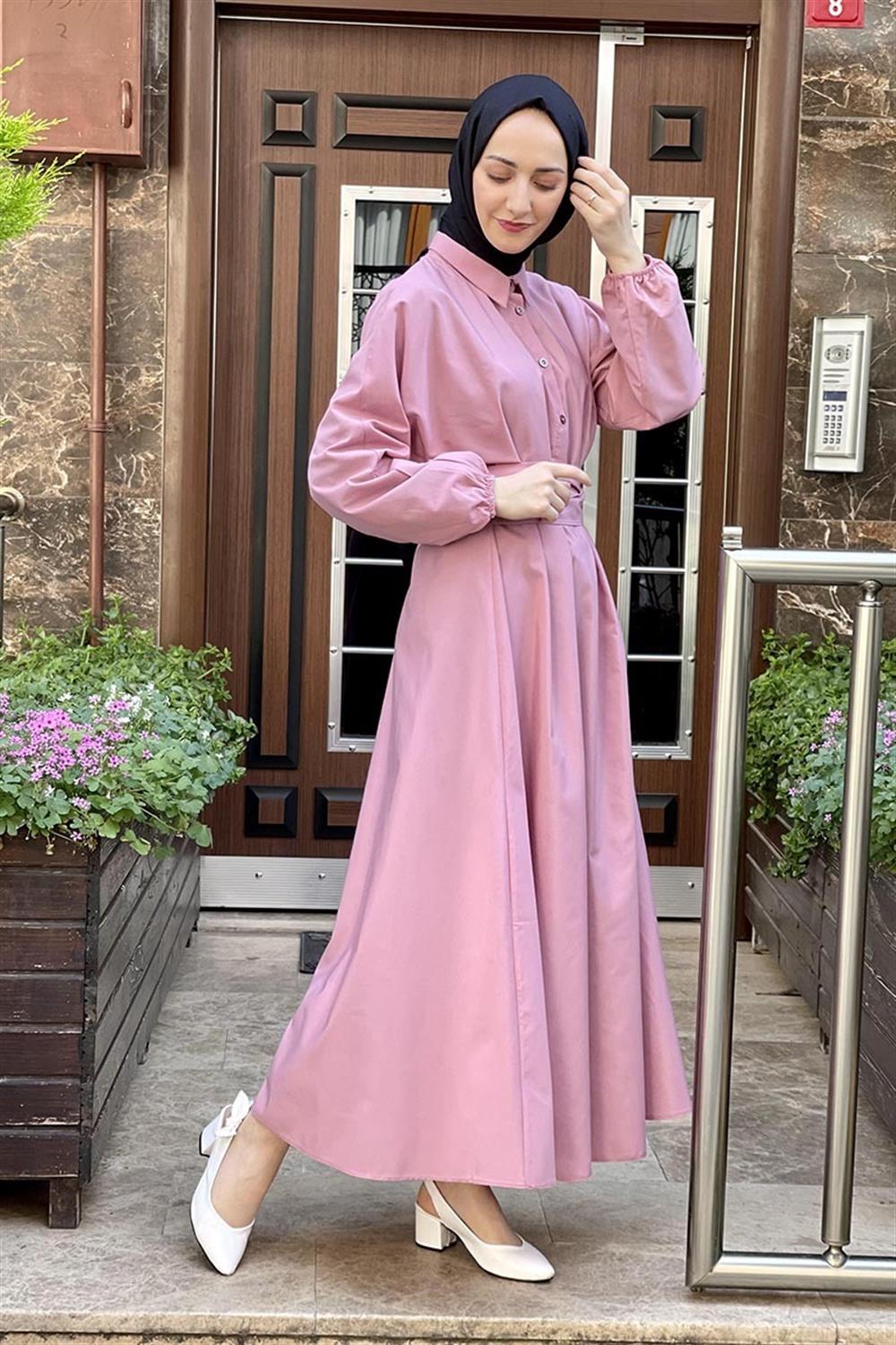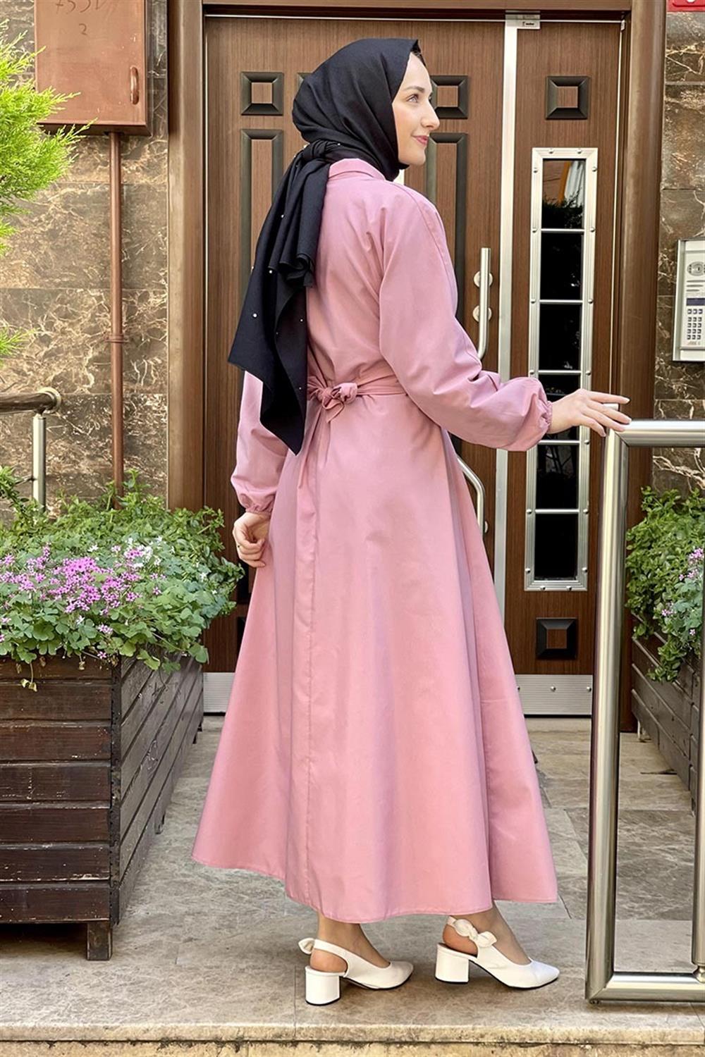 KEMERLİ POPLİN ELBİSE PUDRA