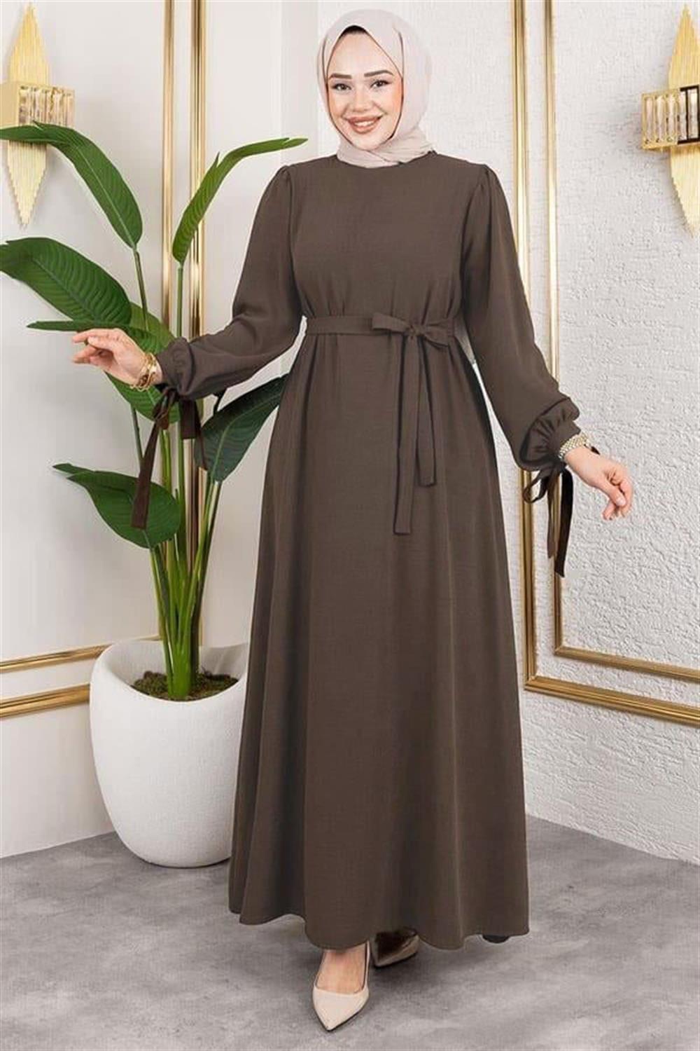 Kolları Bağlamalı Tesettür Elbise KOYU VİZON