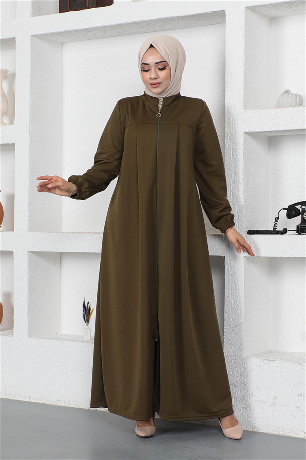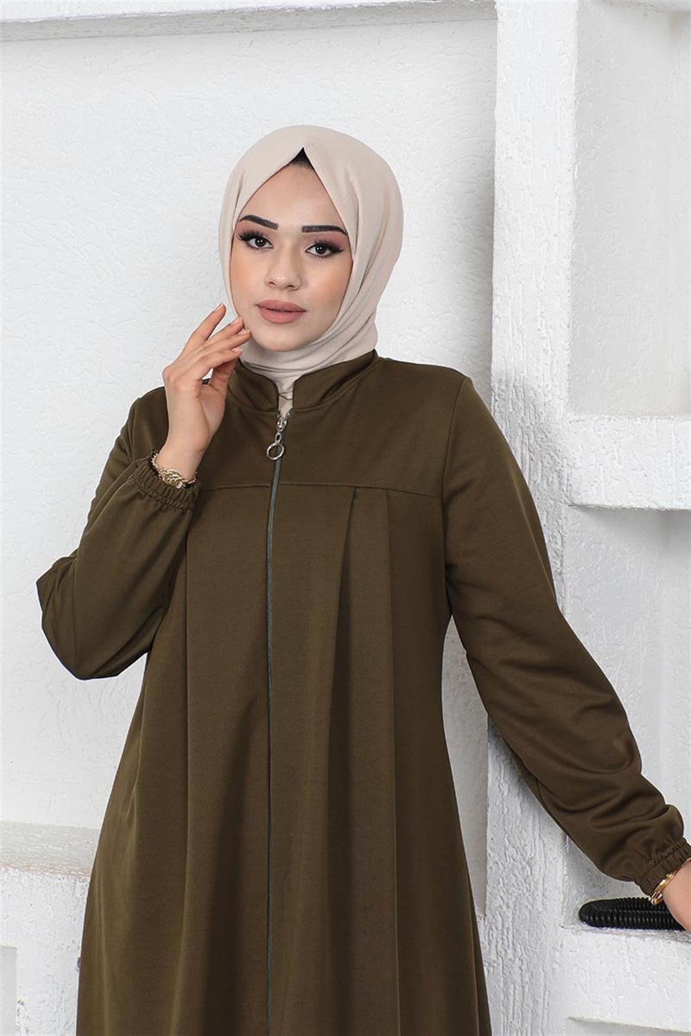 Kolları Büzgülü Pileli Ferace HAKİ
