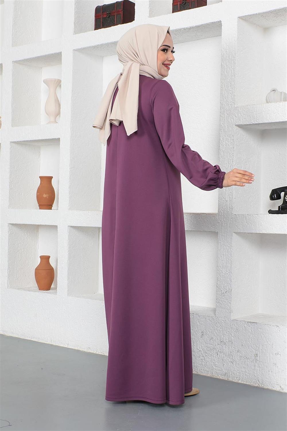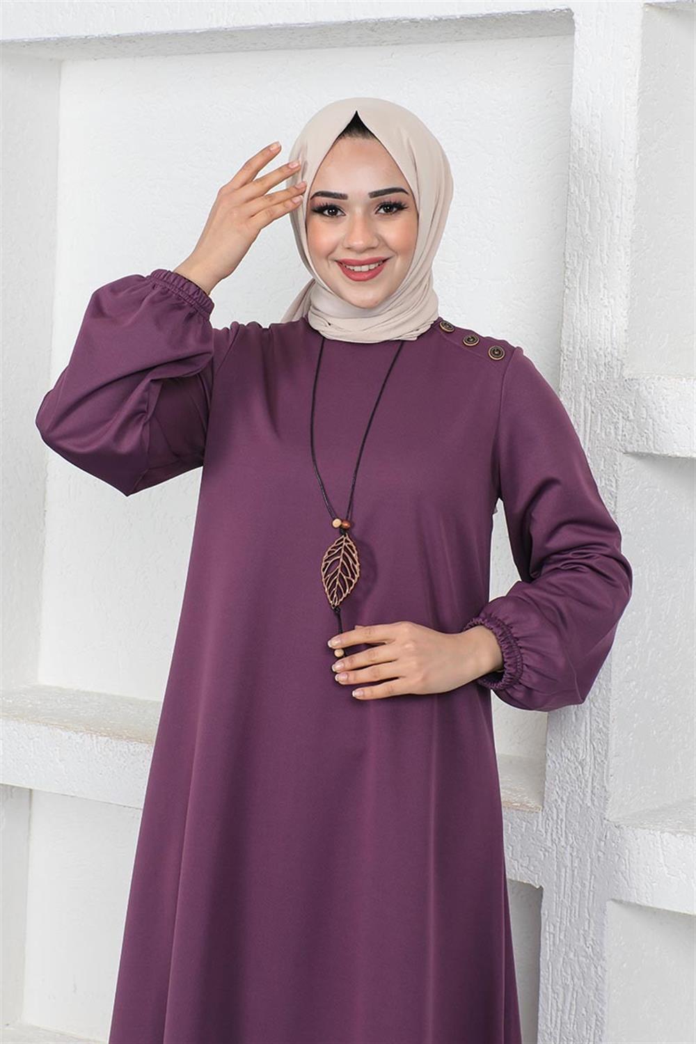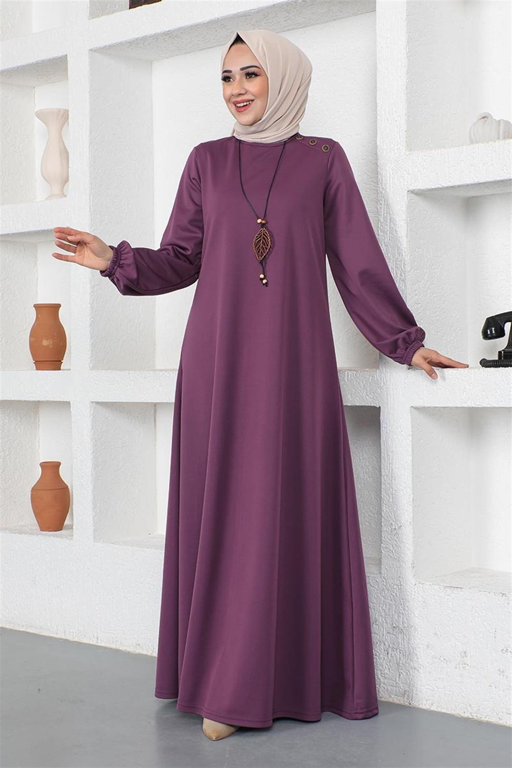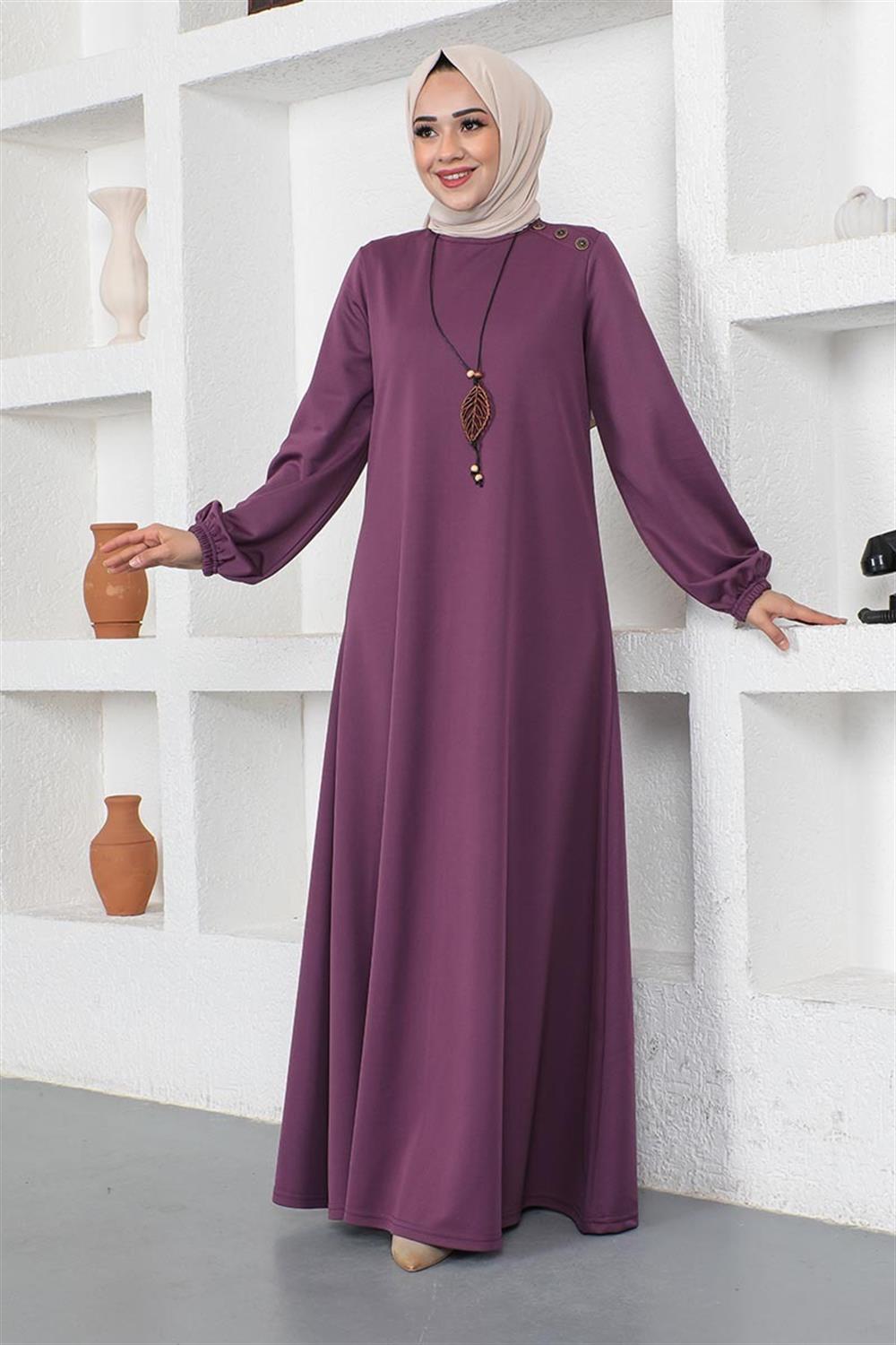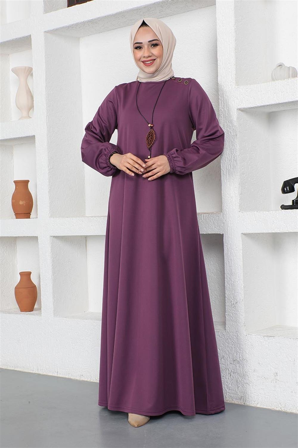 Kolyeli Bisiklet Yaka Tesettür Elbise