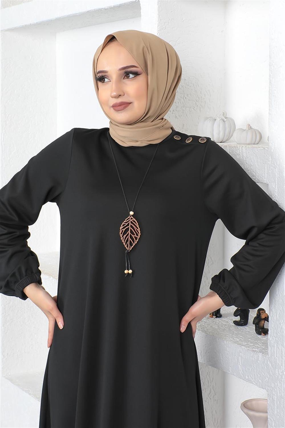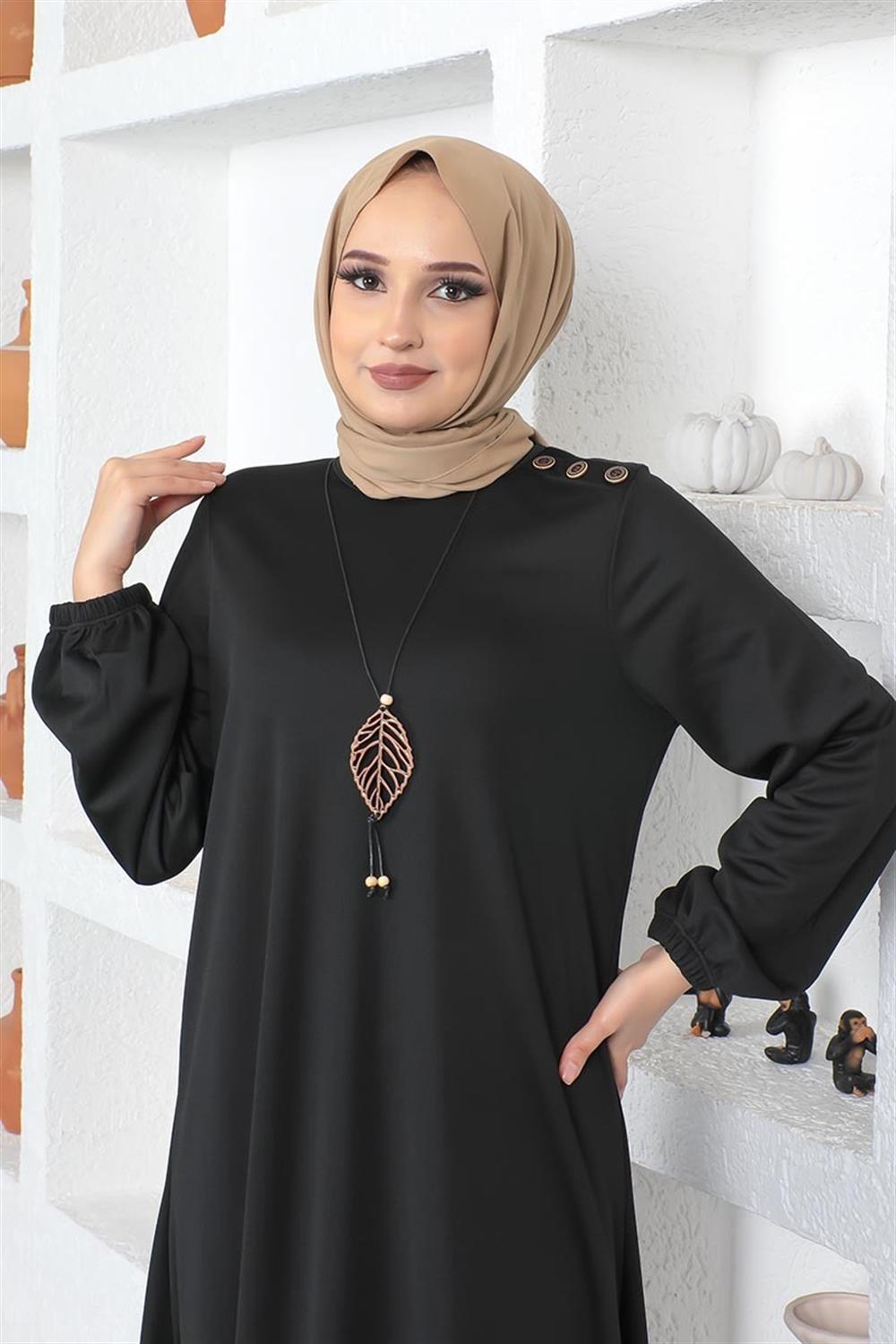 Kolyeli Bisiklet Yaka Tesettür Elbise