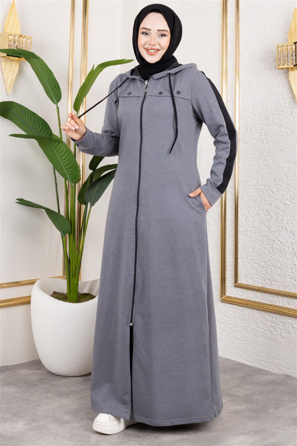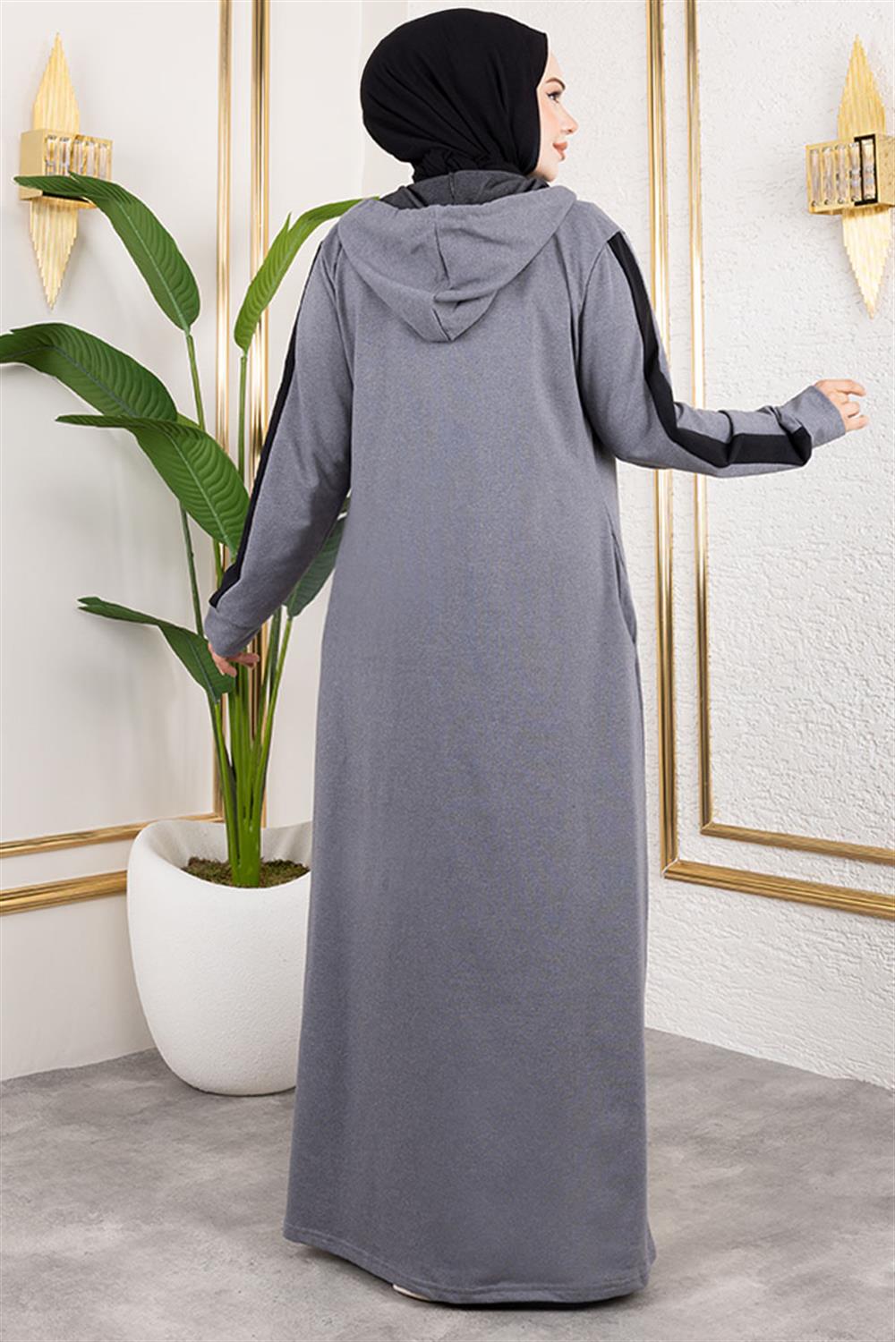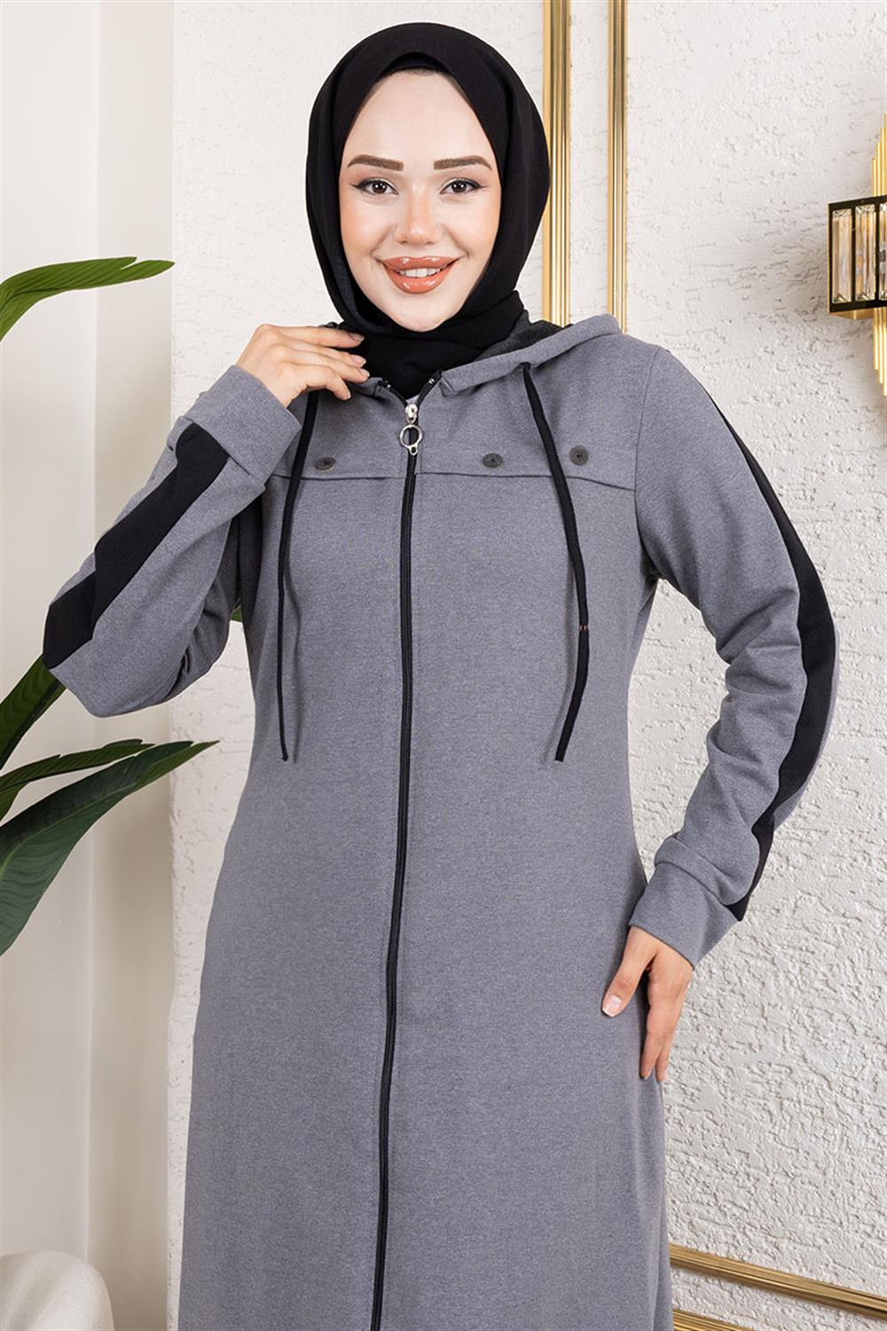 Kuş Gözü Şerit Detay Spor Ferace GRİ