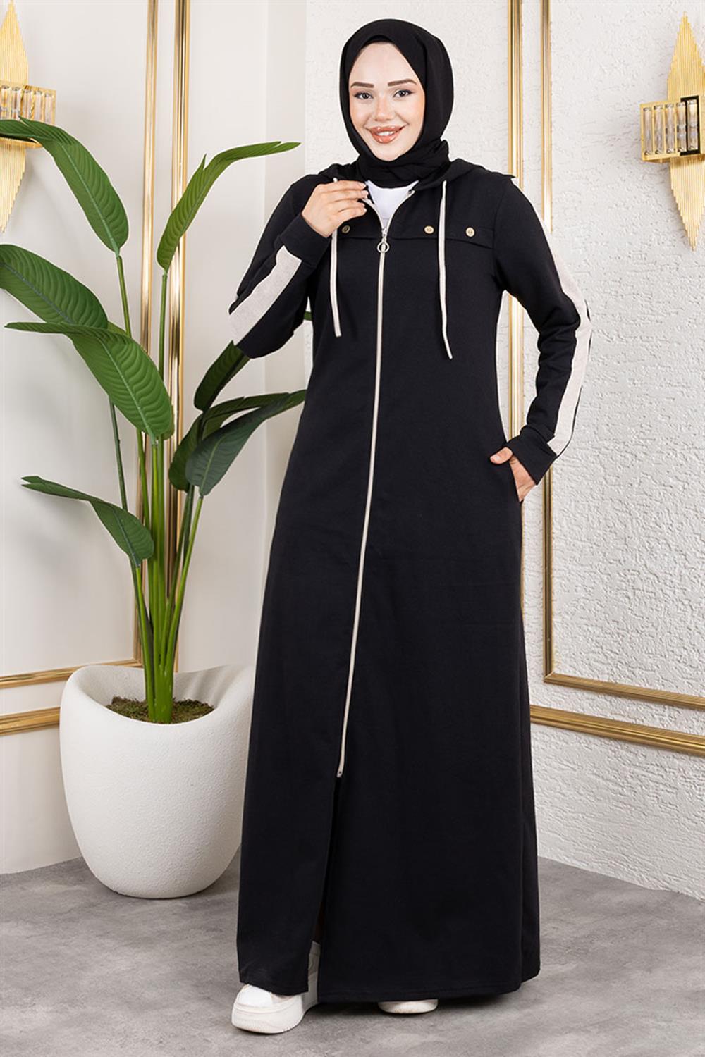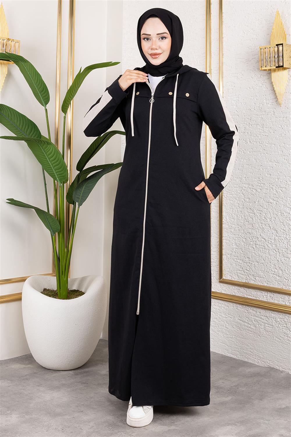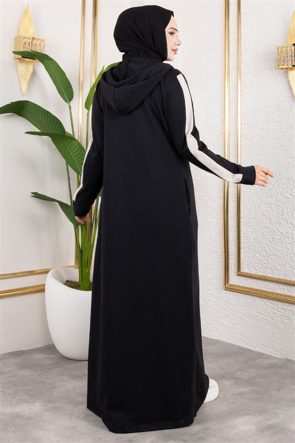 Kuş Gözü Şerit Detay Spor Ferace SİYAH