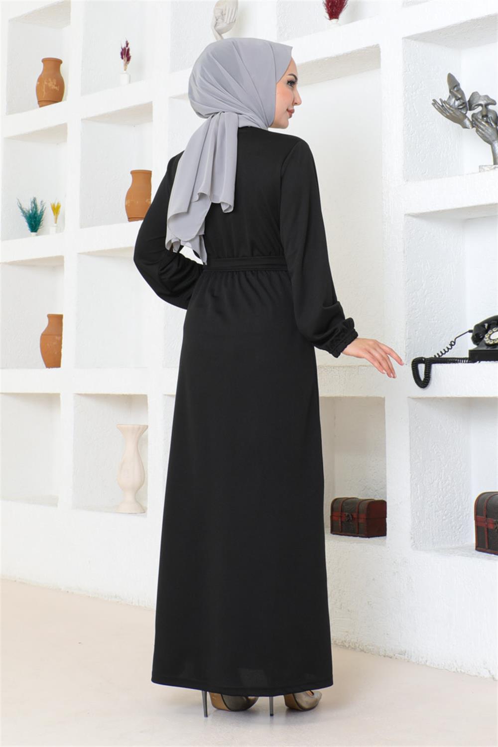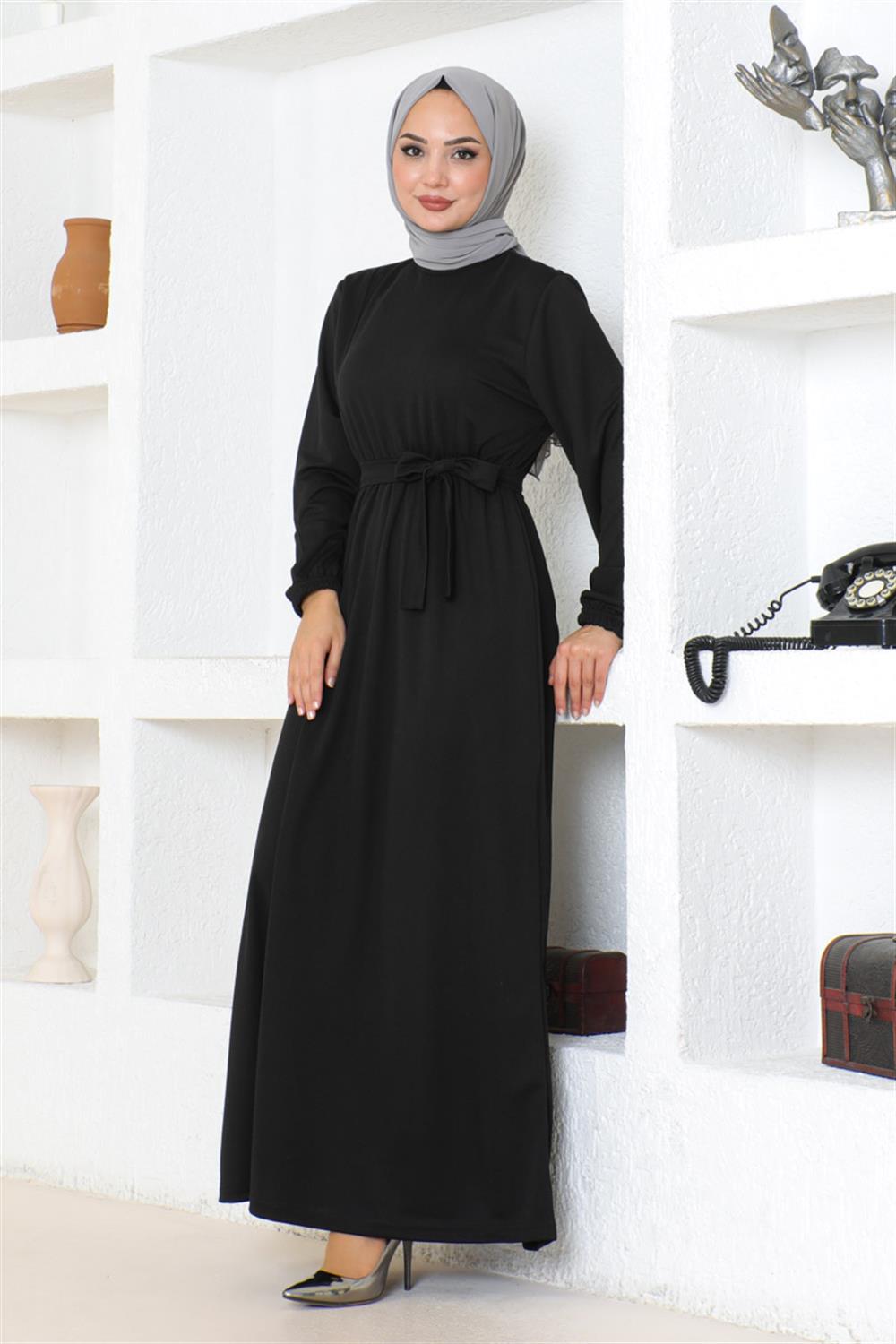 Kuşak Detaylı Tesettür Elbise SİYAH