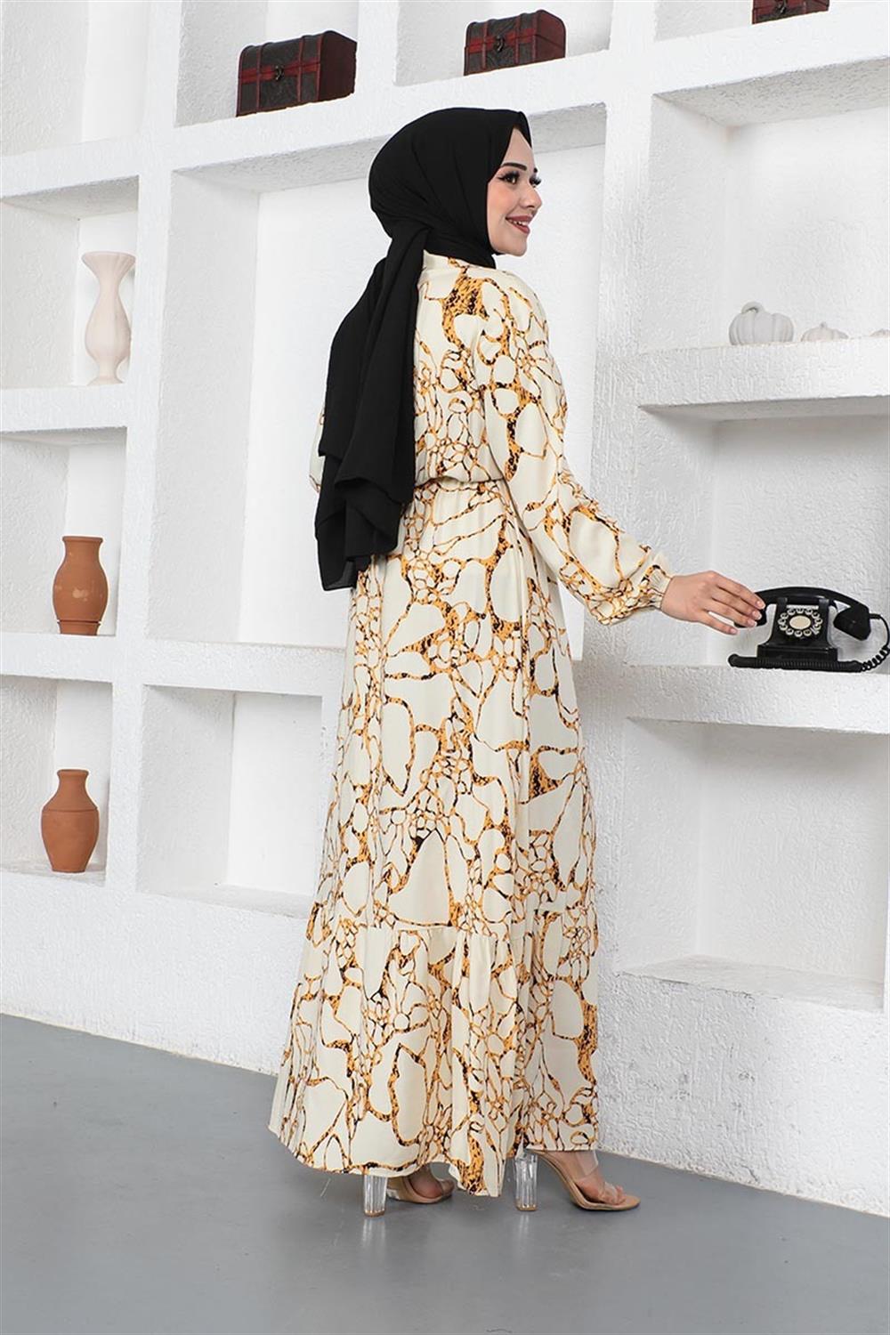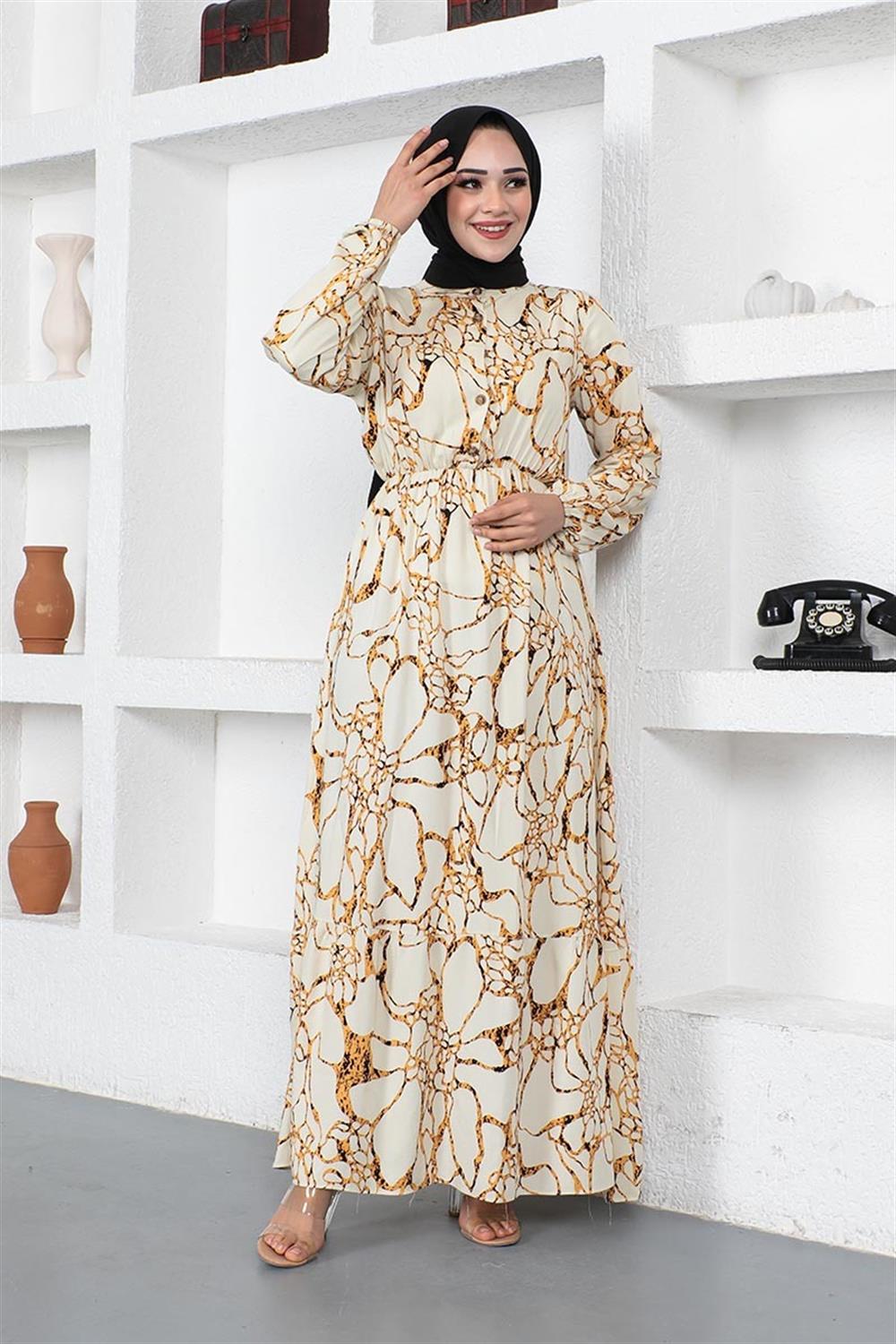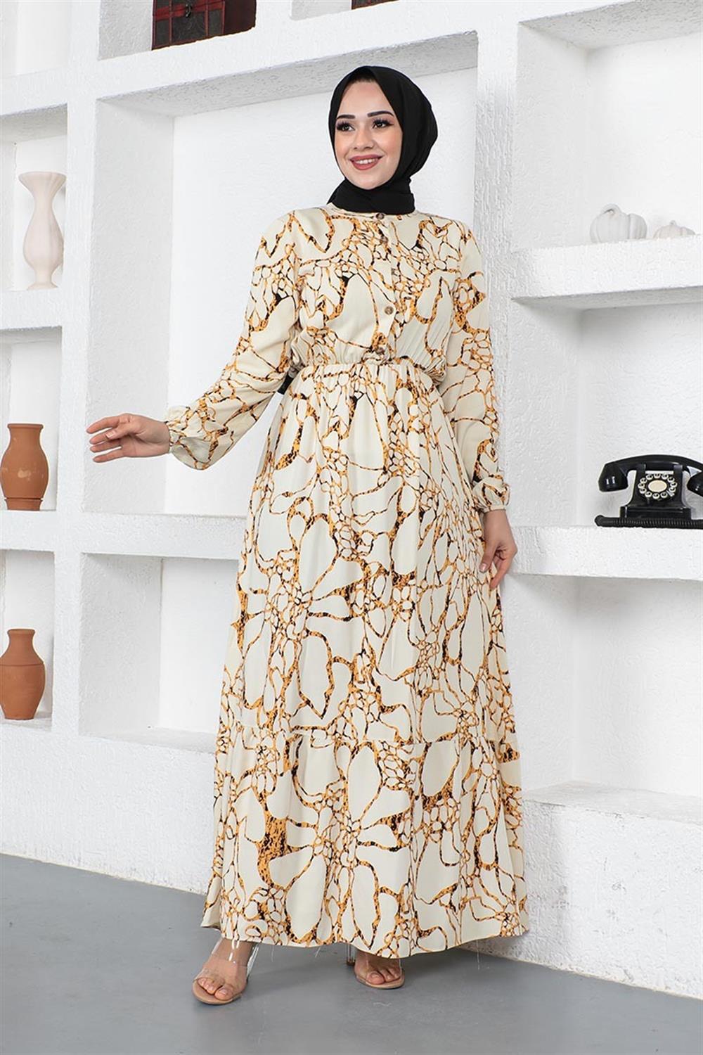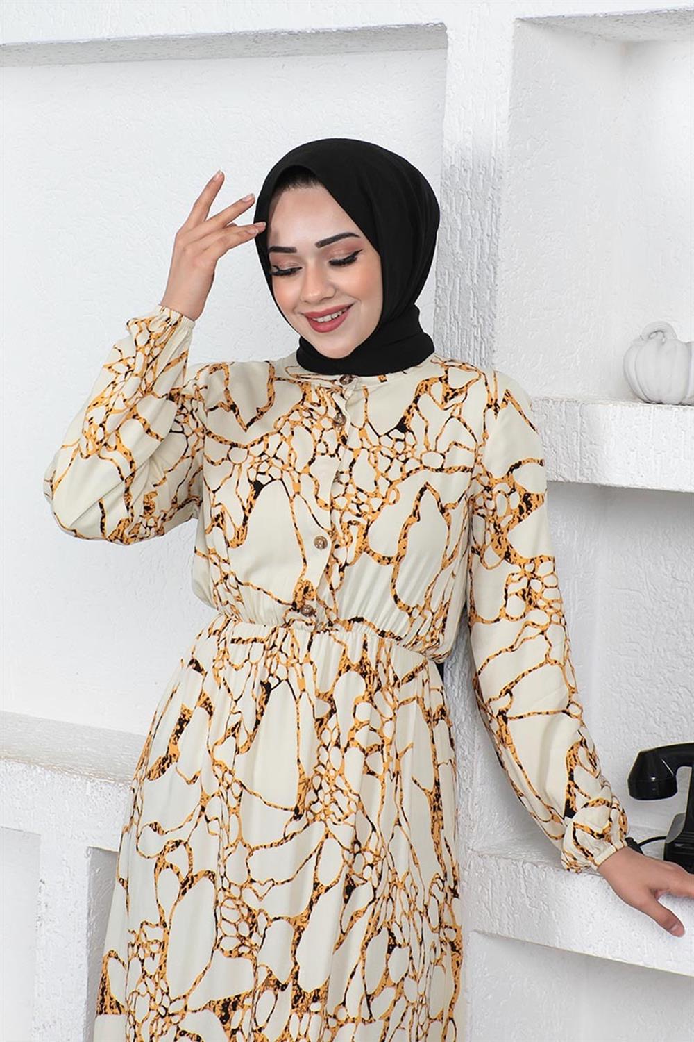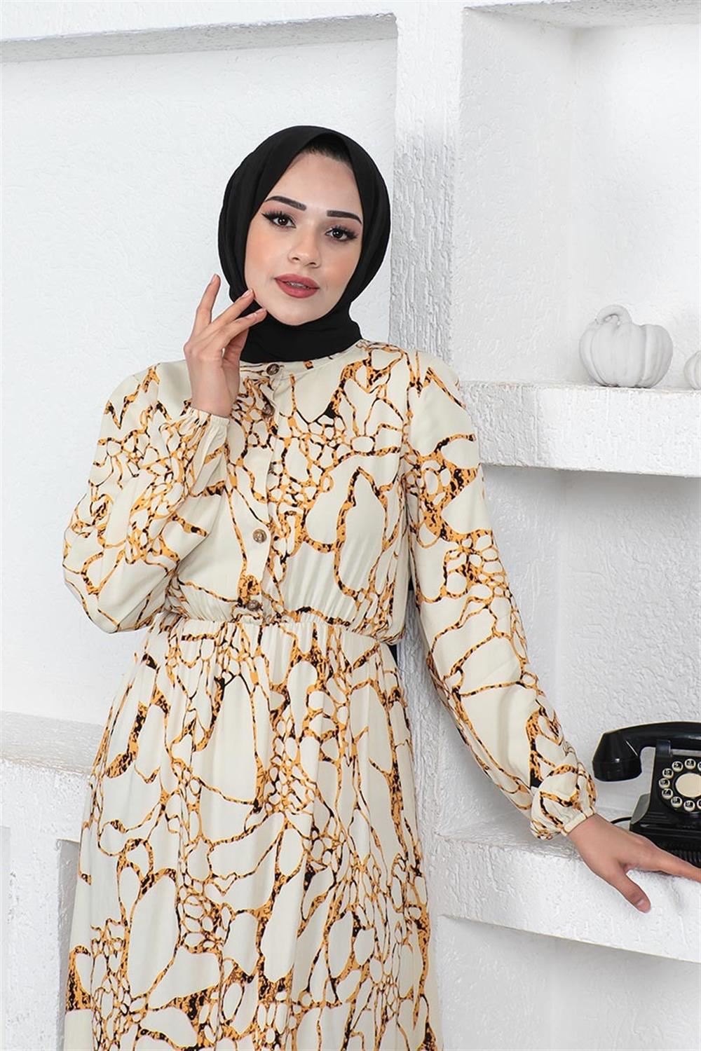 Mermer Desenli Tesettür Elbise