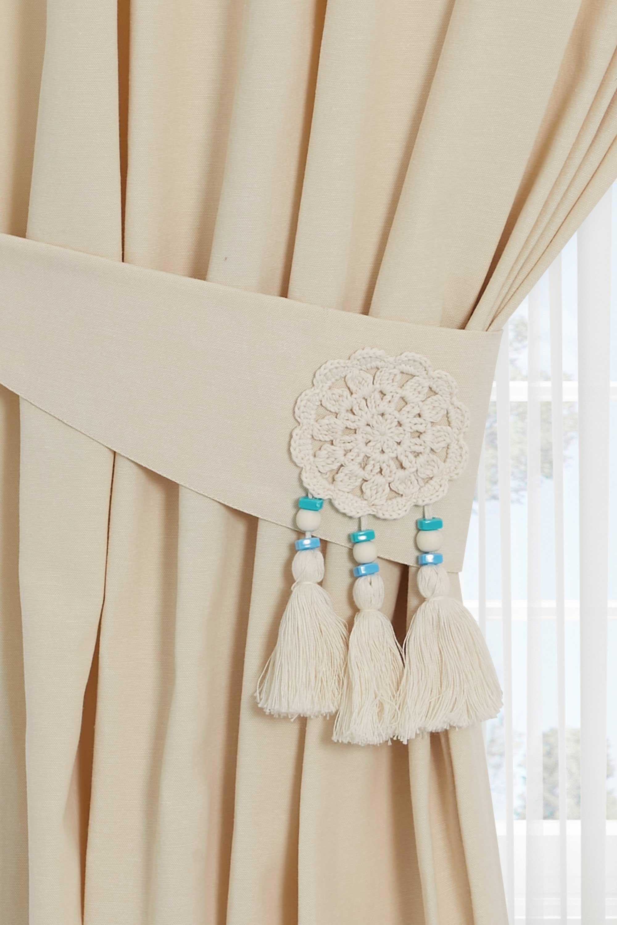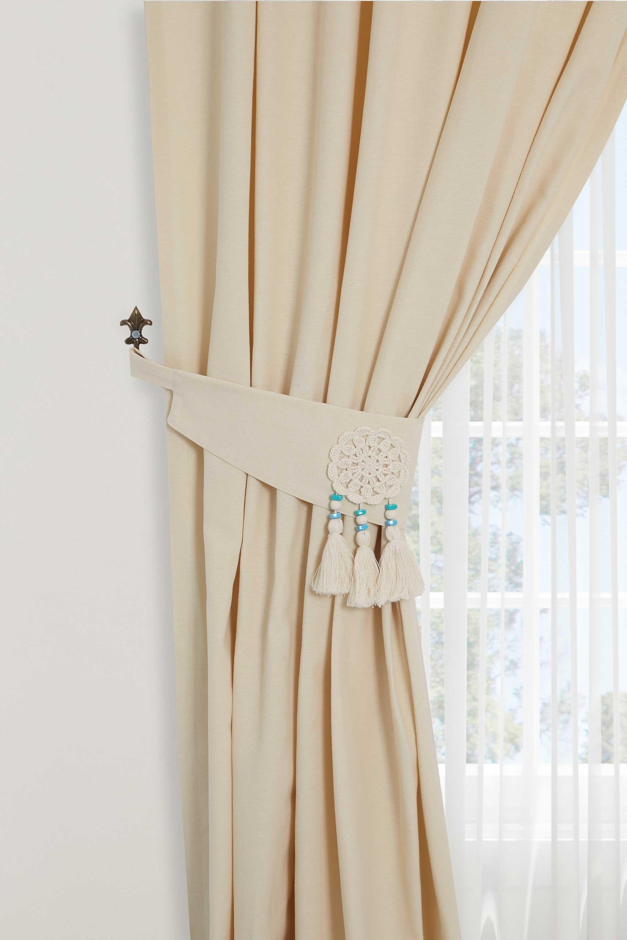 Motif Aksesuarlı Fon Perde Sol Kenar,PR-4SOL Krem