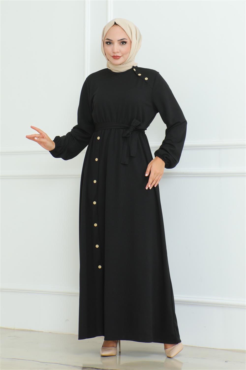 • OMUZ DETAYLI DÜĞMELİ ELBİSE