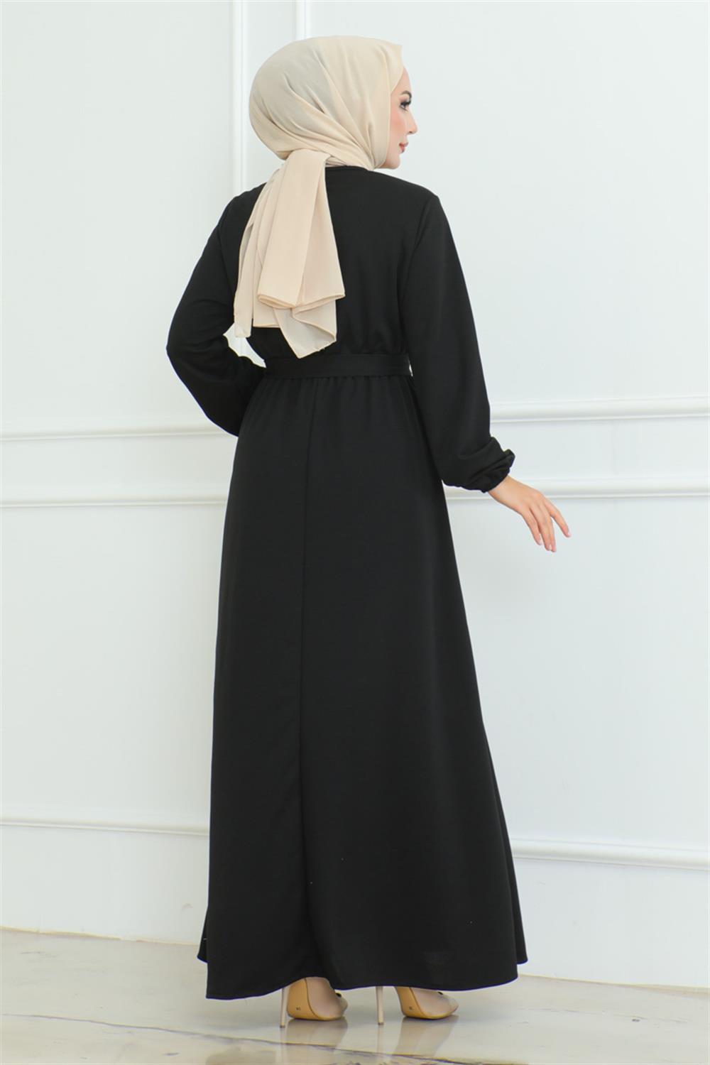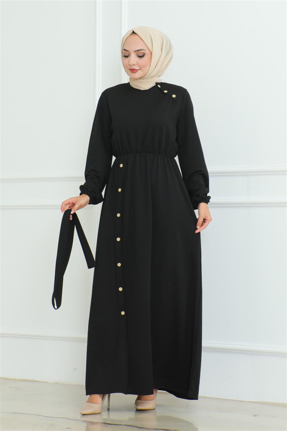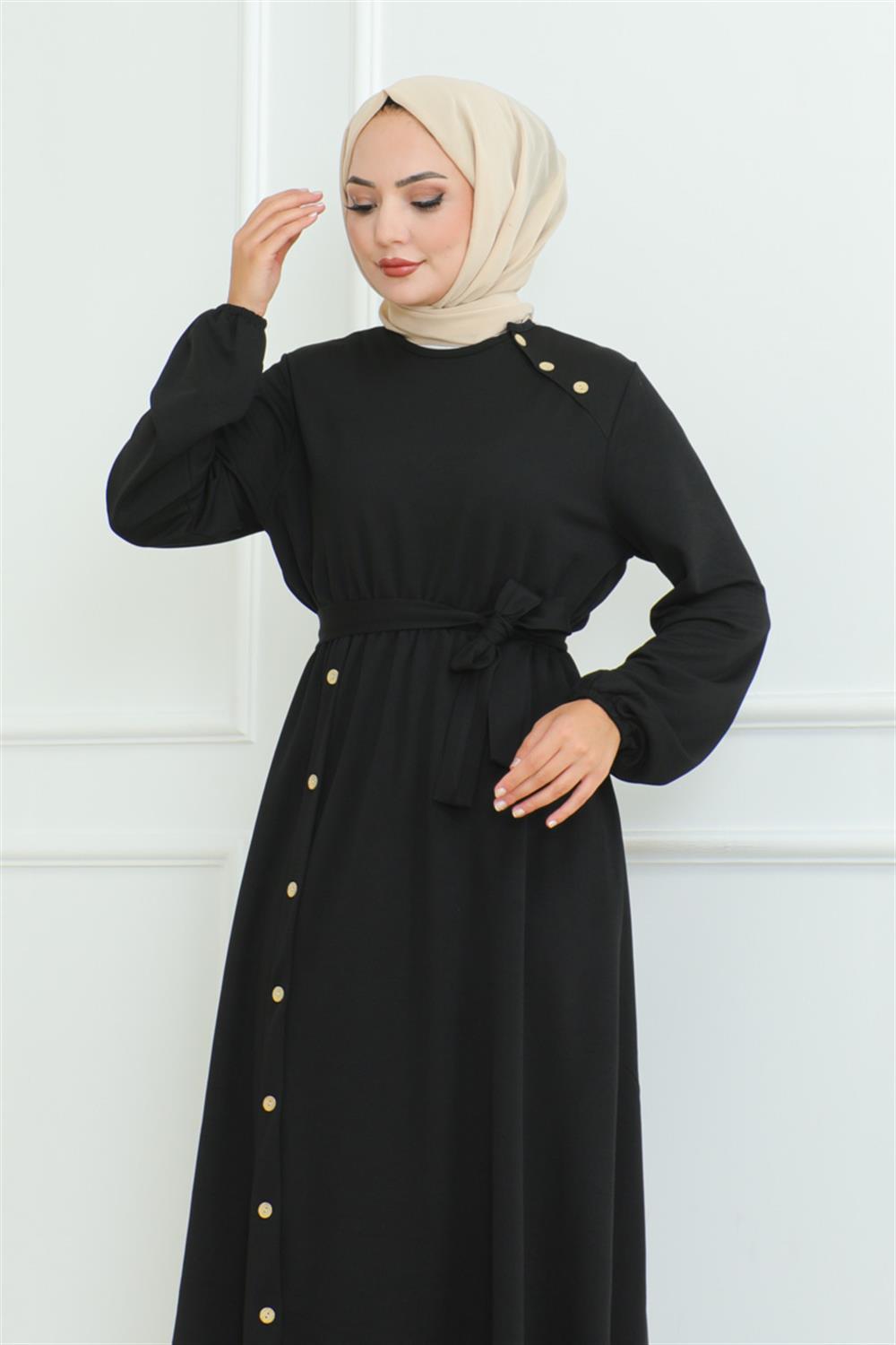 Omuz Detaylı Düğmeli Elbise SİYAH