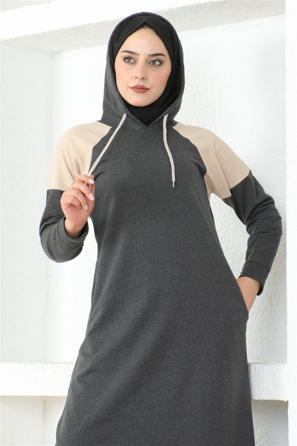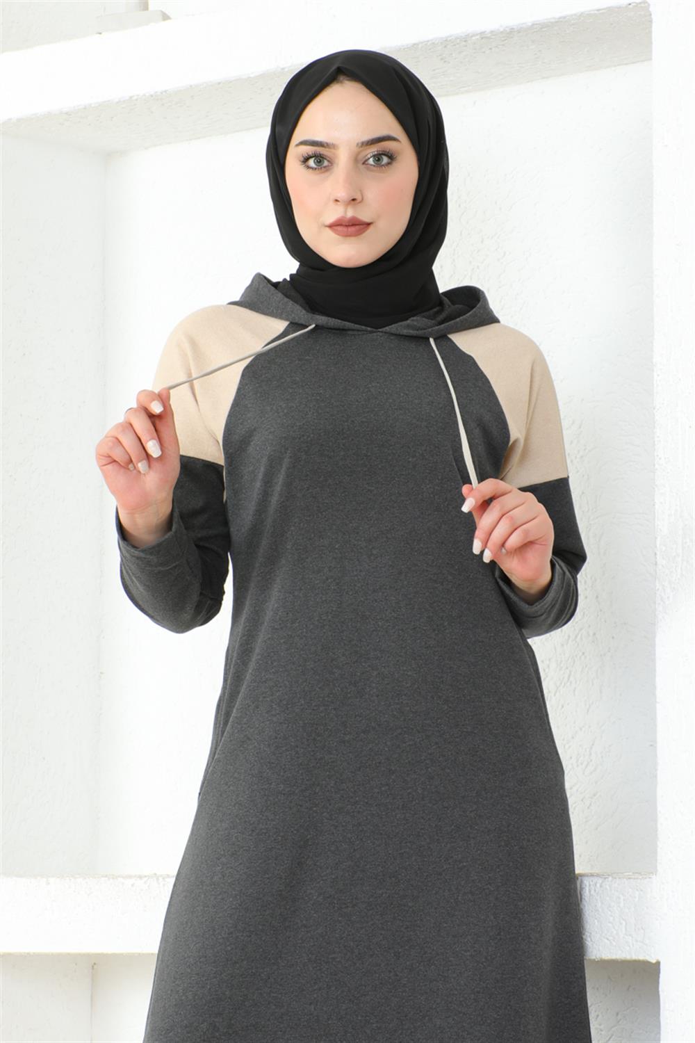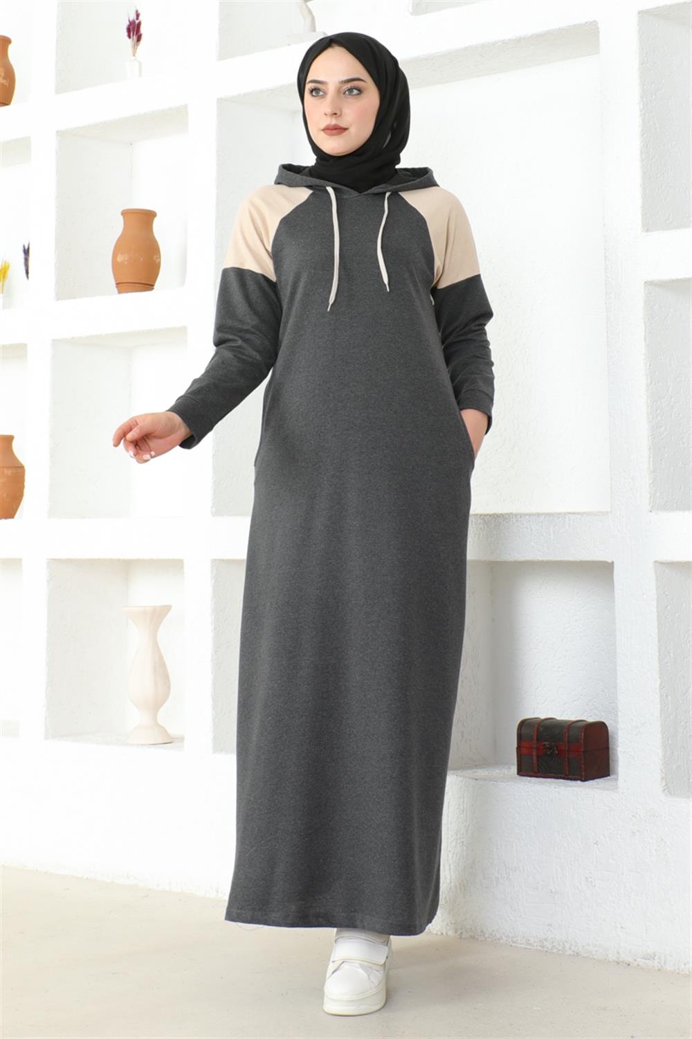 Omuz Detaylı Tesettür Elbise ANTRASİT