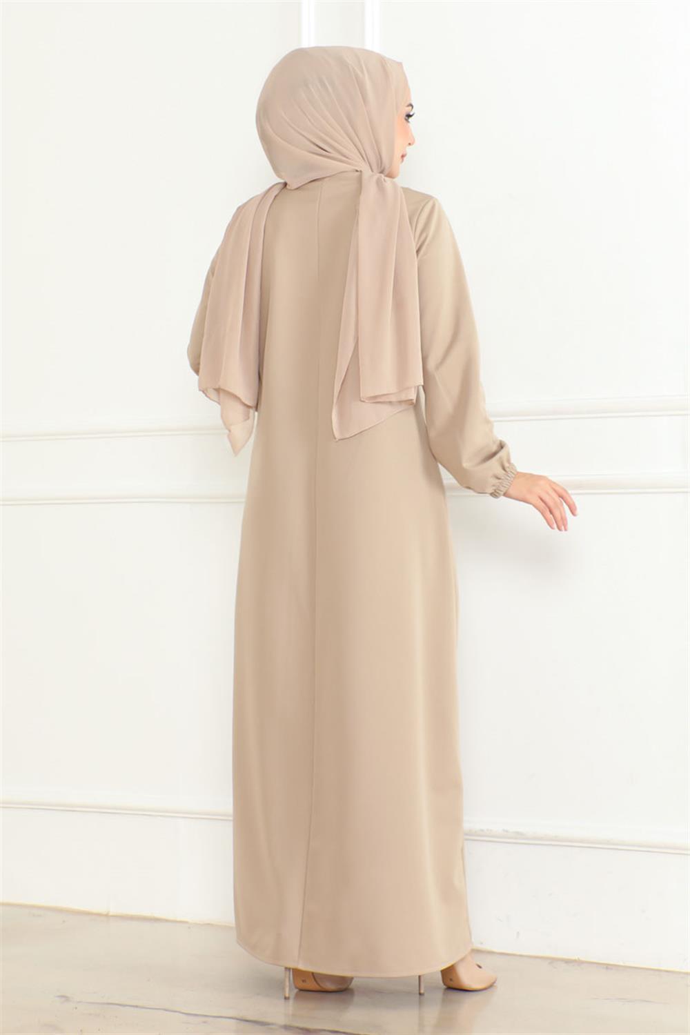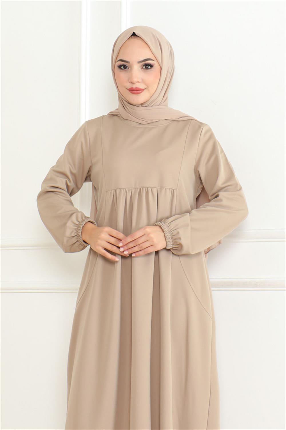 Önden Büzgülü Rahat Elbise BEJ