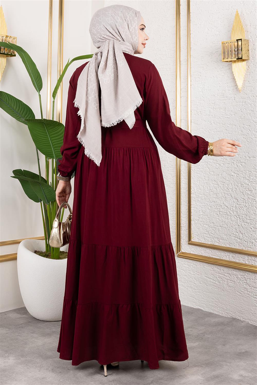 Önden Düğmeli Viskon Elbise