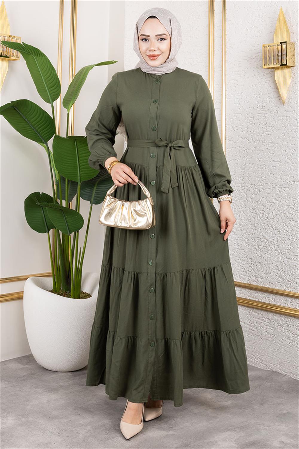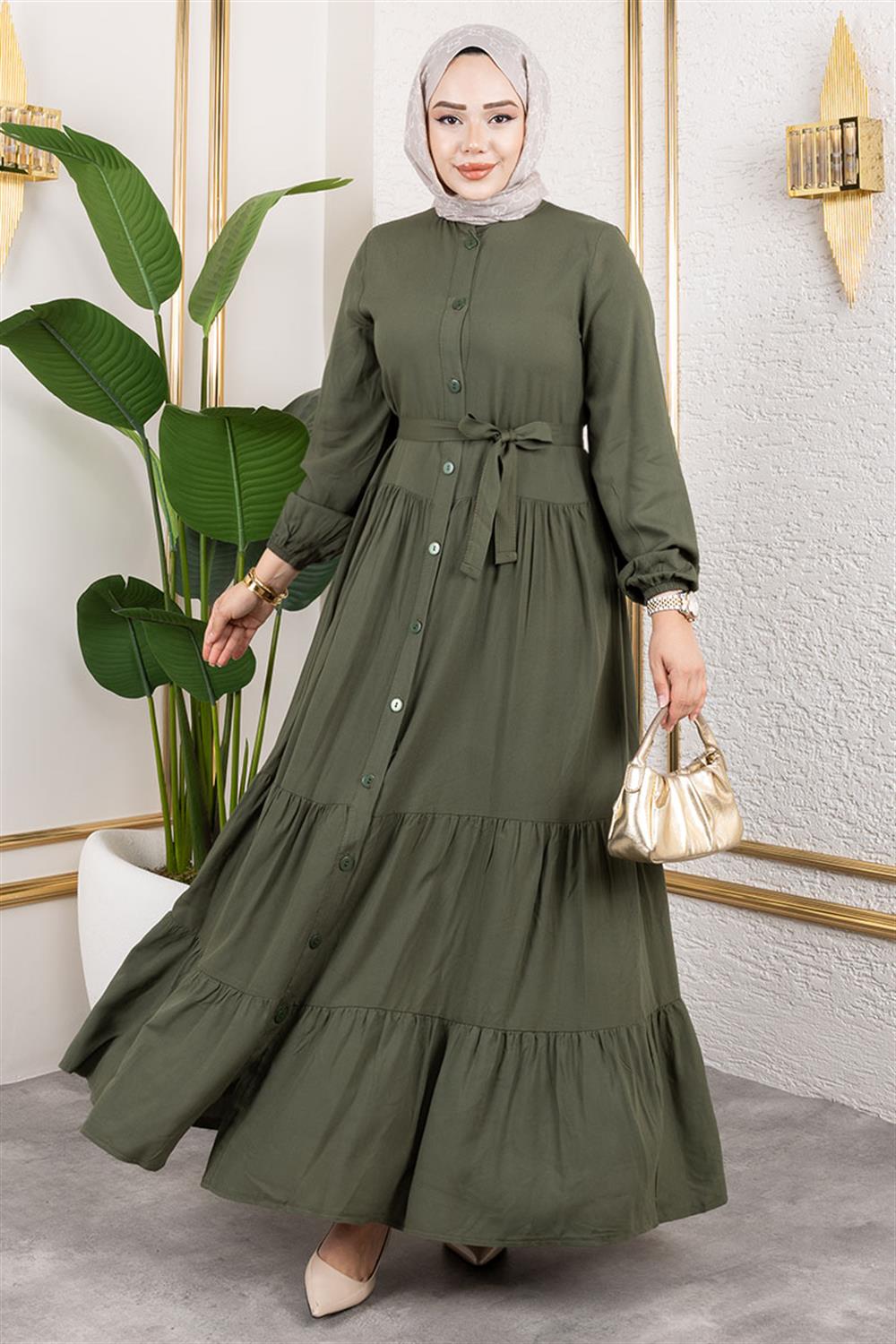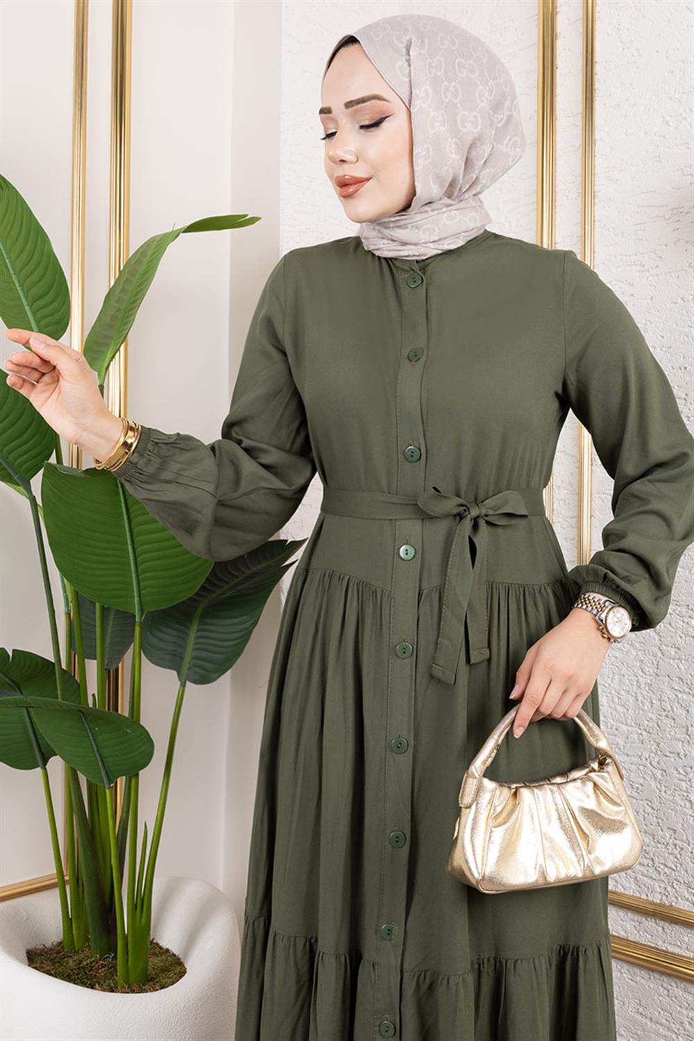 Önden Düğmeli Viskon Elbise