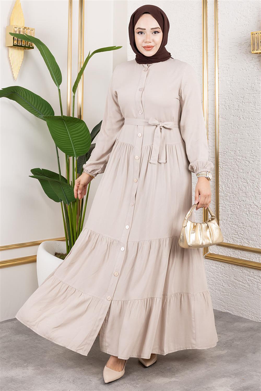Önden Düğmeli Viskon Elbise