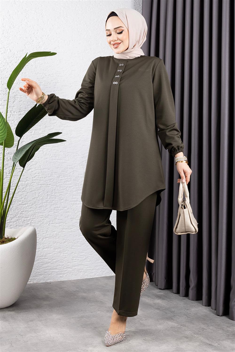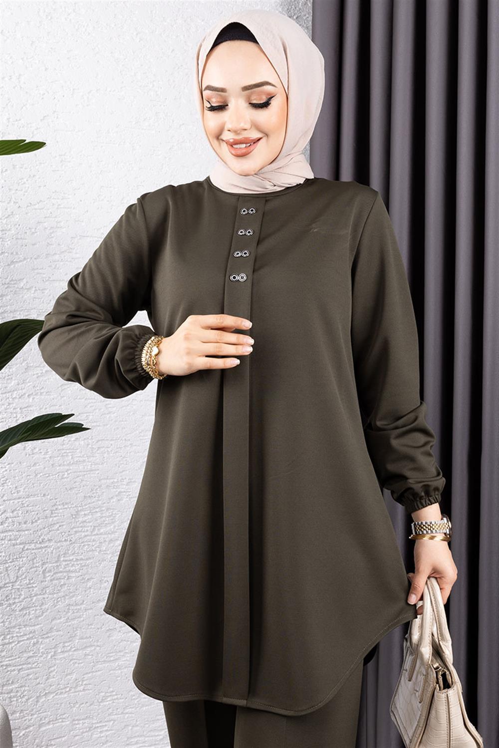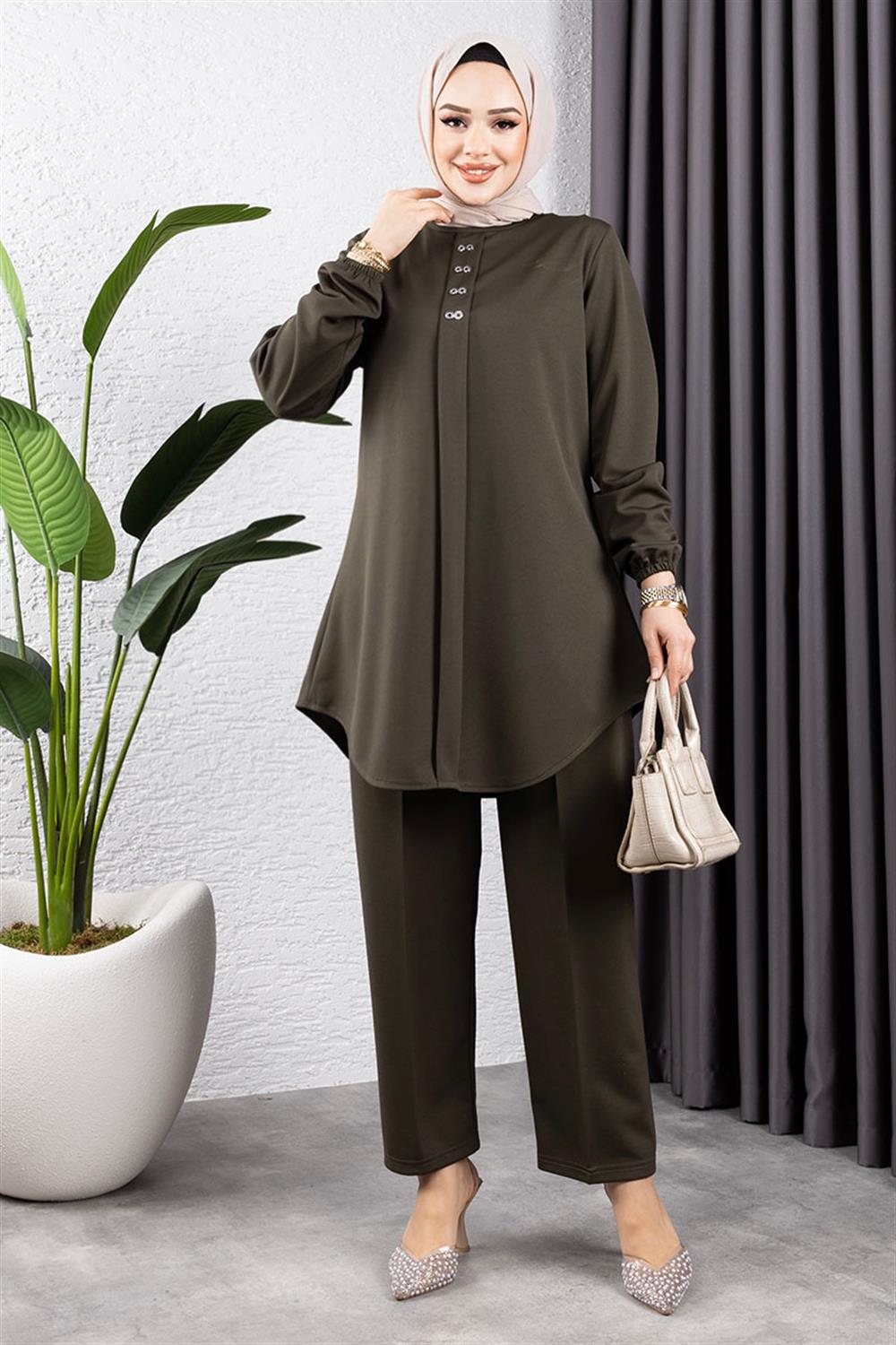 Ürünümüz Örme double kumaştan üretilmiştir. Terletme yapmaz, 42 - 52 beden aralığı mevcuttur, bedenler geniş tutulmuştur.Ürünümüz duruşu ve yumuşak kumaşı ile çok tercih edilen modeller arasında yer almaktadır. Ürünümüz tahta düğme detayı ile hoş görünüm kazanmıştır. Yeni sezon tesettür moda ürünüdür.