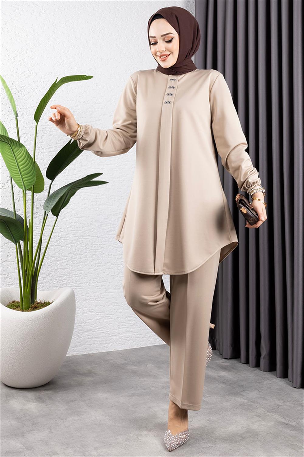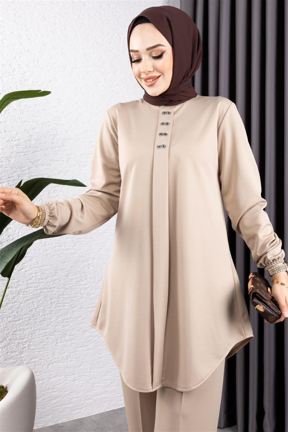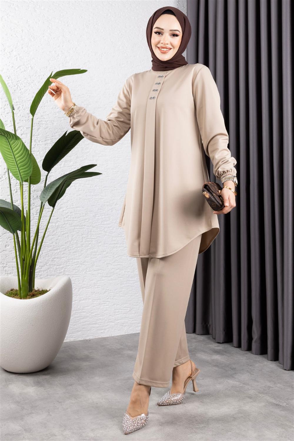 Ürünümüz Örme double kumaştan üretilmiştir. Terletme yapmaz, 42 - 52 beden aralığı mevcuttur, bedenler geniş tutulmuştur.Ürünümüz duruşu ve yumuşak kumaşı ile çok tercih edilen modeller arasında yer almaktadır. Ürünümüz tahta düğme detayı ile hoş görünüm kazanmıştır. Yeni sezon tesettür moda ürünüdür.