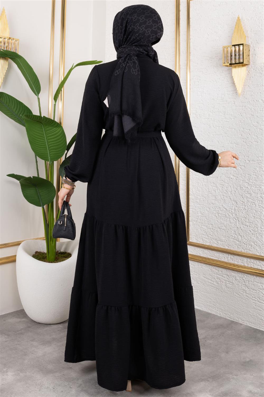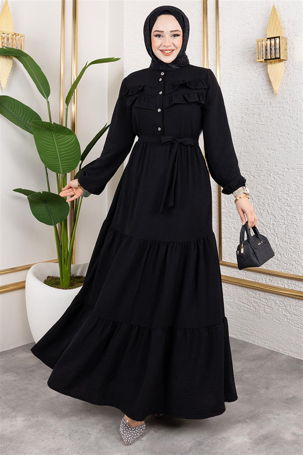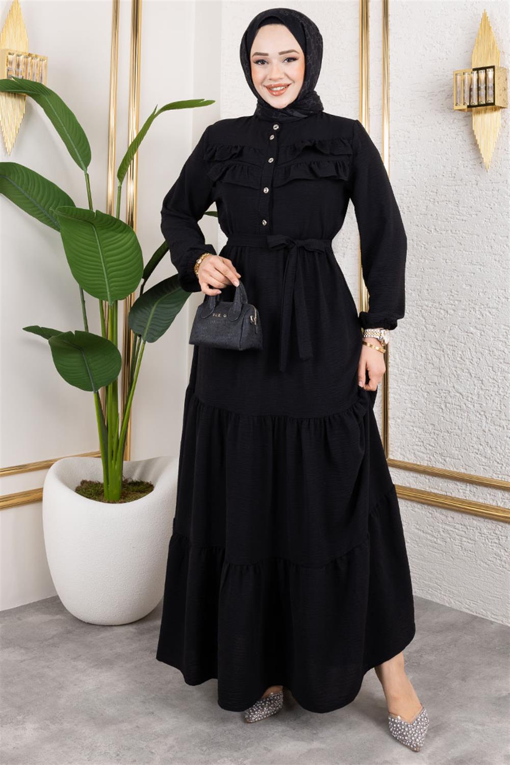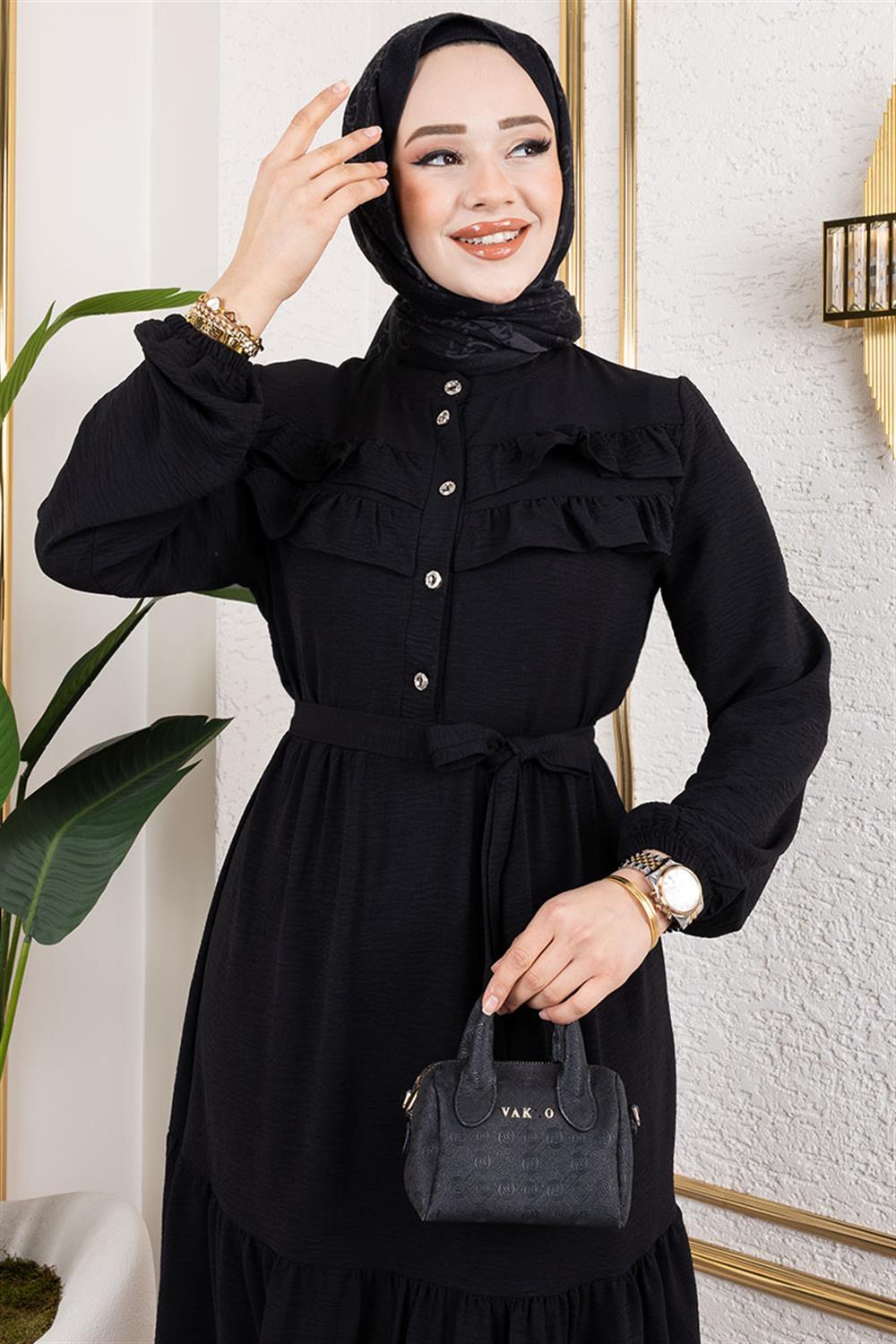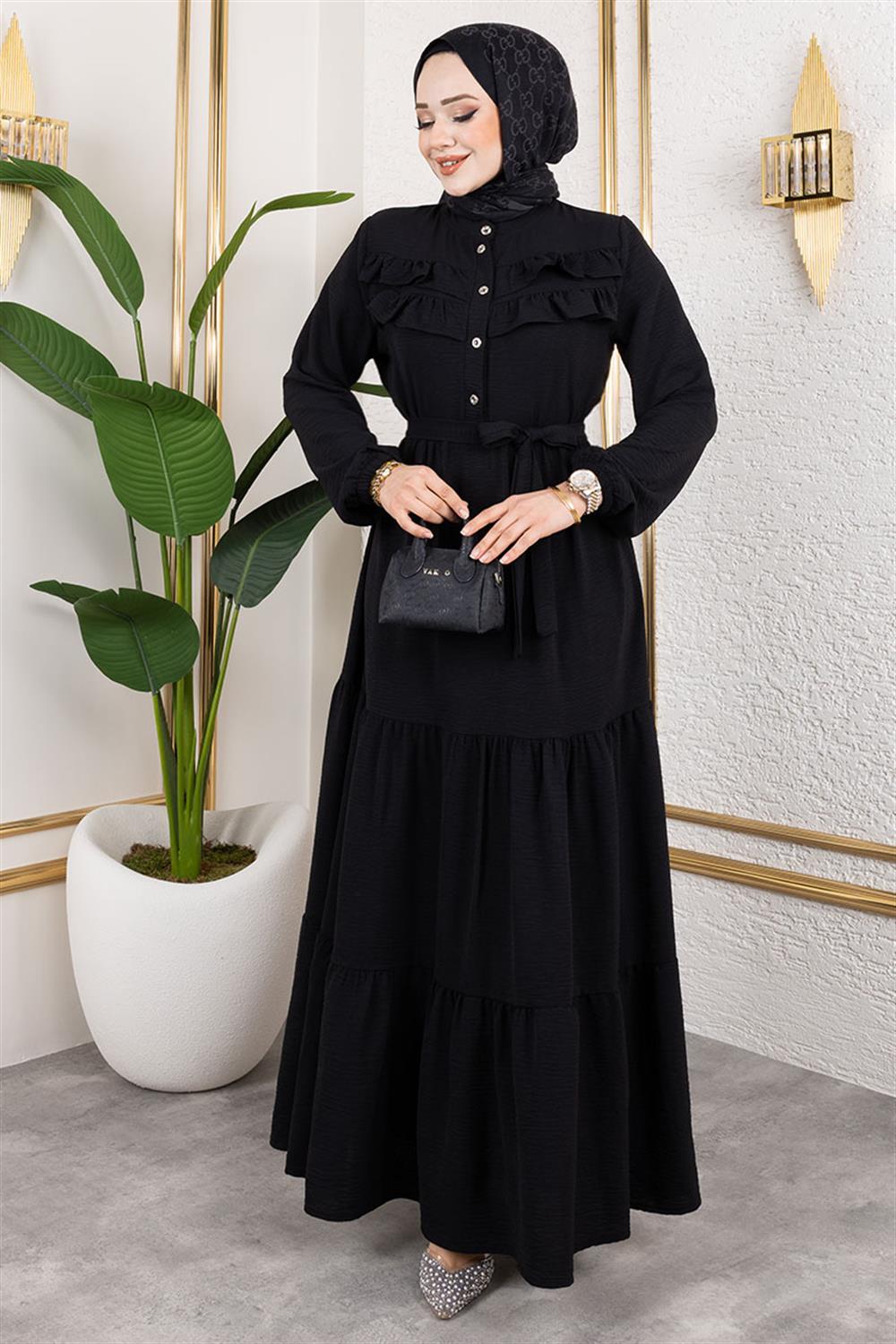 Önü Fırfır Detaylı Aerobin Elbise SİYAH