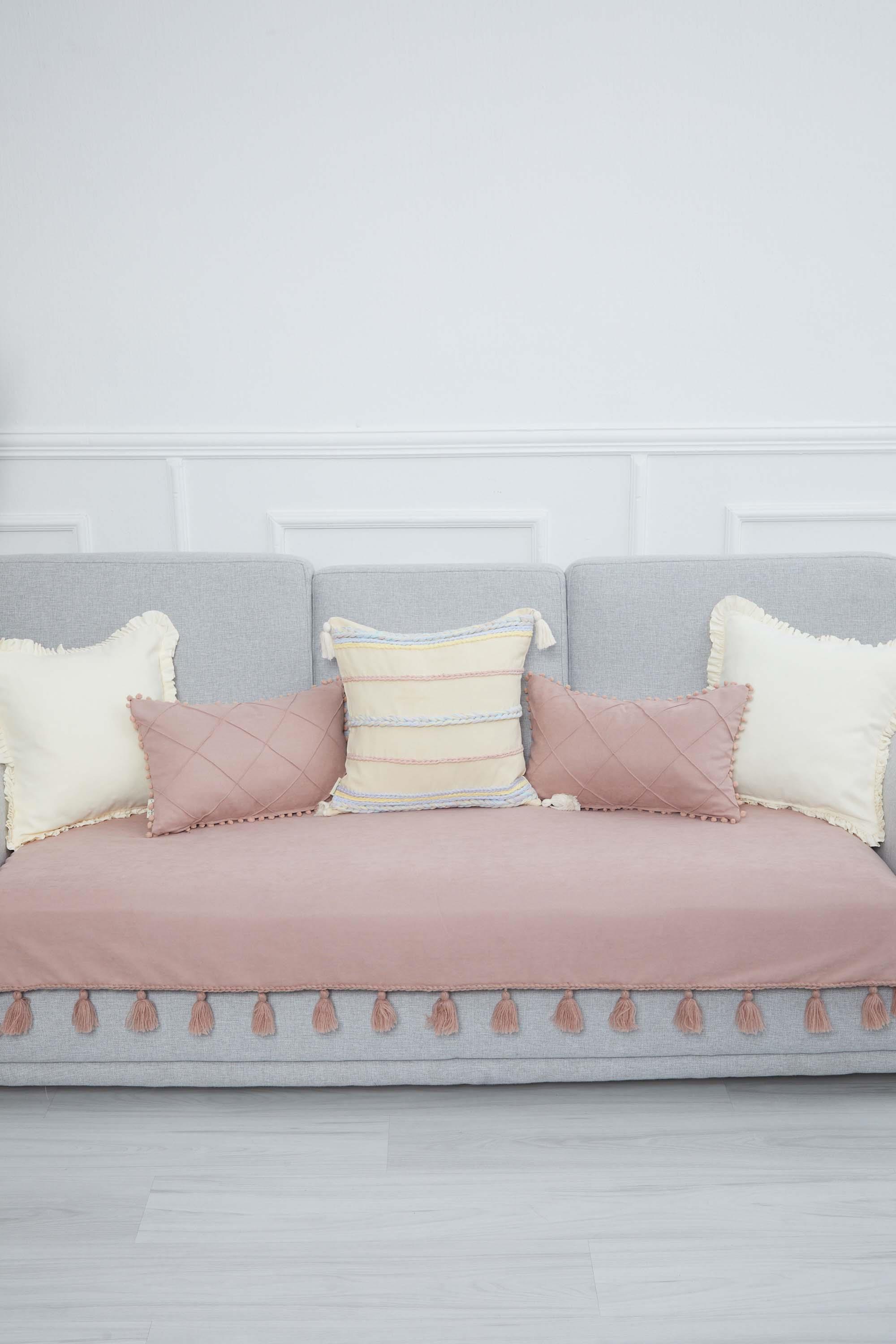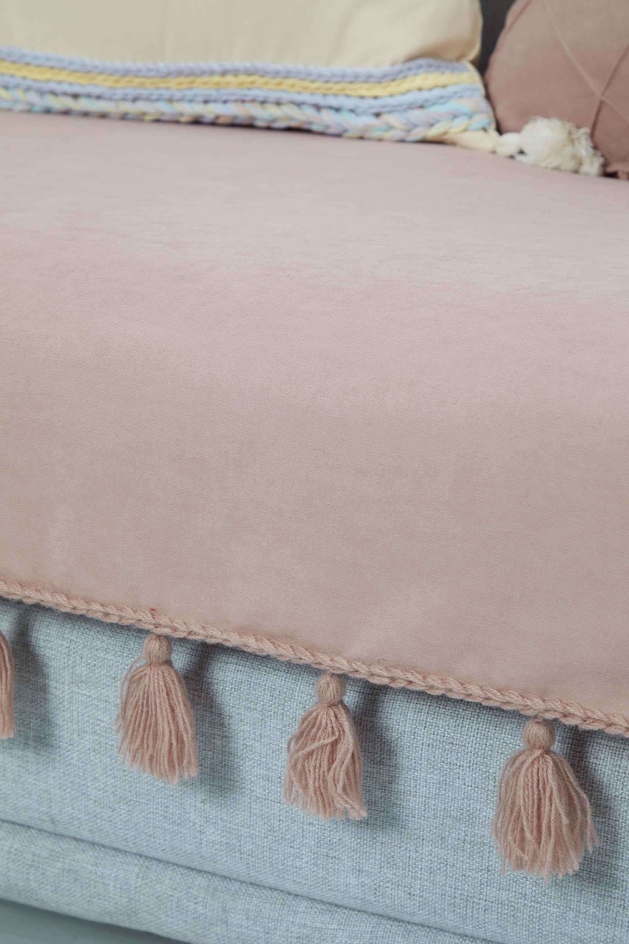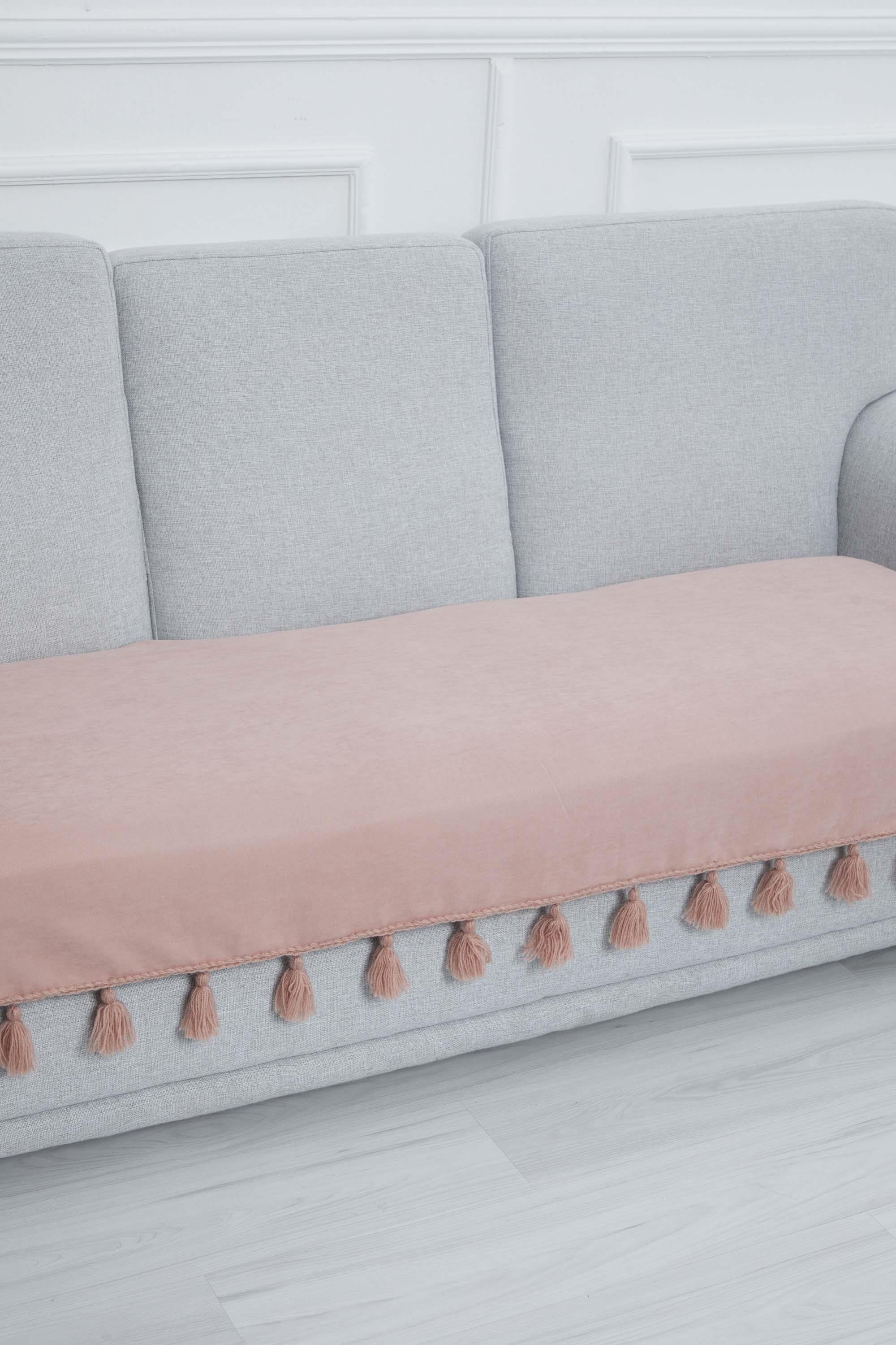 Örgü Kenar Detaylı Püsküllü Koltuk Örtüsü,KO-26 Pudra
