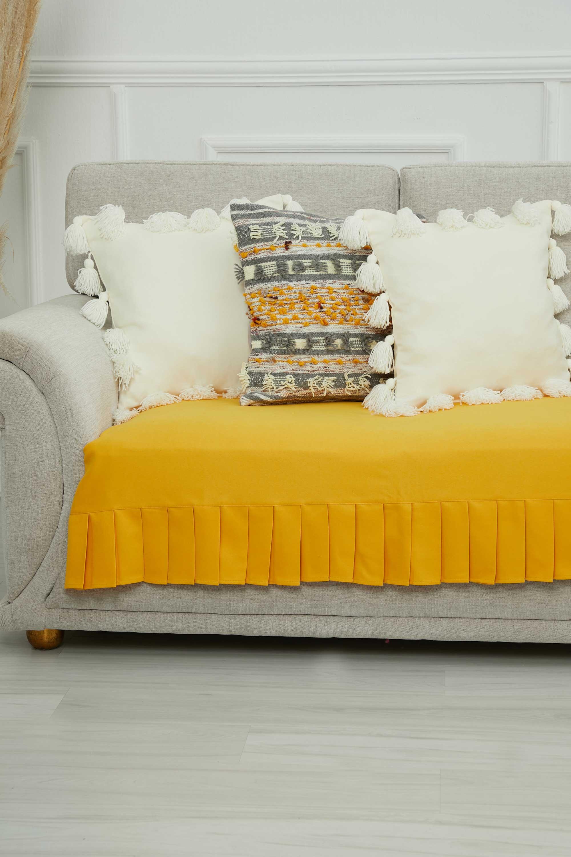 Pileli 2'li Koltuk Örtüsü,KO-28 Sarı