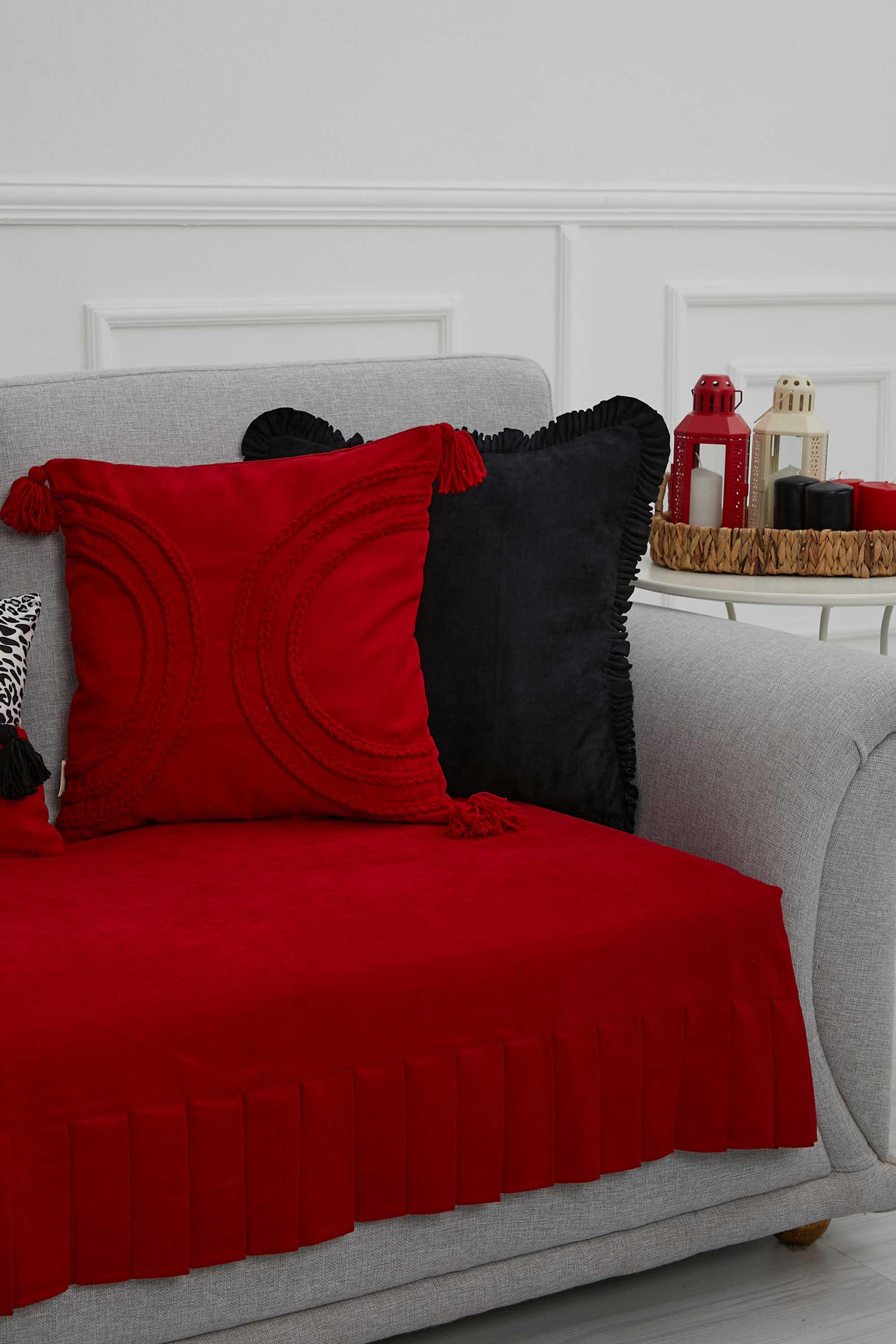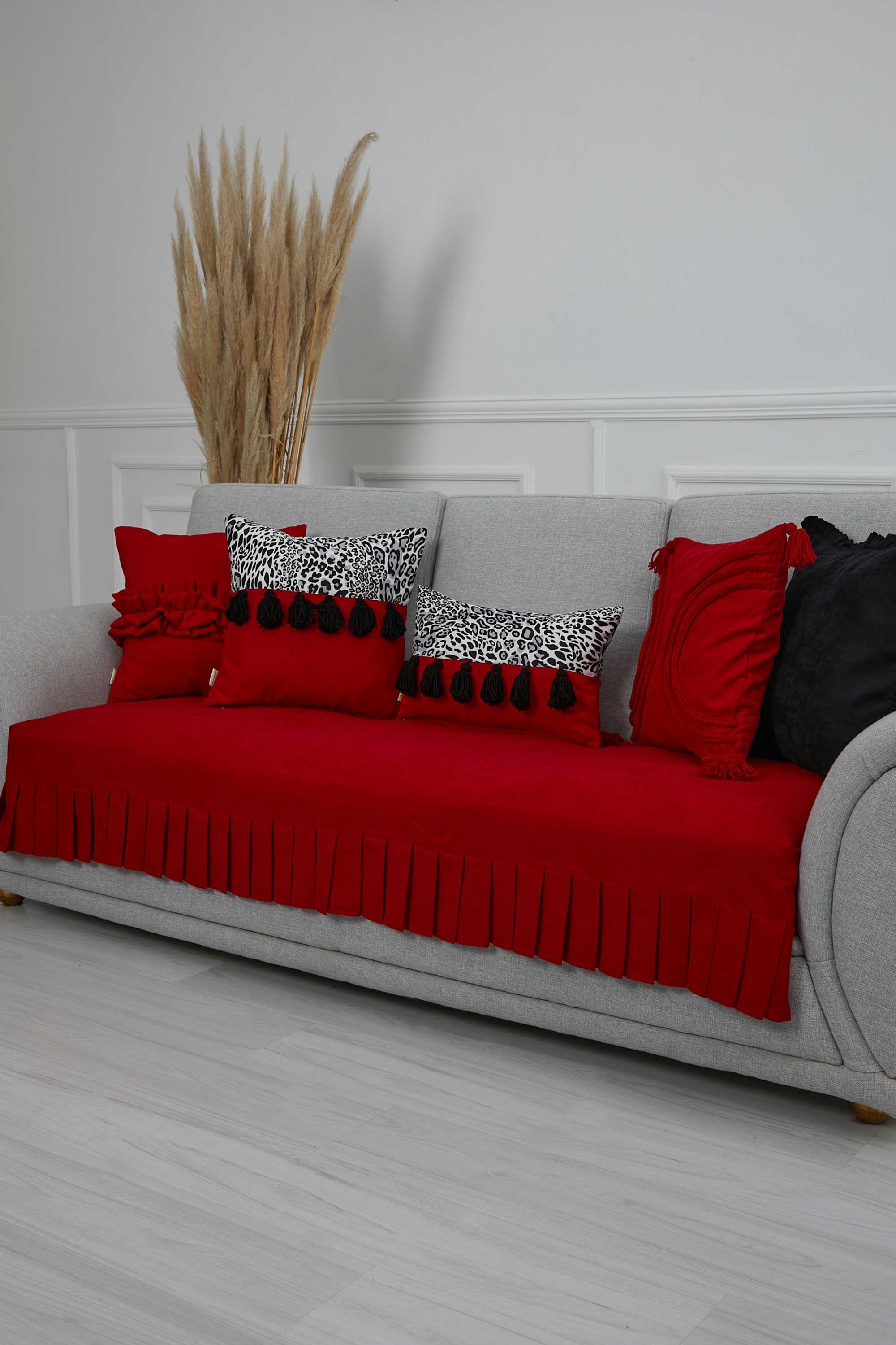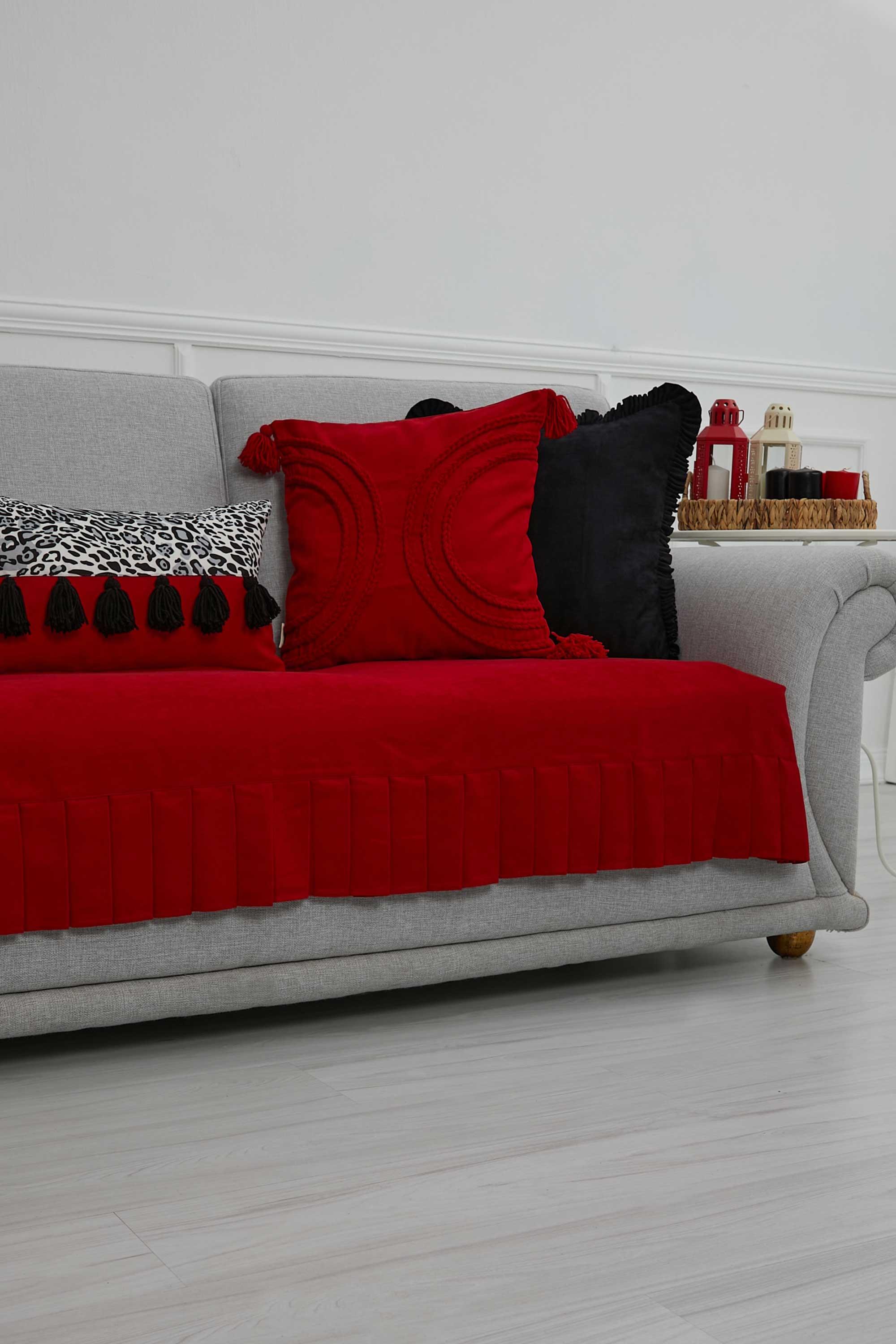 Pileli 3'lü Koltuk Örtüsü,KO-29 Kırmızı