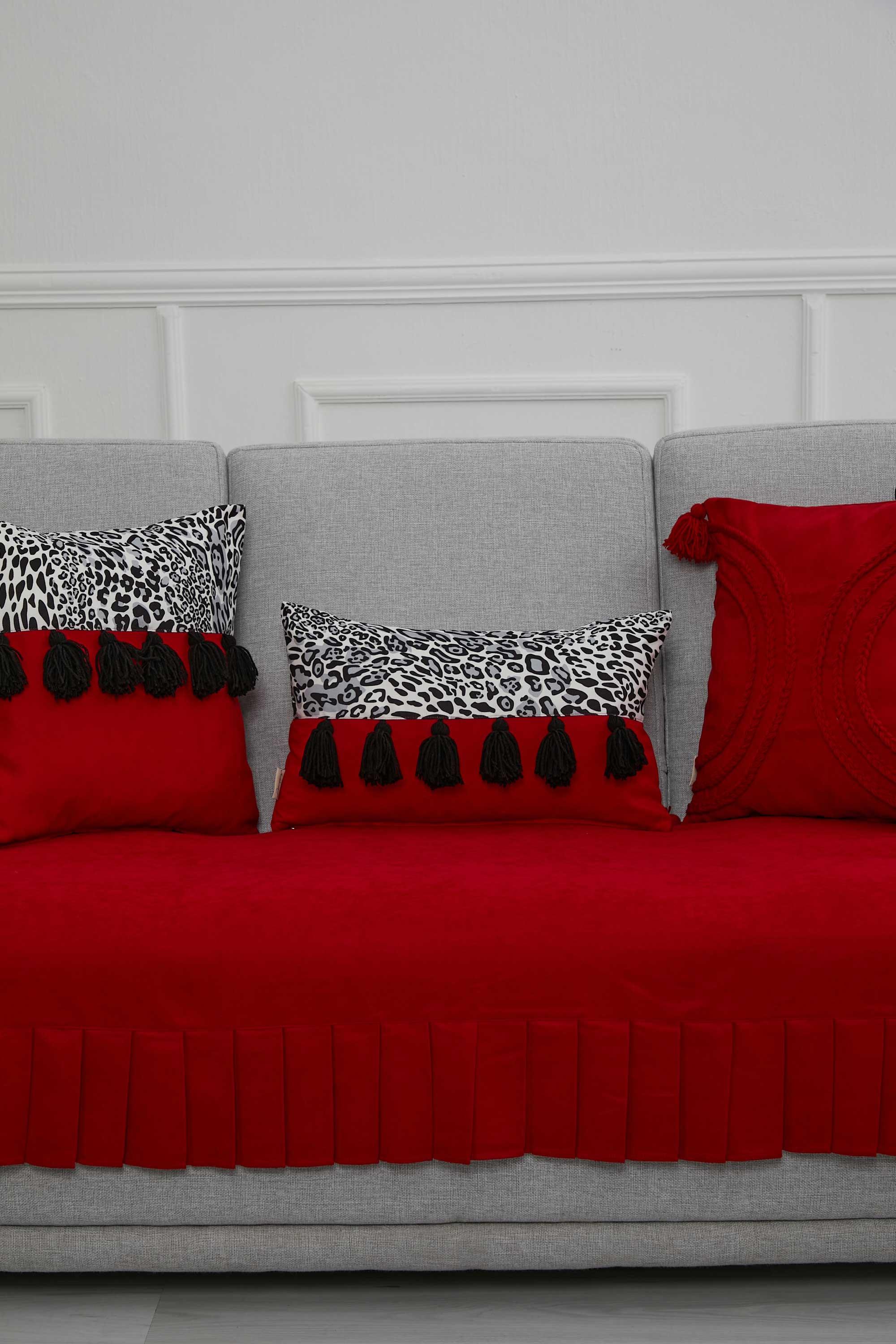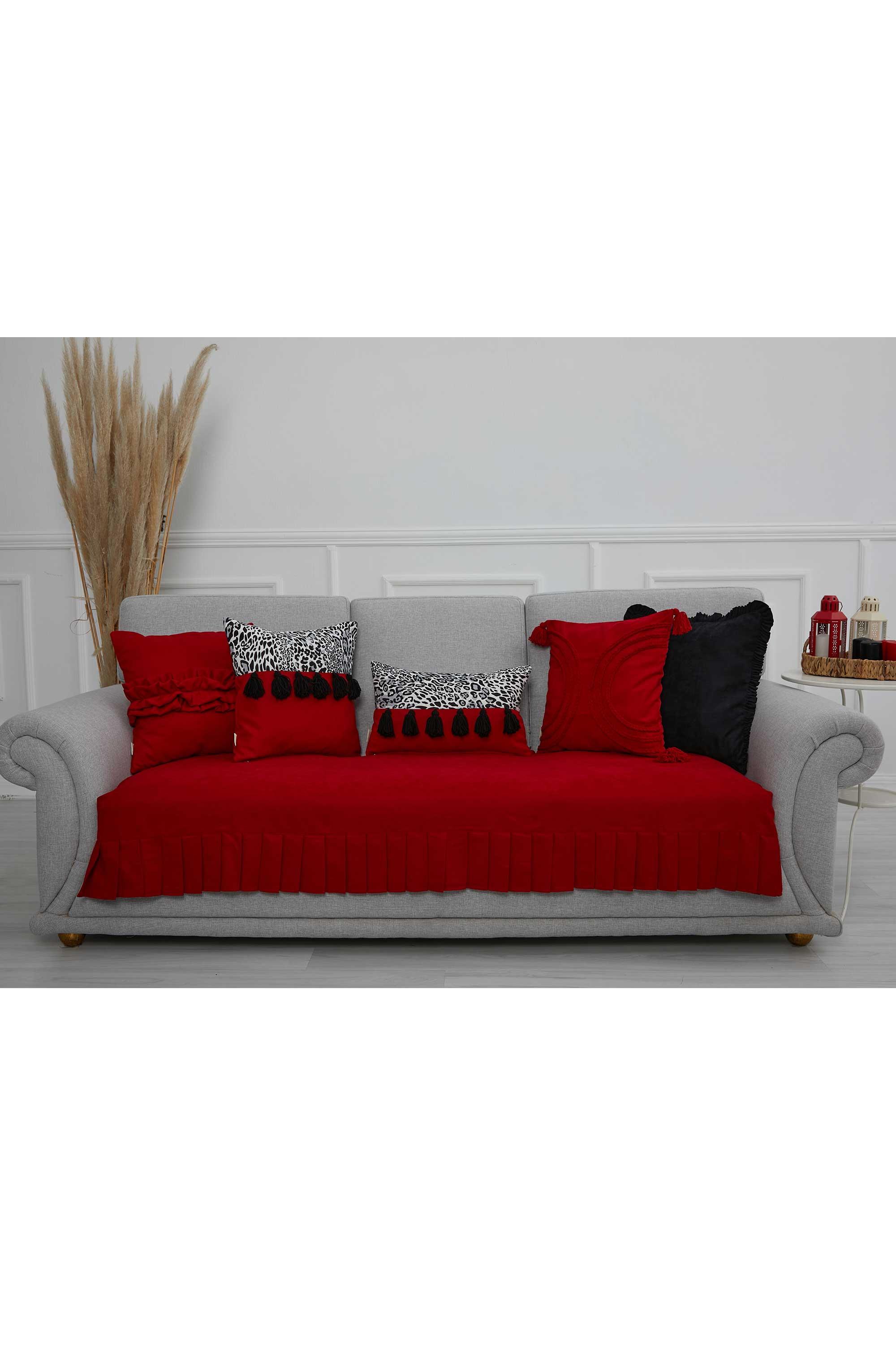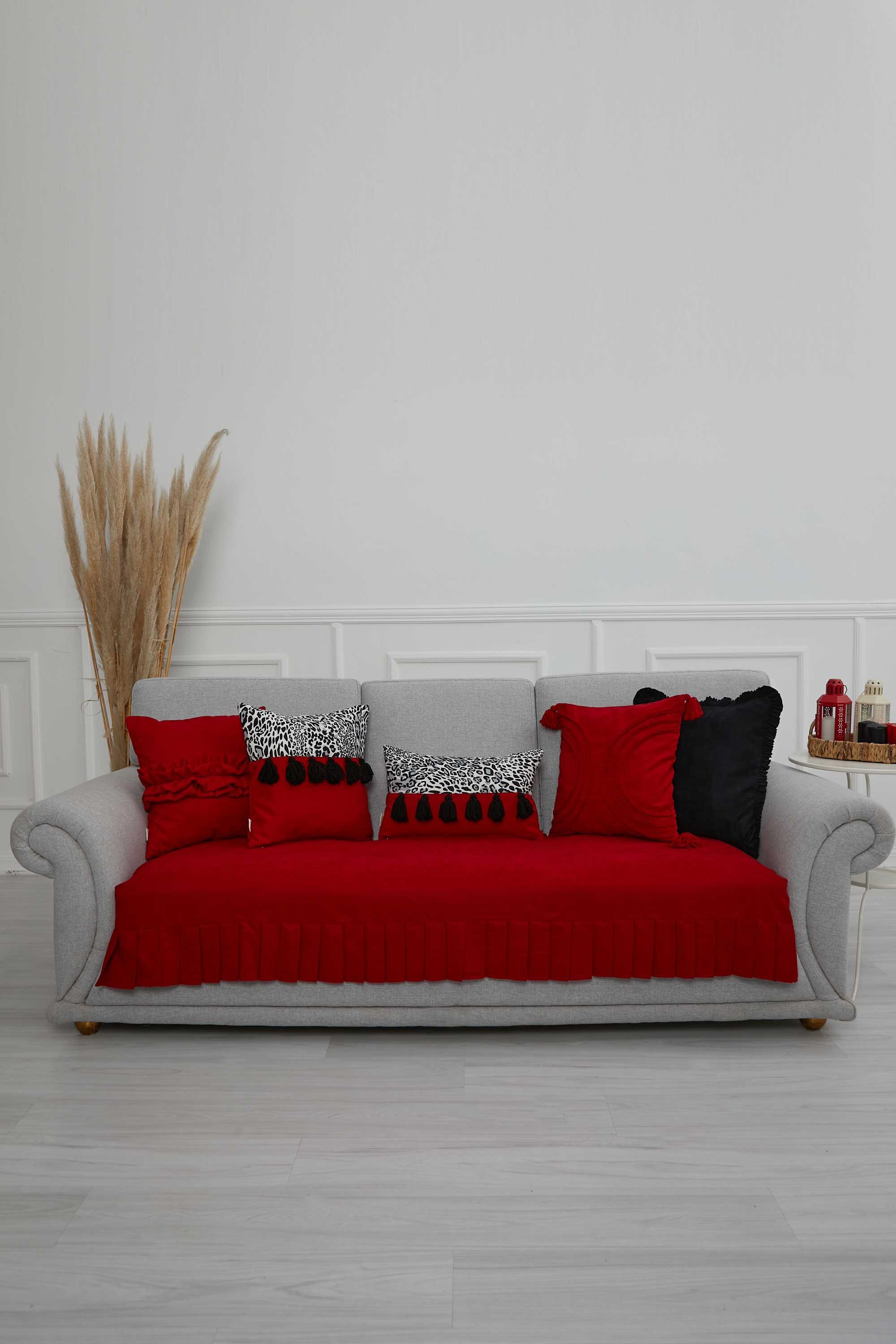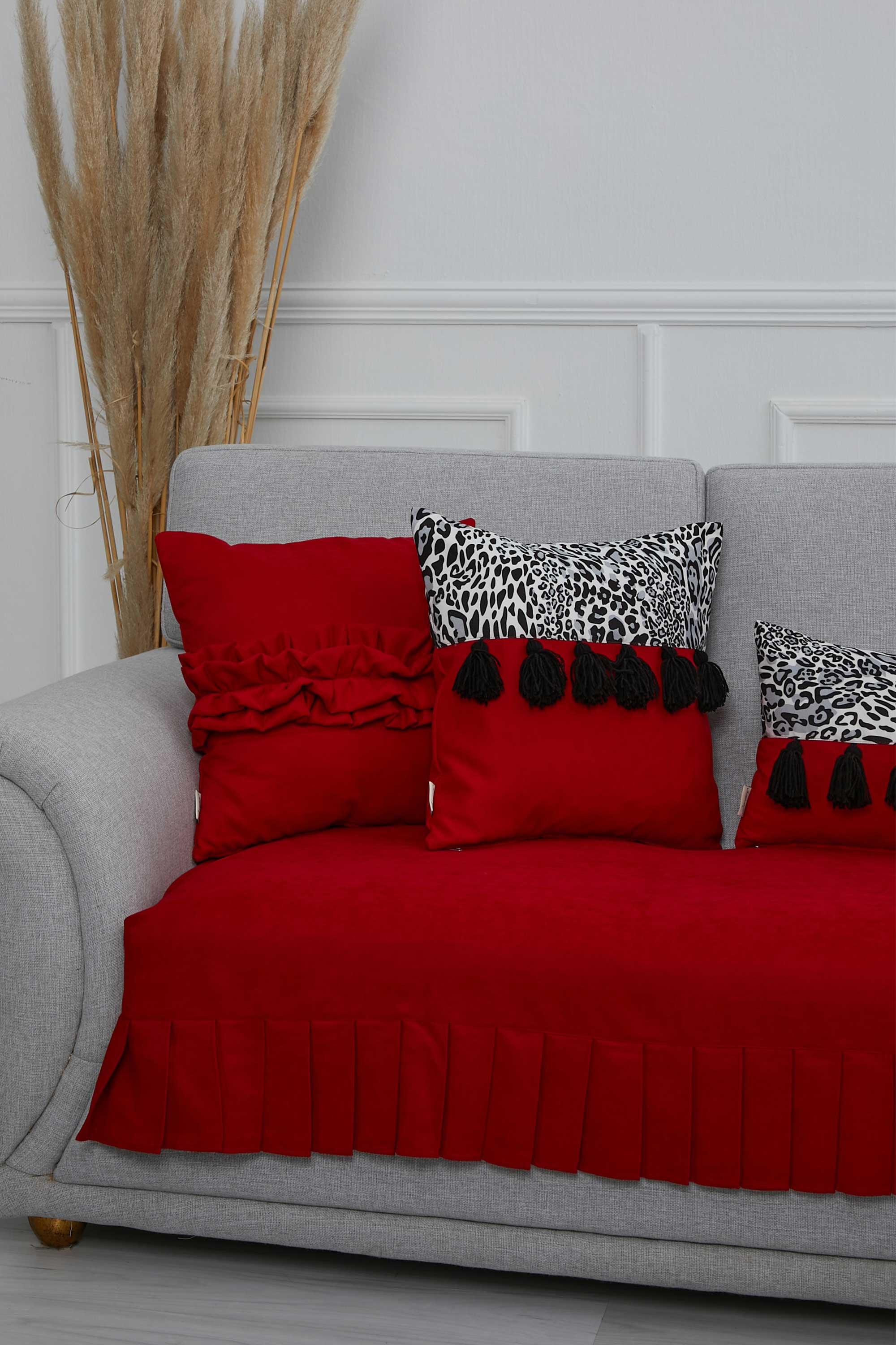 Pileli 3'lü Koltuk Örtüsü,KO-29 Kırmızı