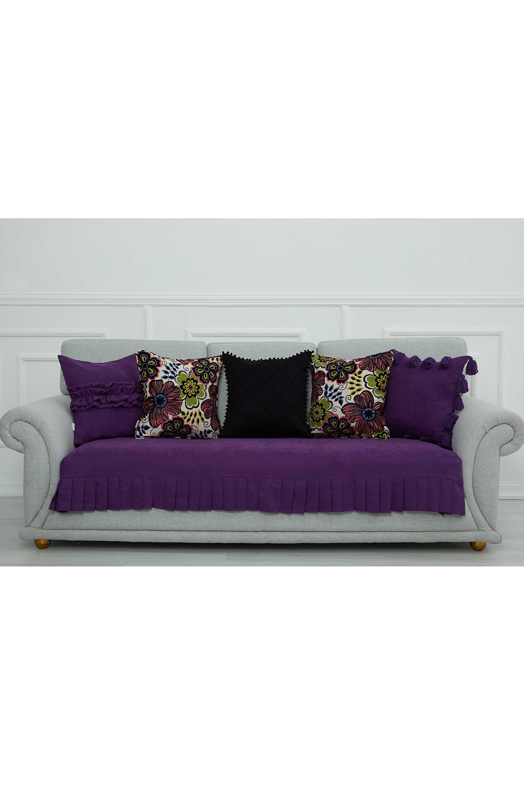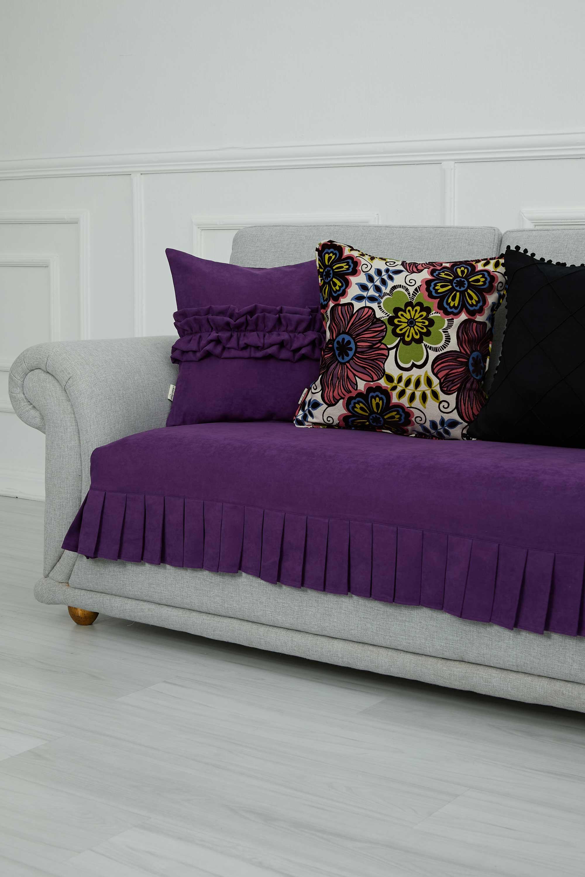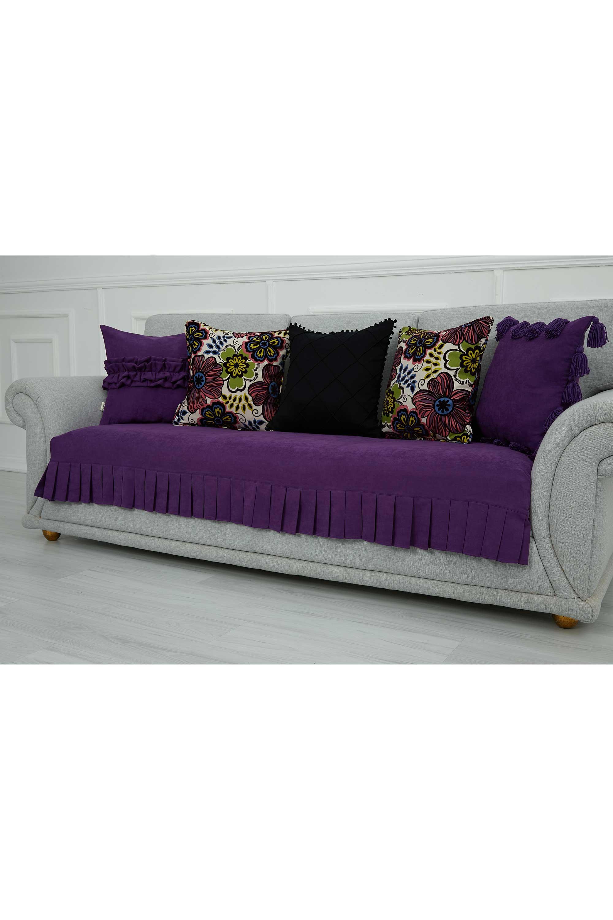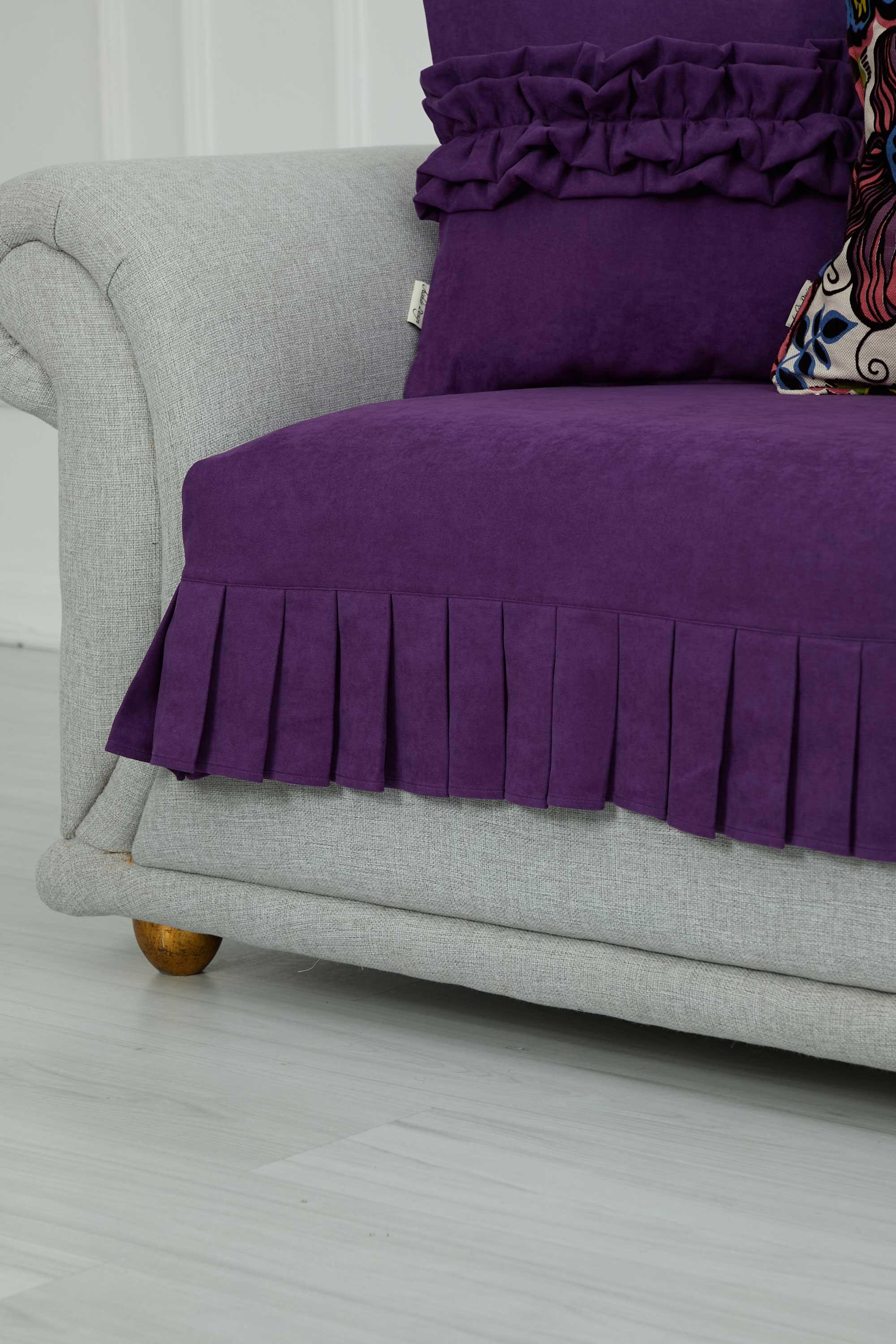 Pileli 3'lü Koltuk Örtüsü,KO-29 Mor