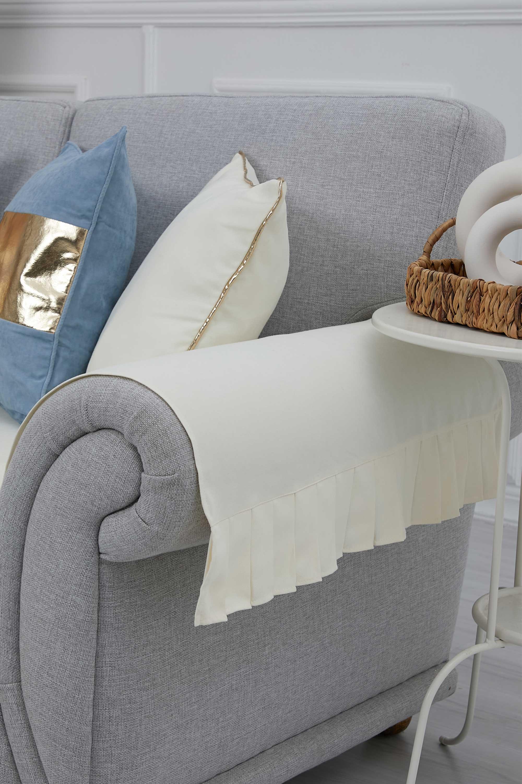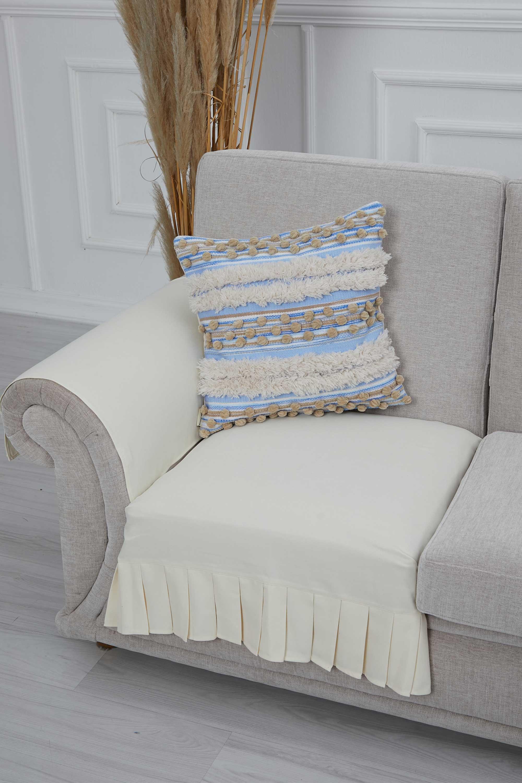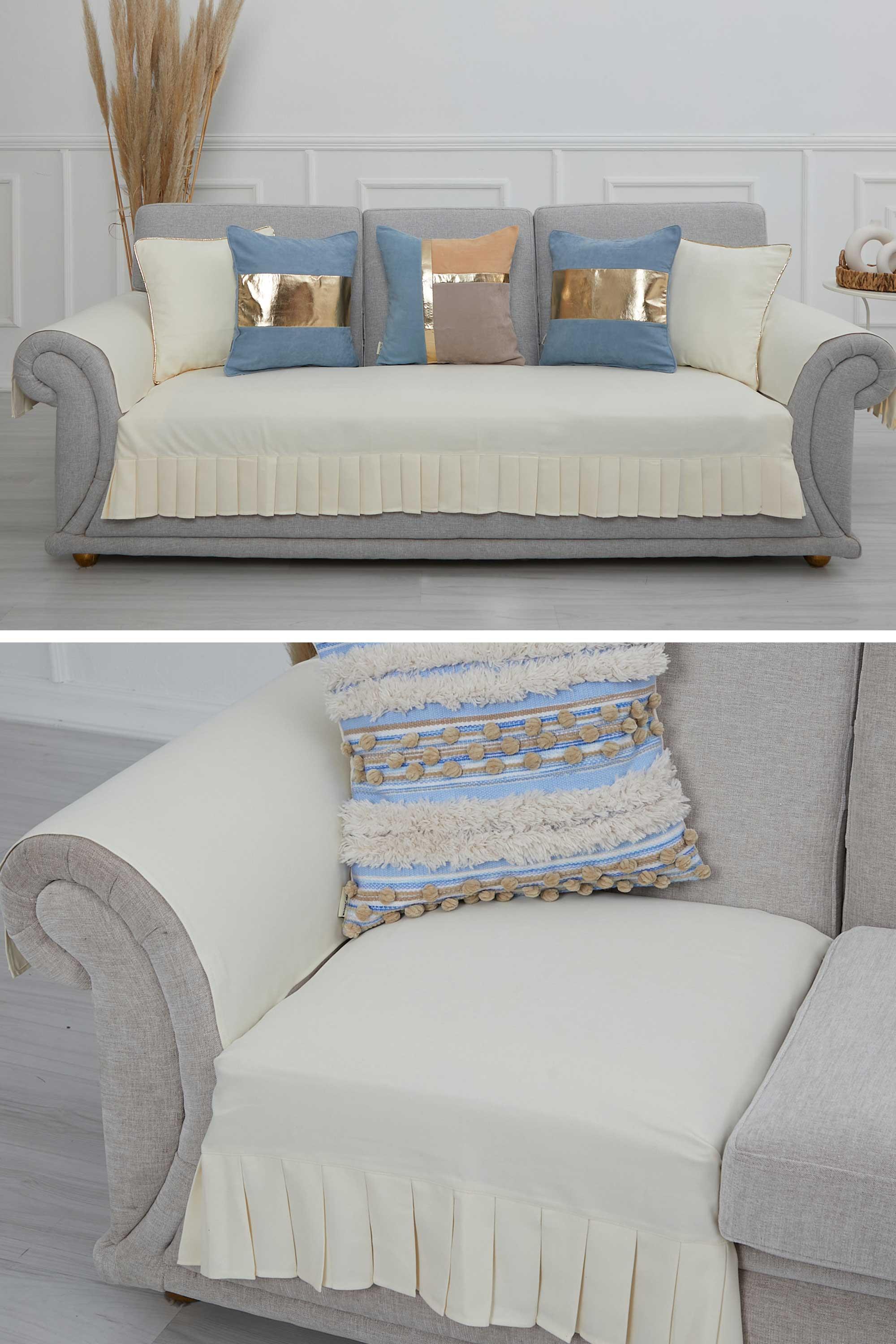 Pileli 3'lü ve Tekli Koltuk Örtüsü ve Kolçak Takımı,KTK-6 Ekru