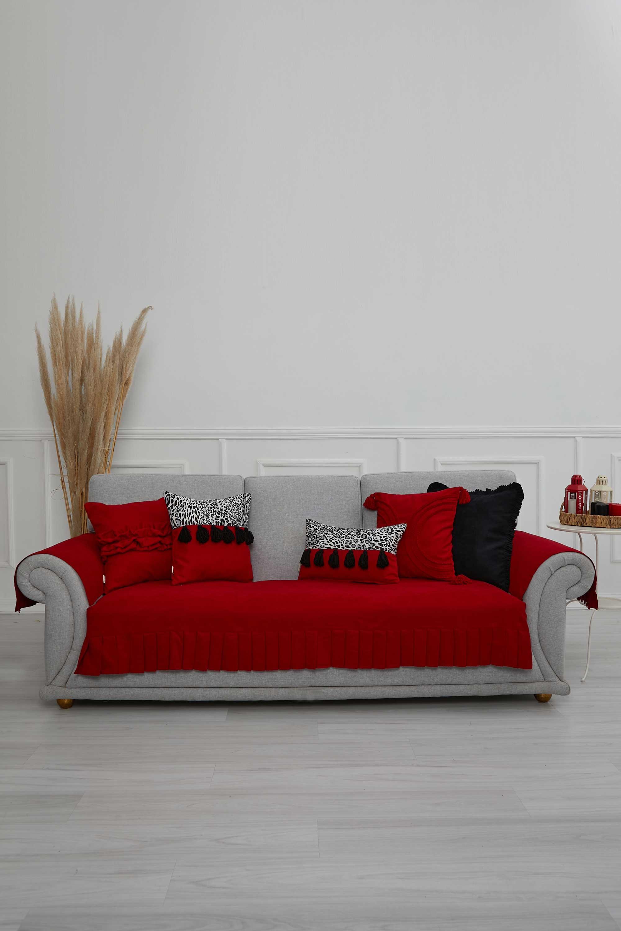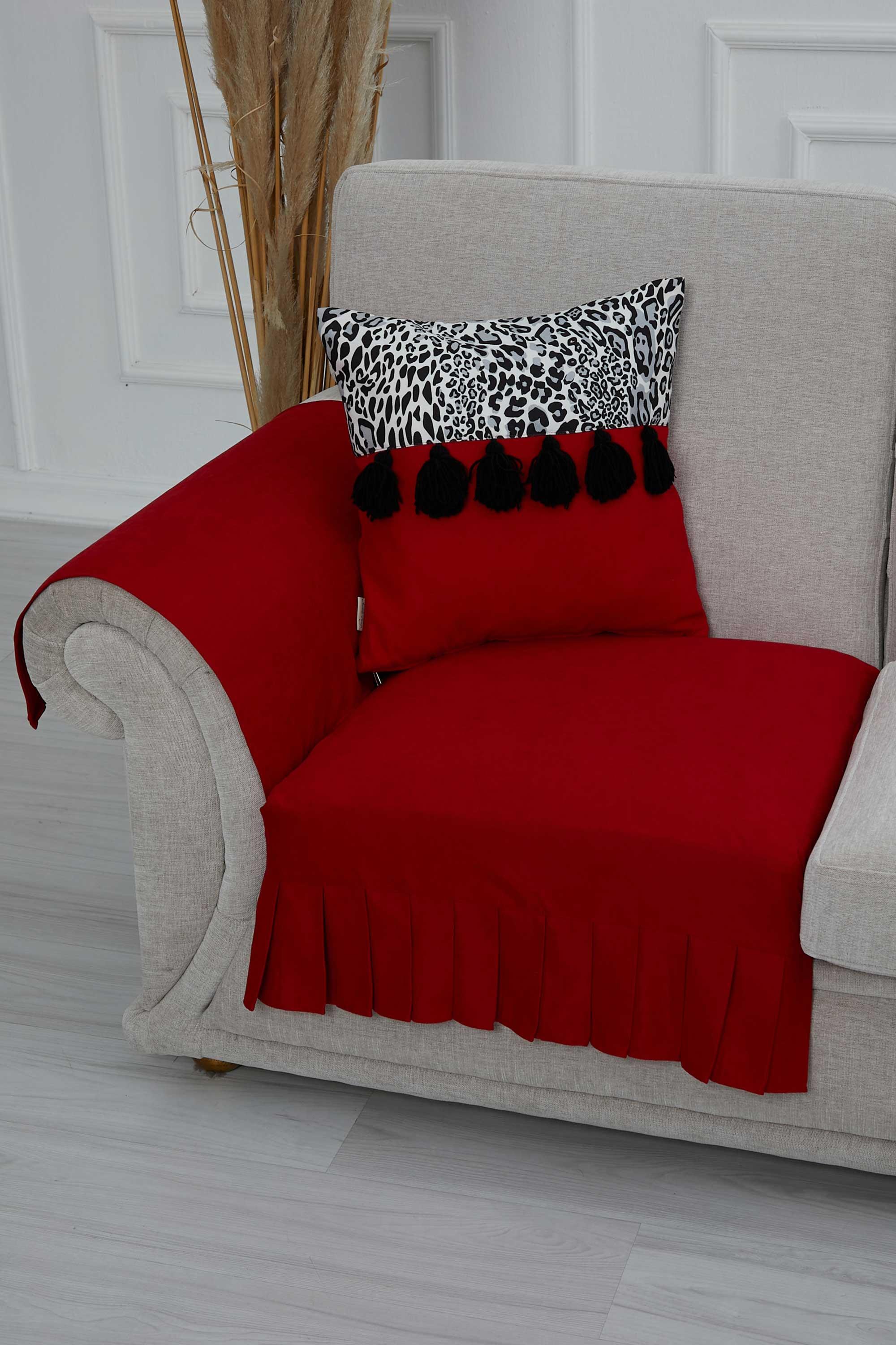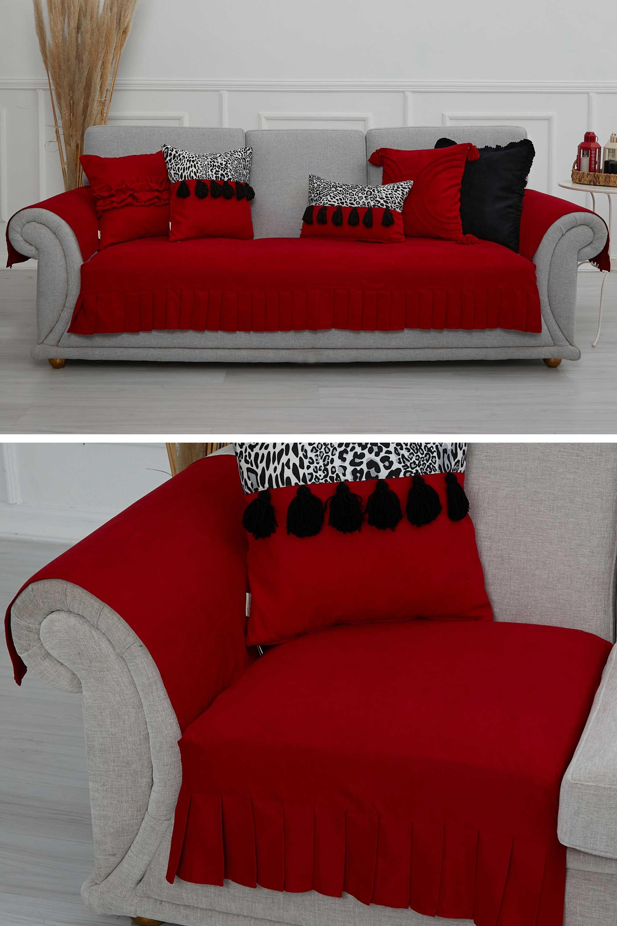 Pileli 3'lü ve Tekli Koltuk Örtüsü ve Kolçak Takımı,KTK-6 Kırmızı