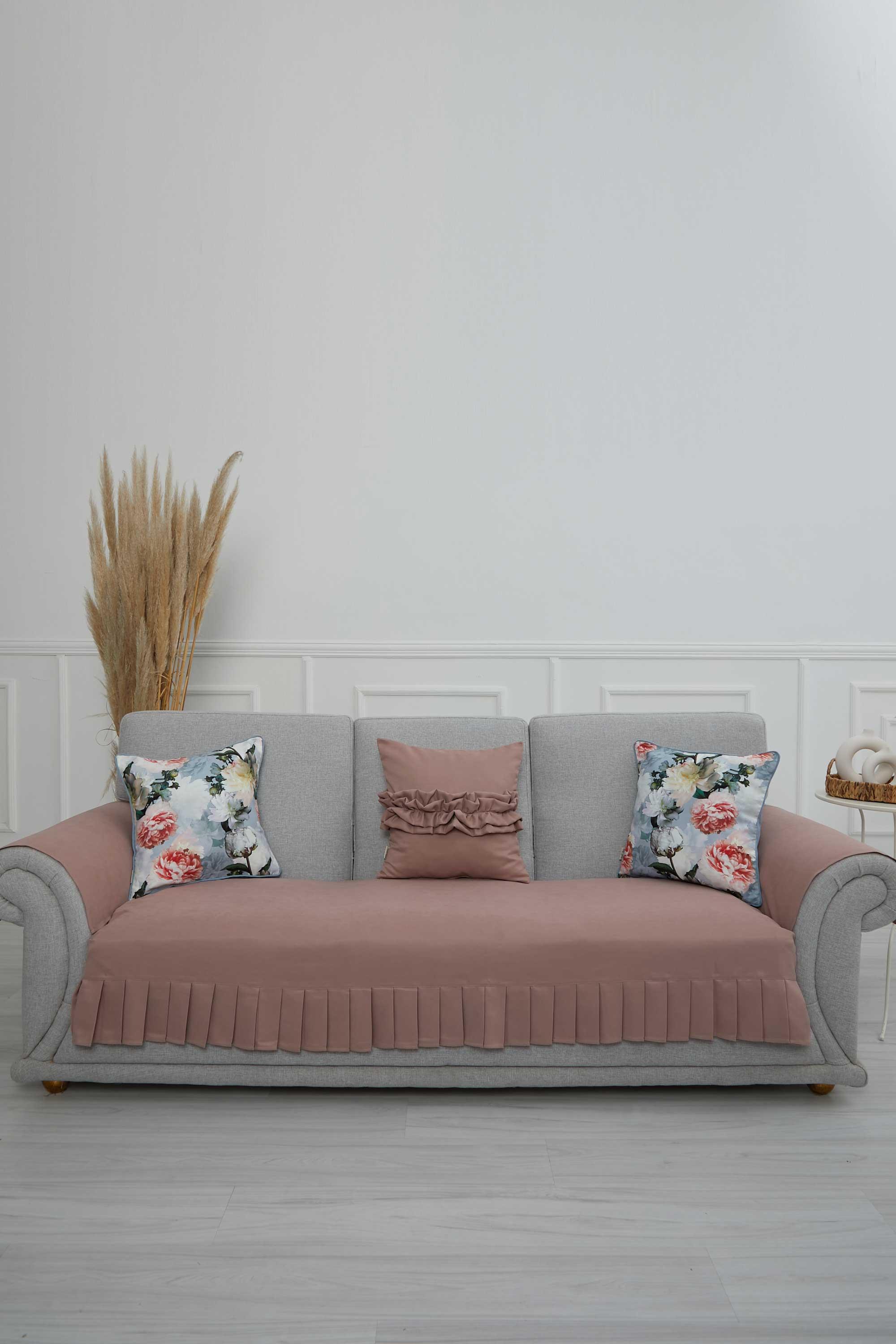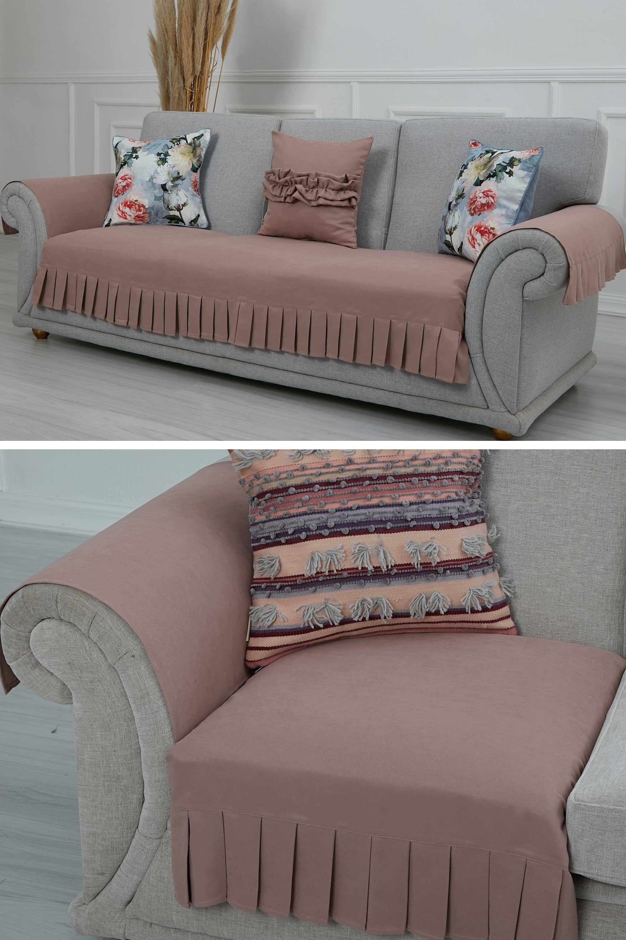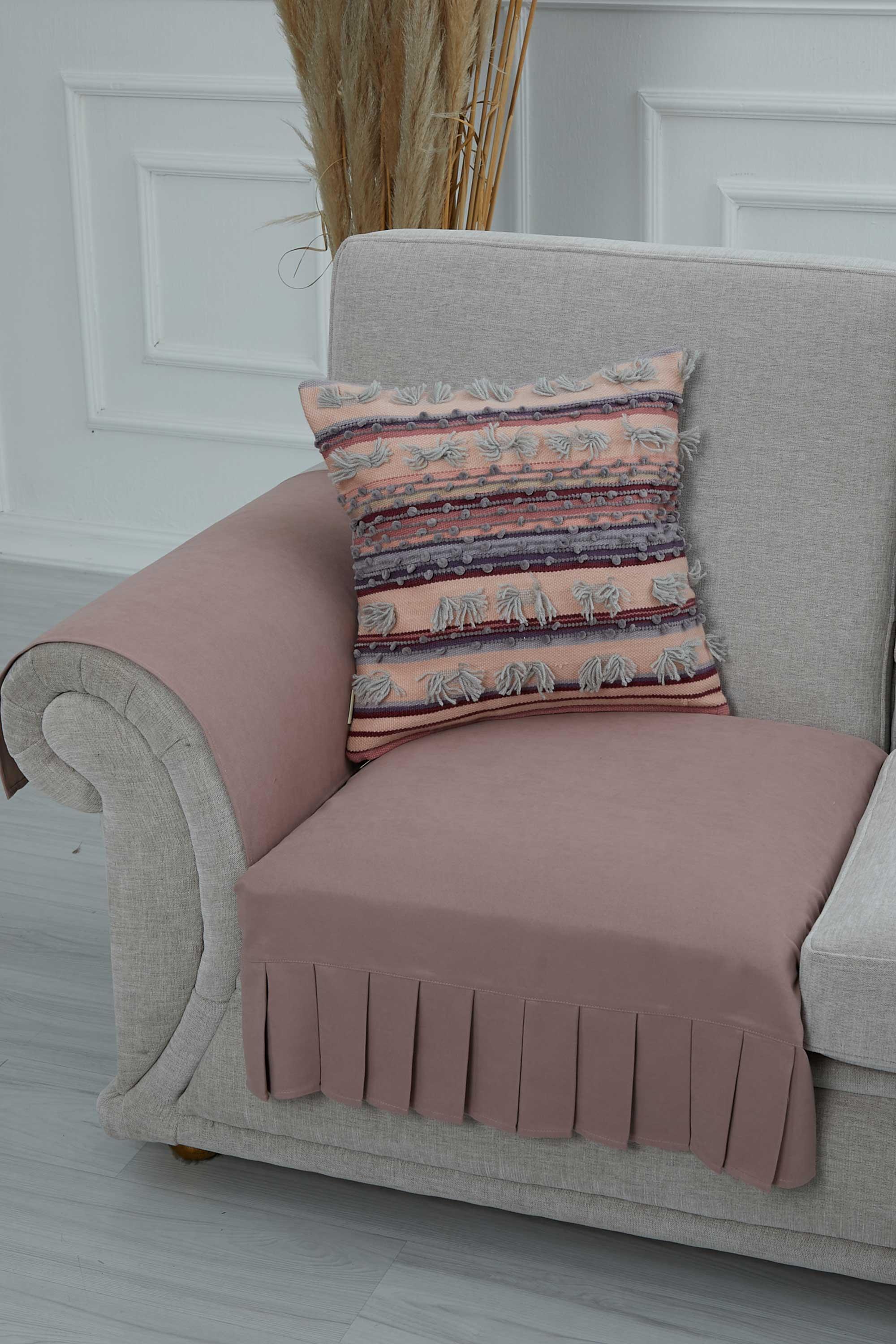 Pileli 3'lü ve Tekli Koltuk Örtüsü ve Kolçak Takımı,KTK-6 Pudra
