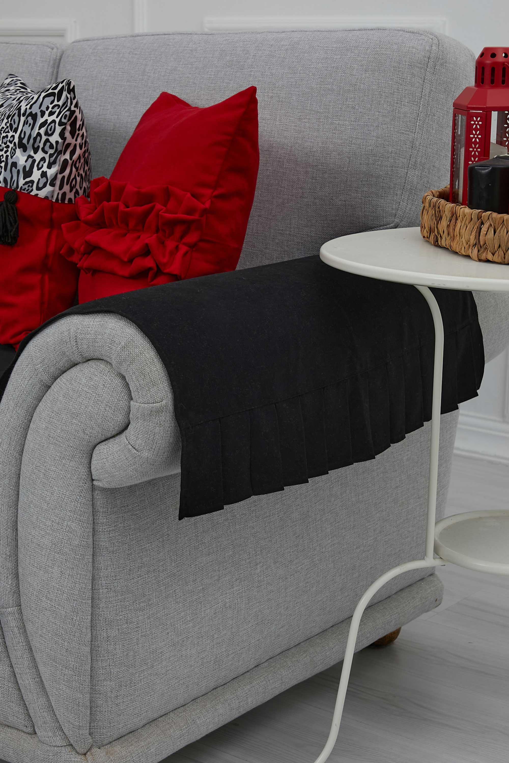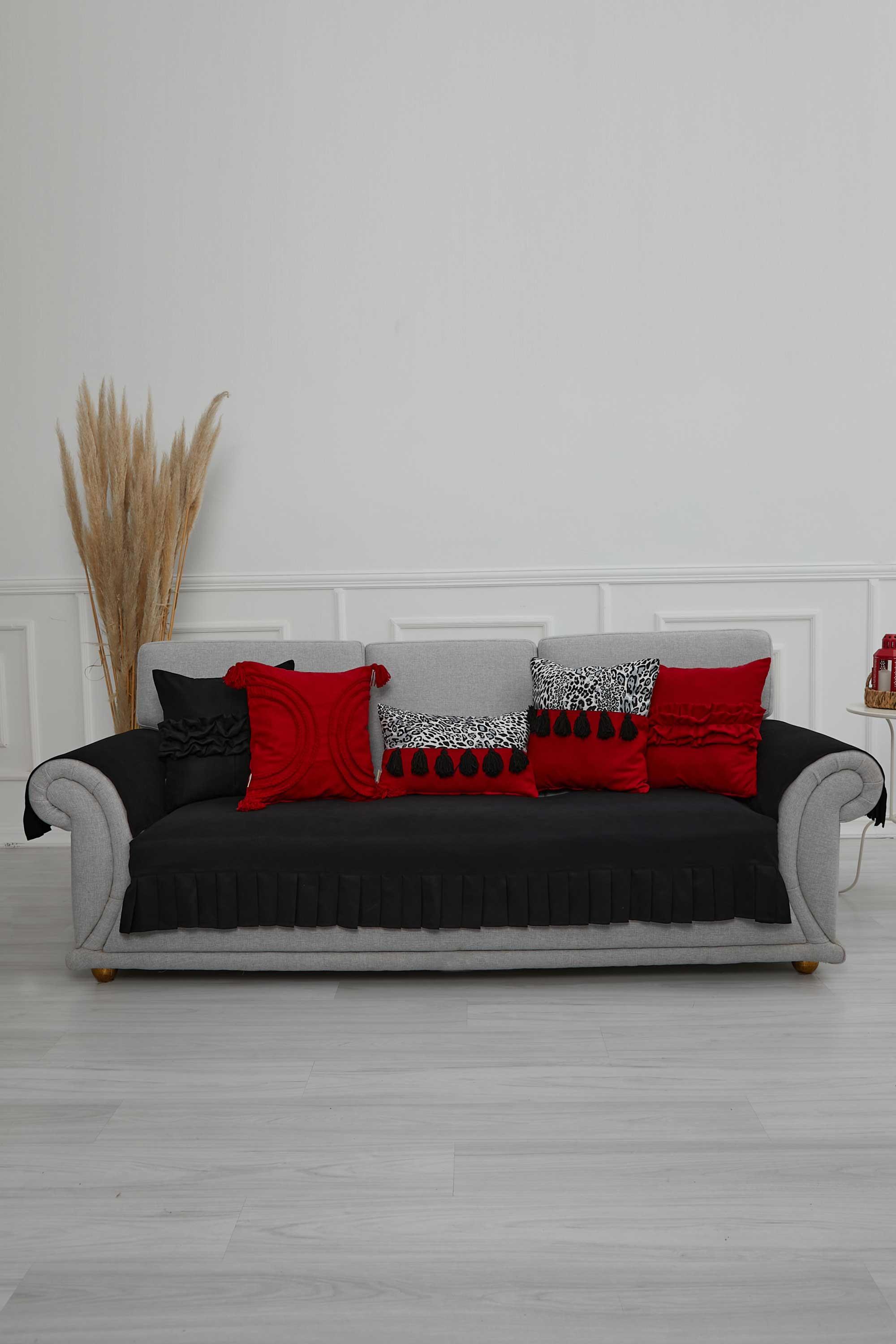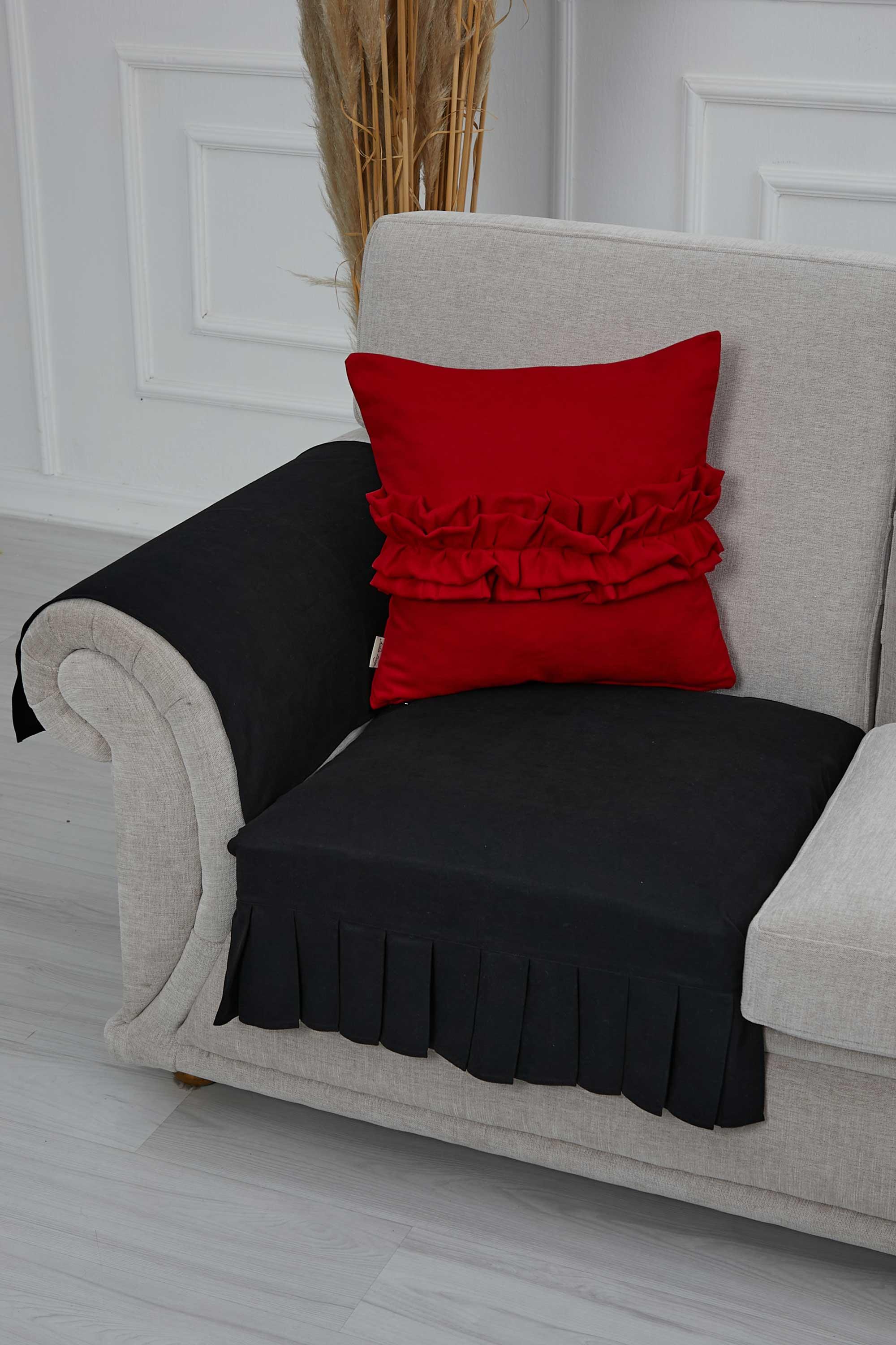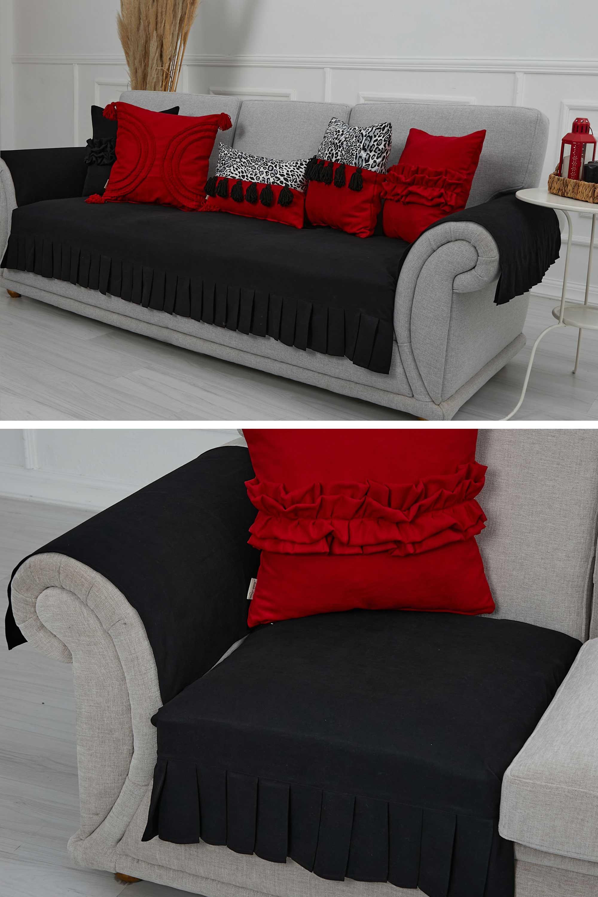 Pileli 3'lü ve Tekli Koltuk Örtüsü ve Kolçak Takımı,KTK-6 Siyah