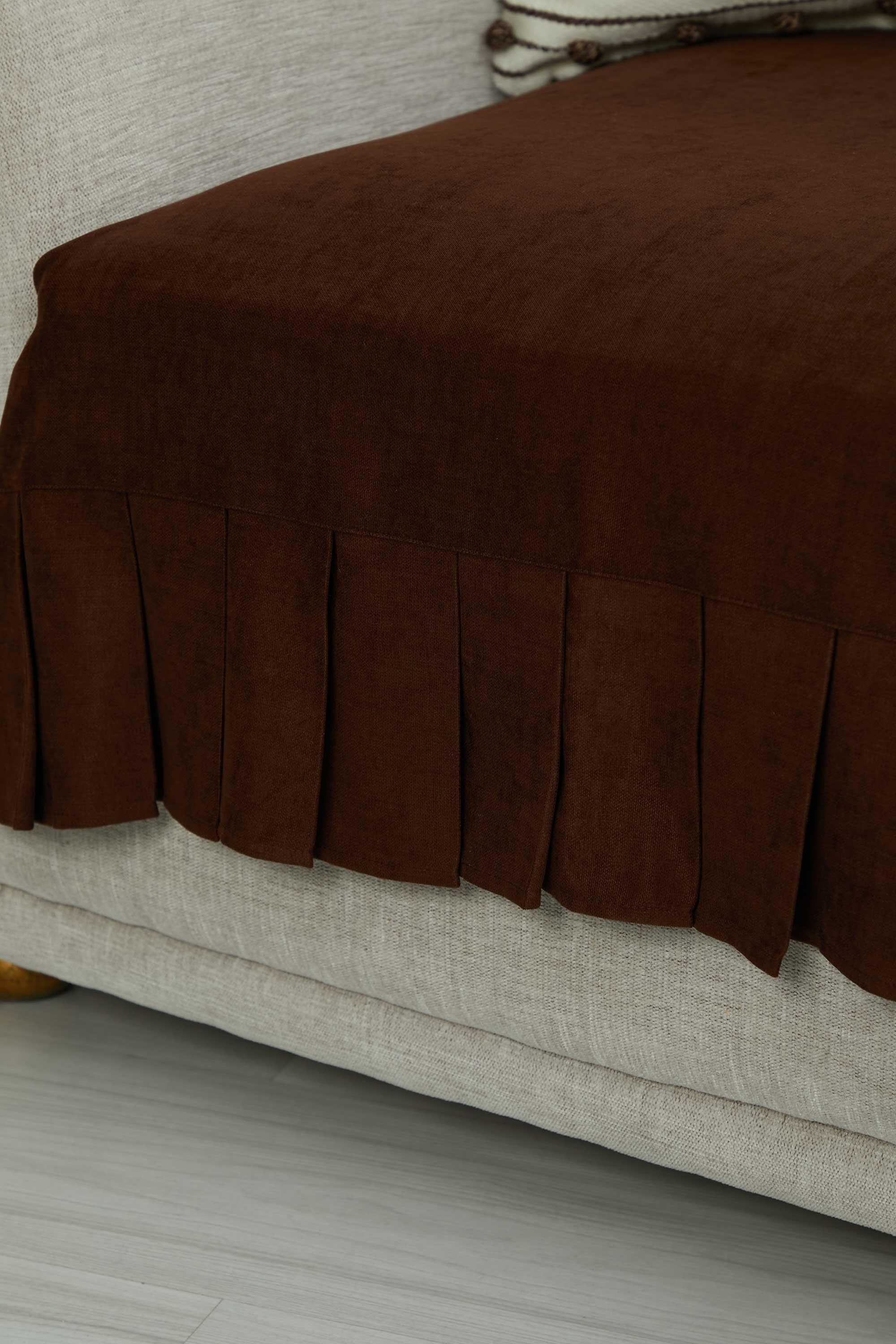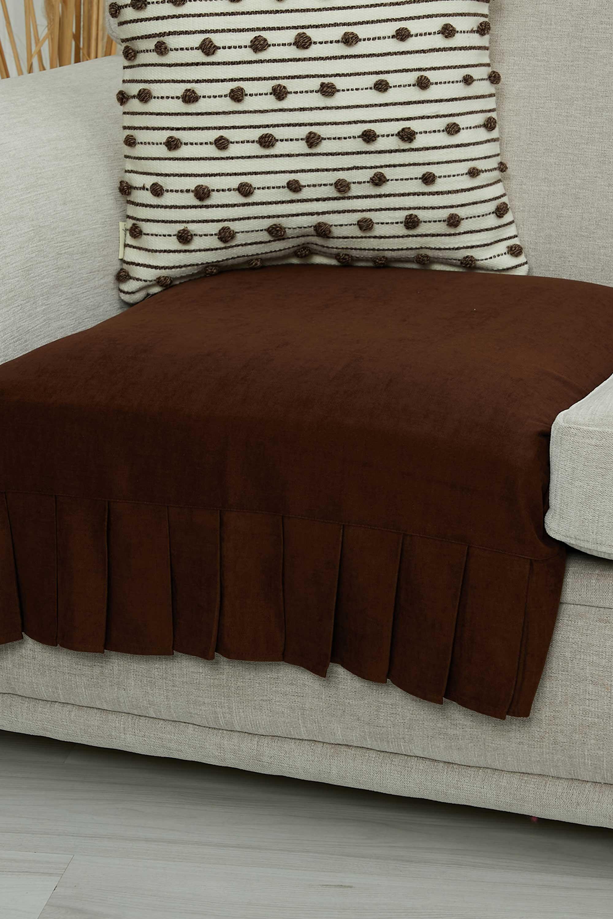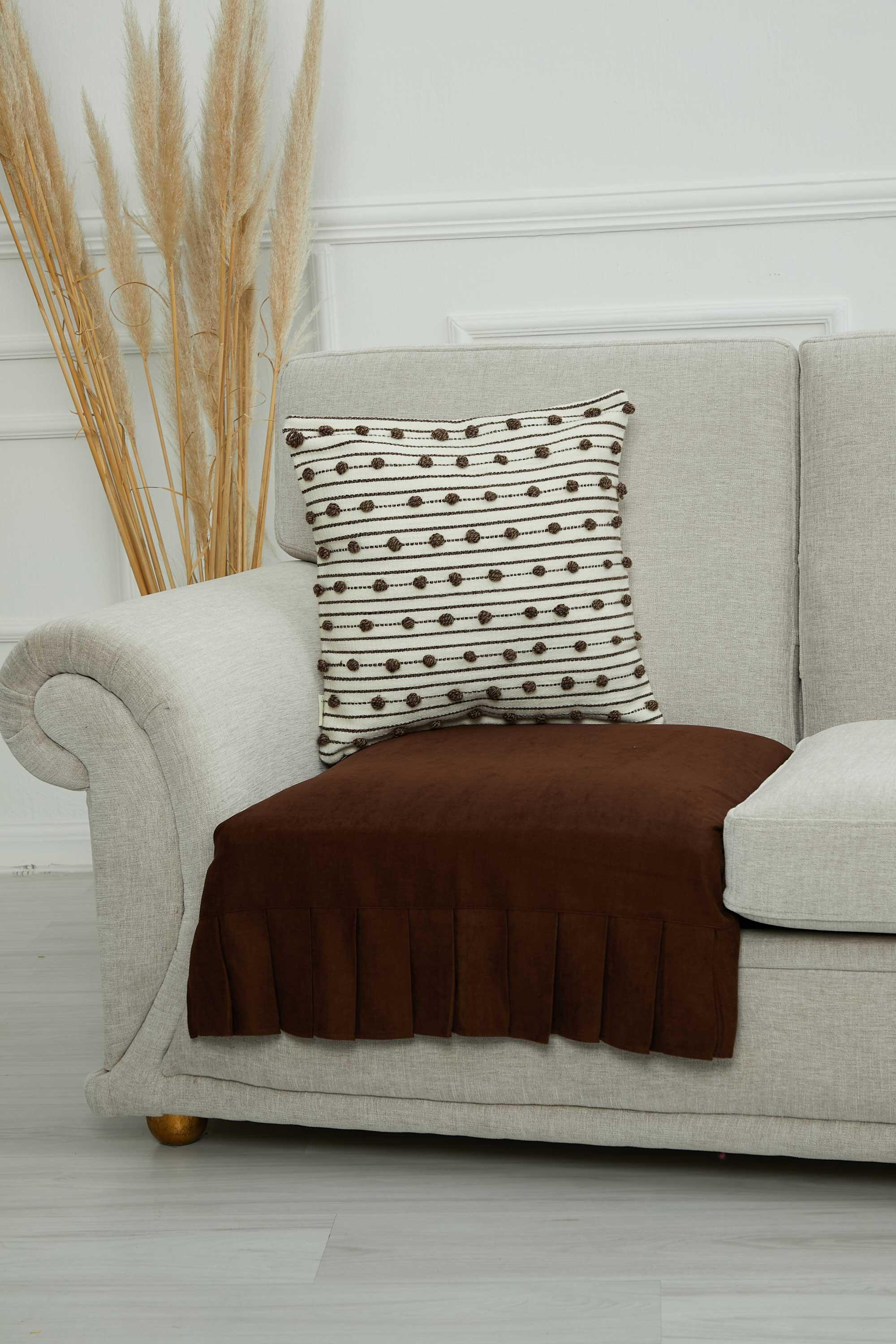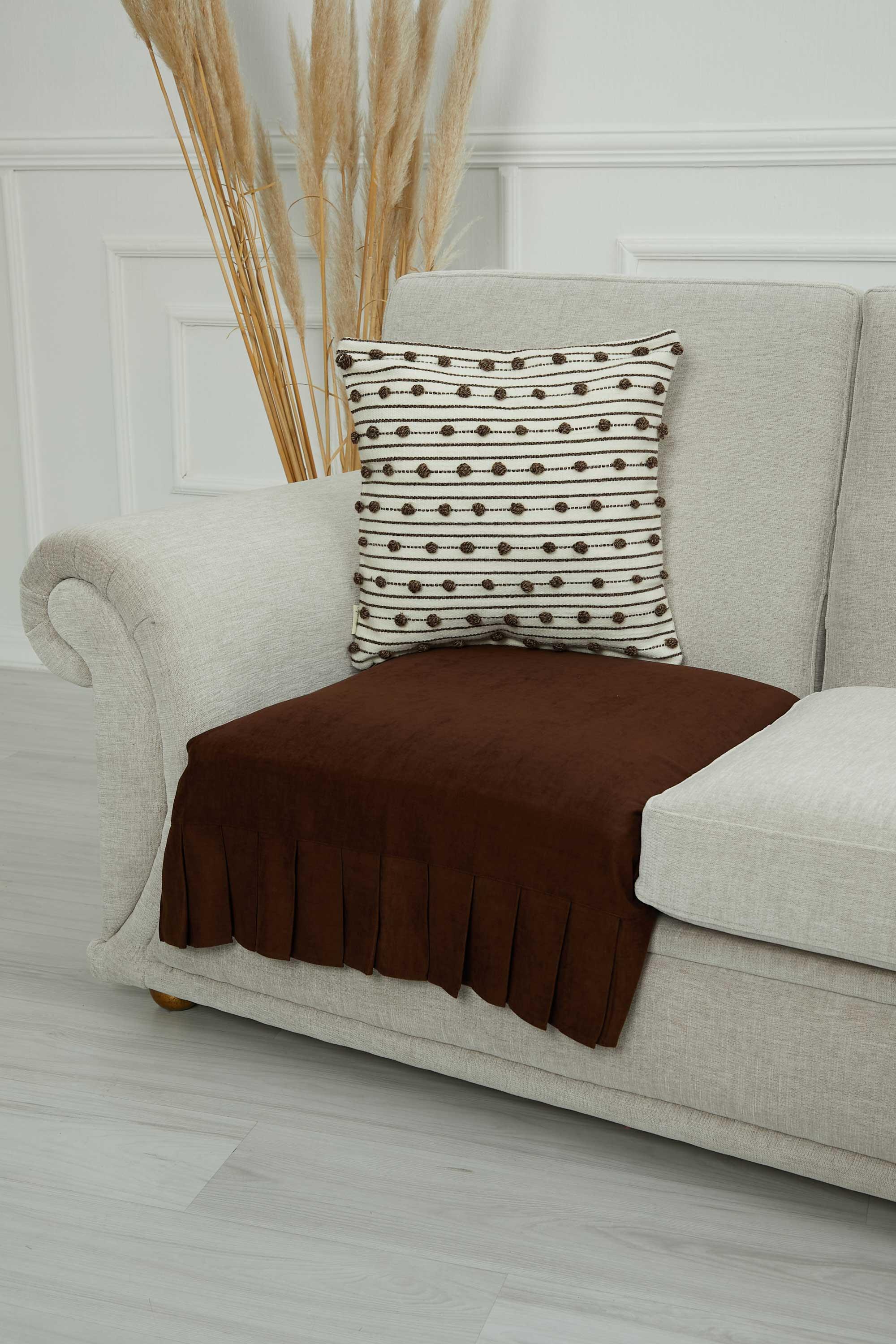Pileli Tek'li Koltuk Örtüsü,KO-27 Kahverengi