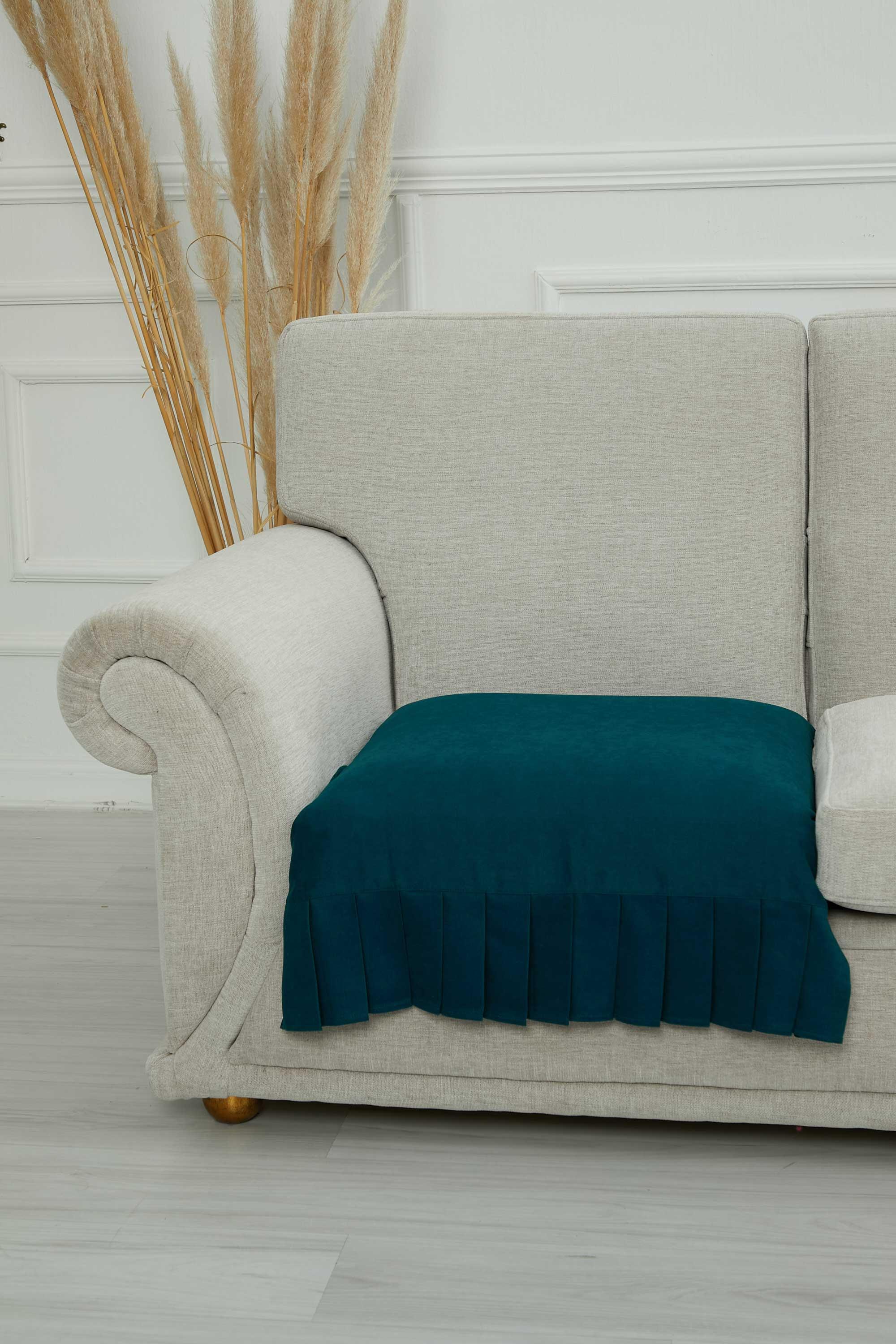 Pileli Tek'li Koltuk Örtüsü,KO-27 Petrol Mavisi