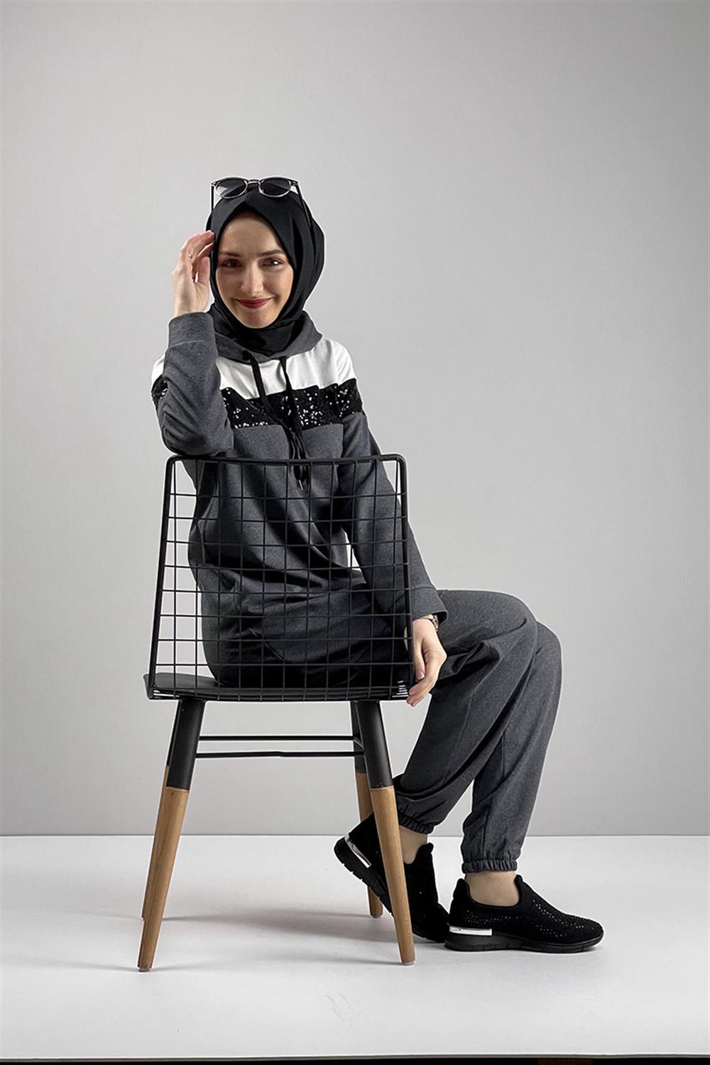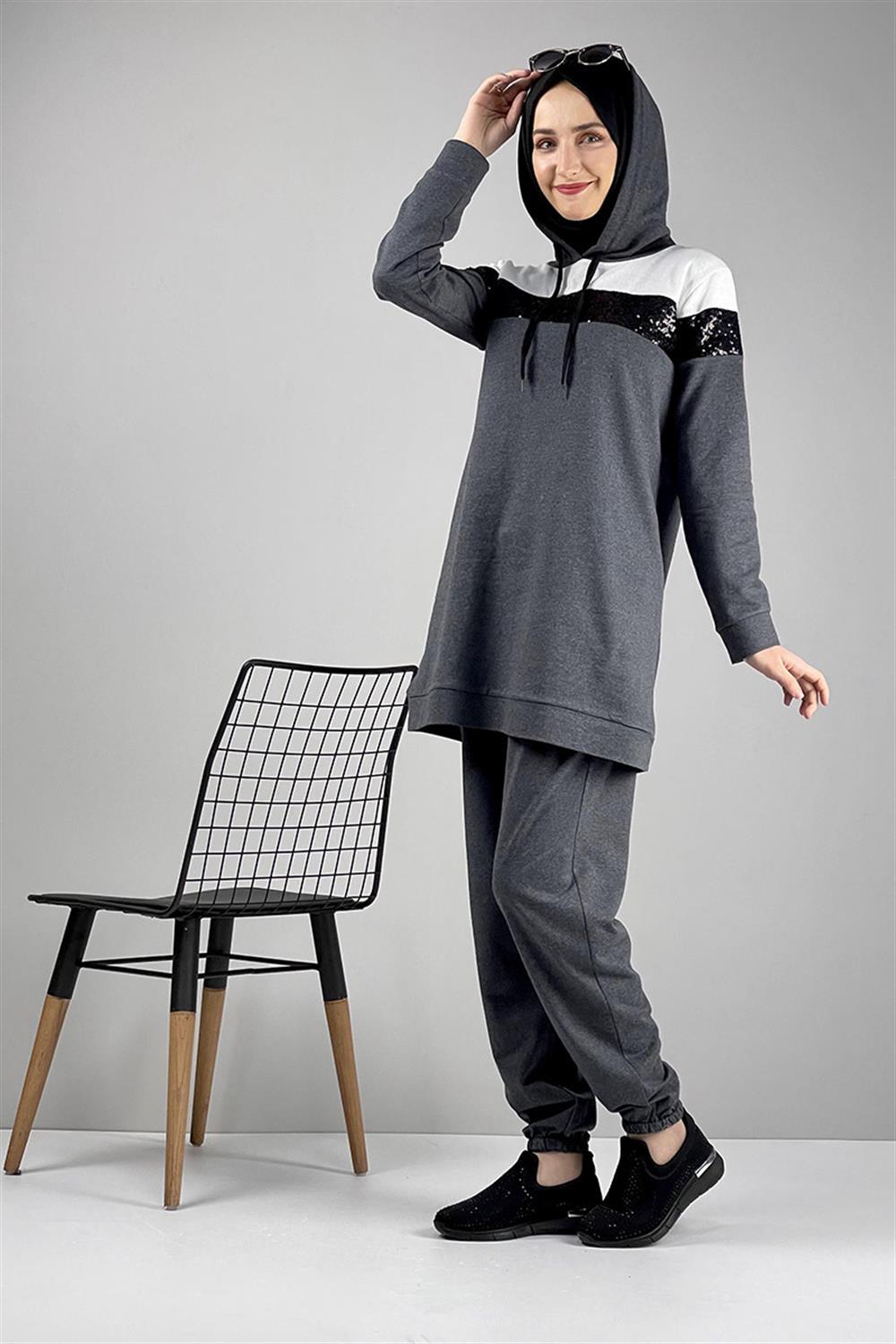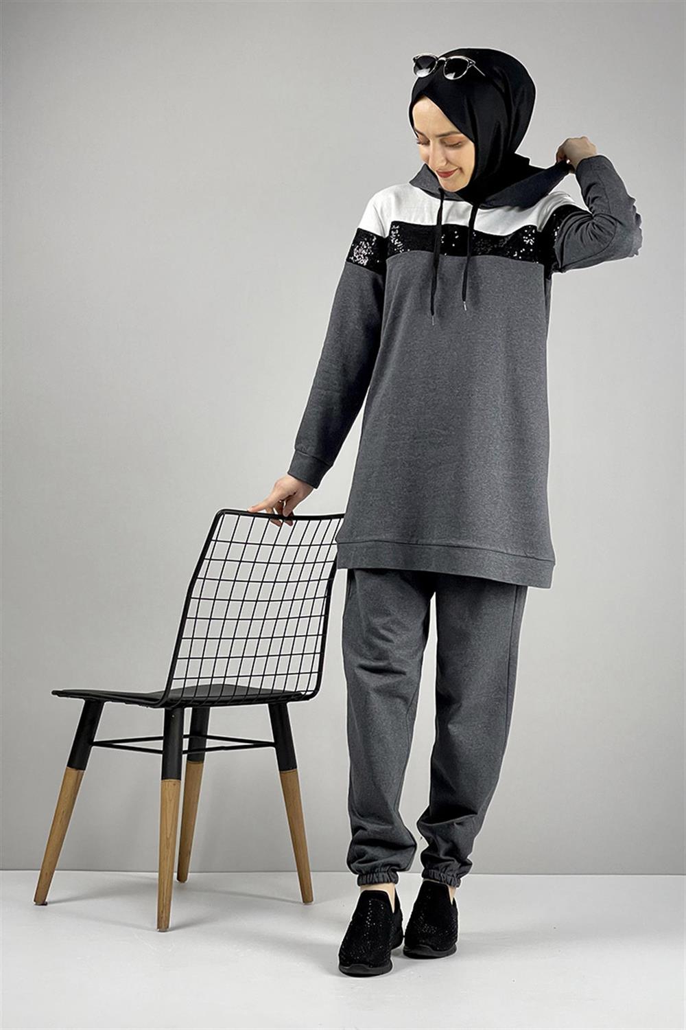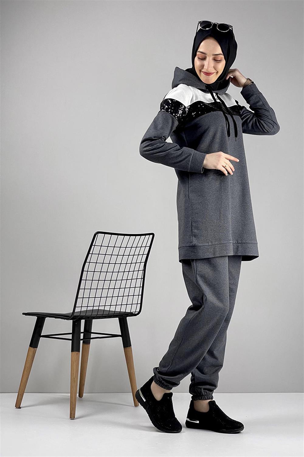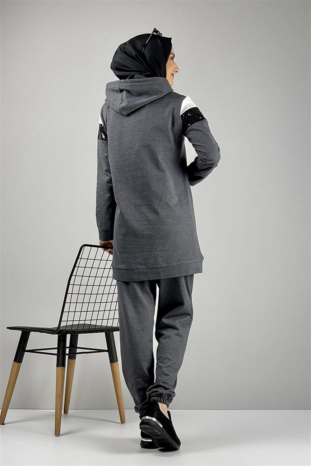 Pul Payet Detaylı Eşofman Takımı Antrasit