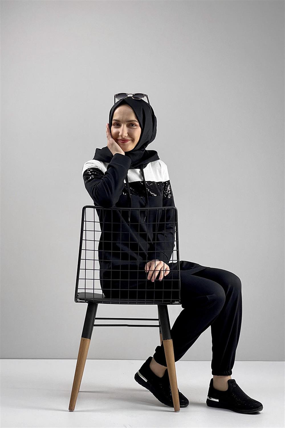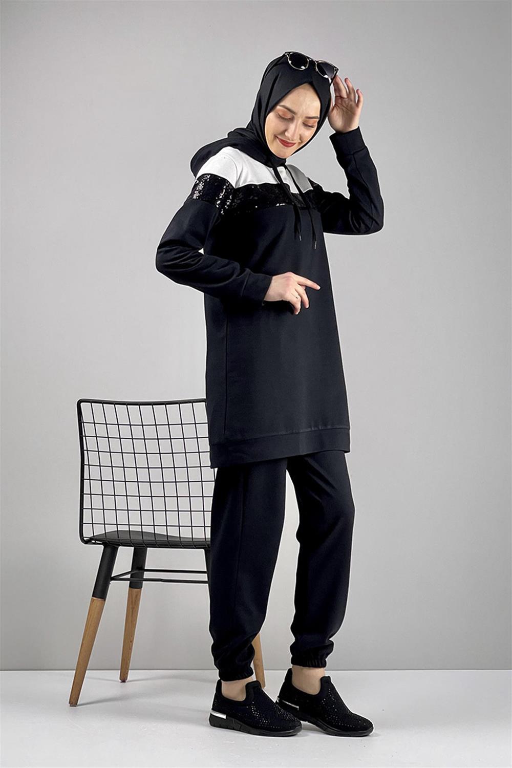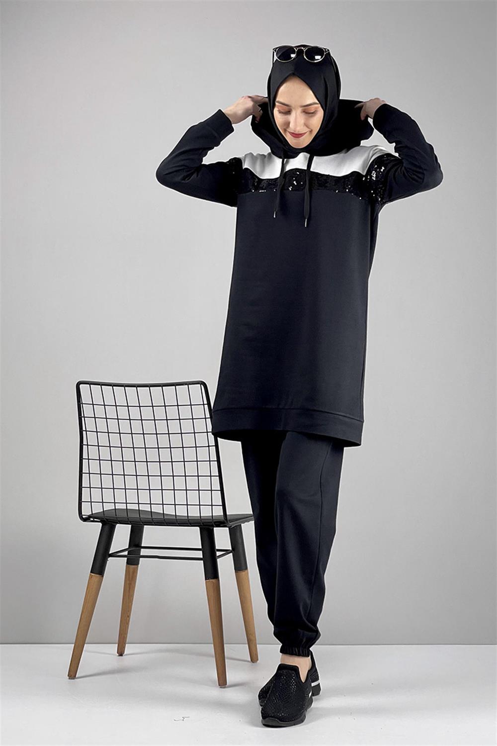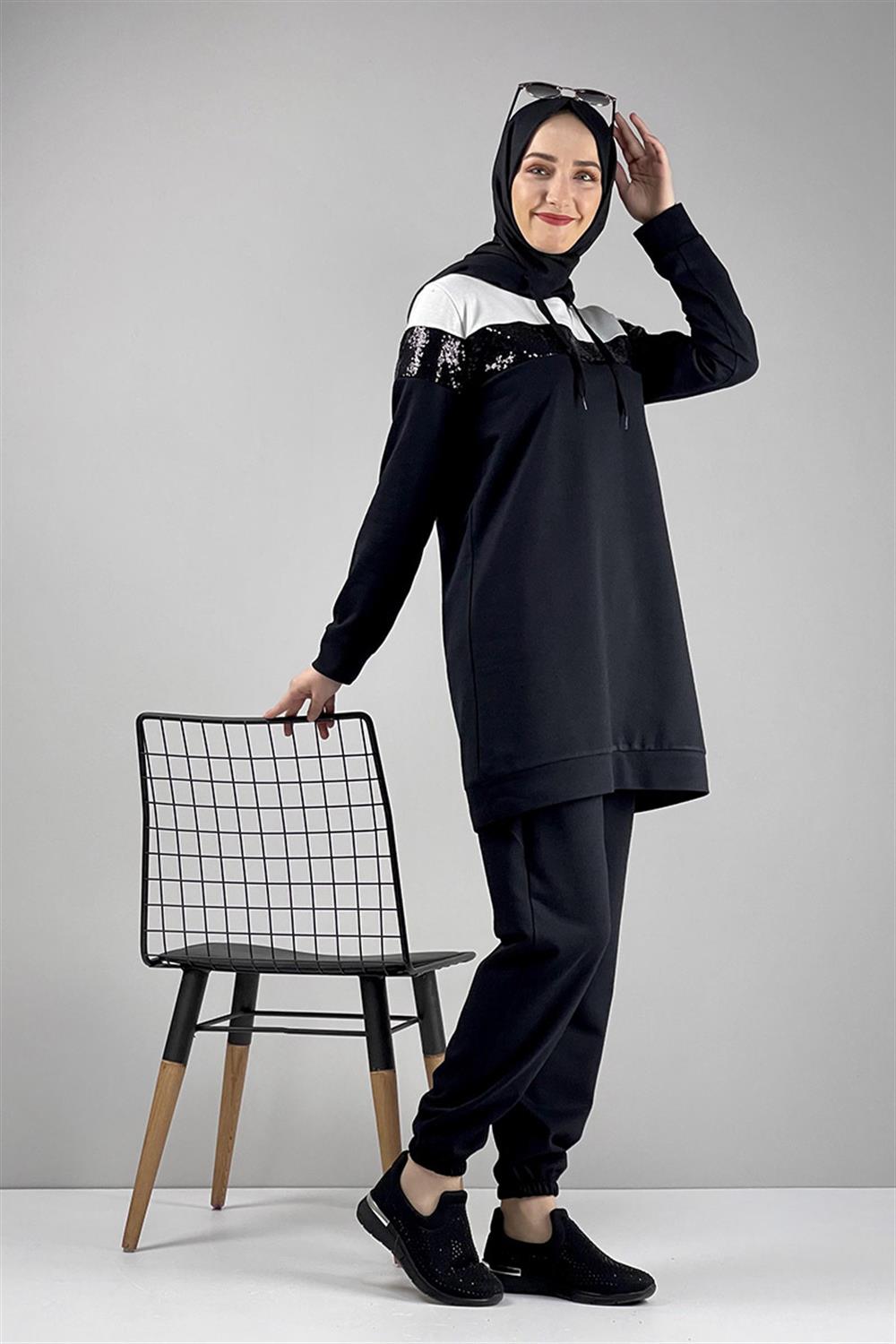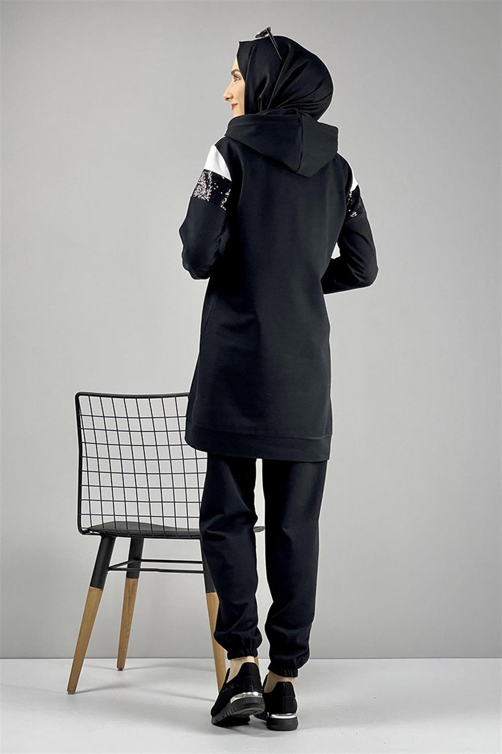 Pul Payet Detaylı Eşofman Takımı Siyah