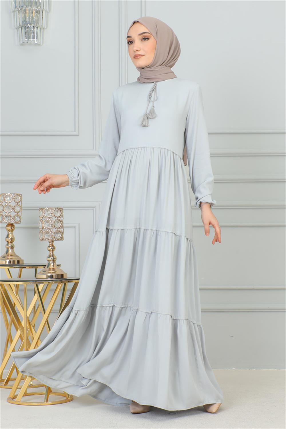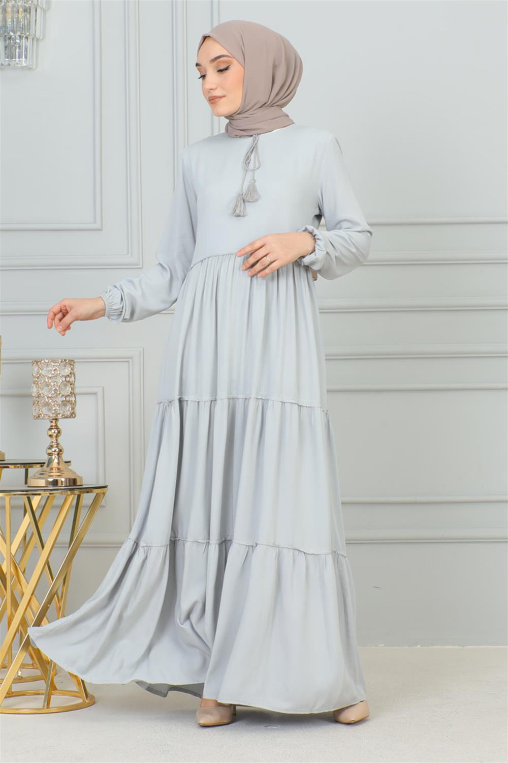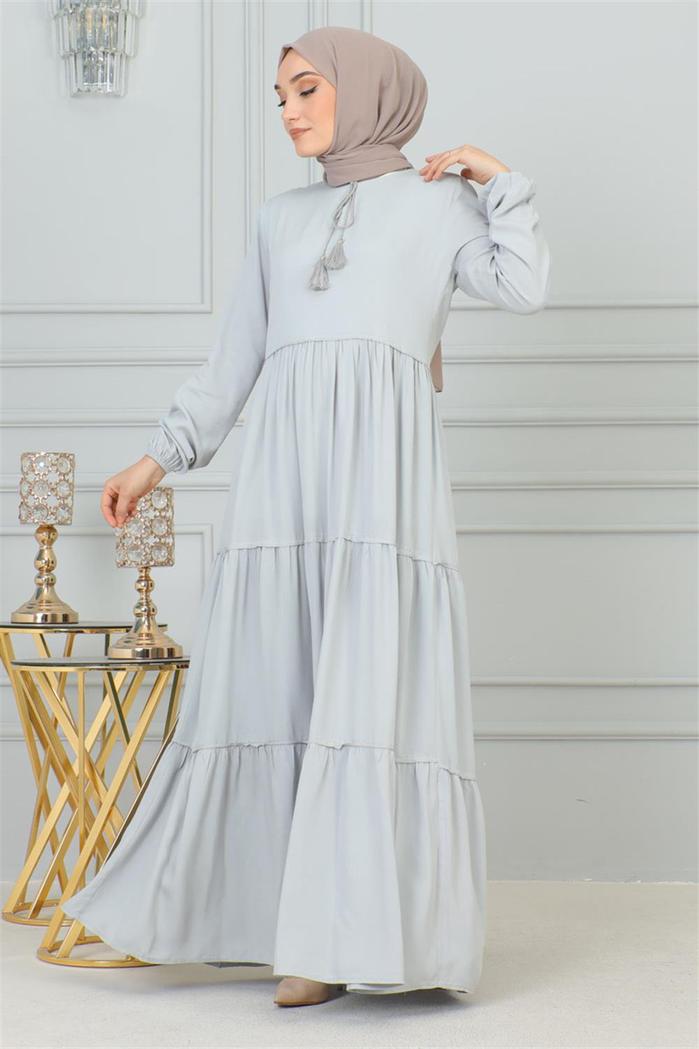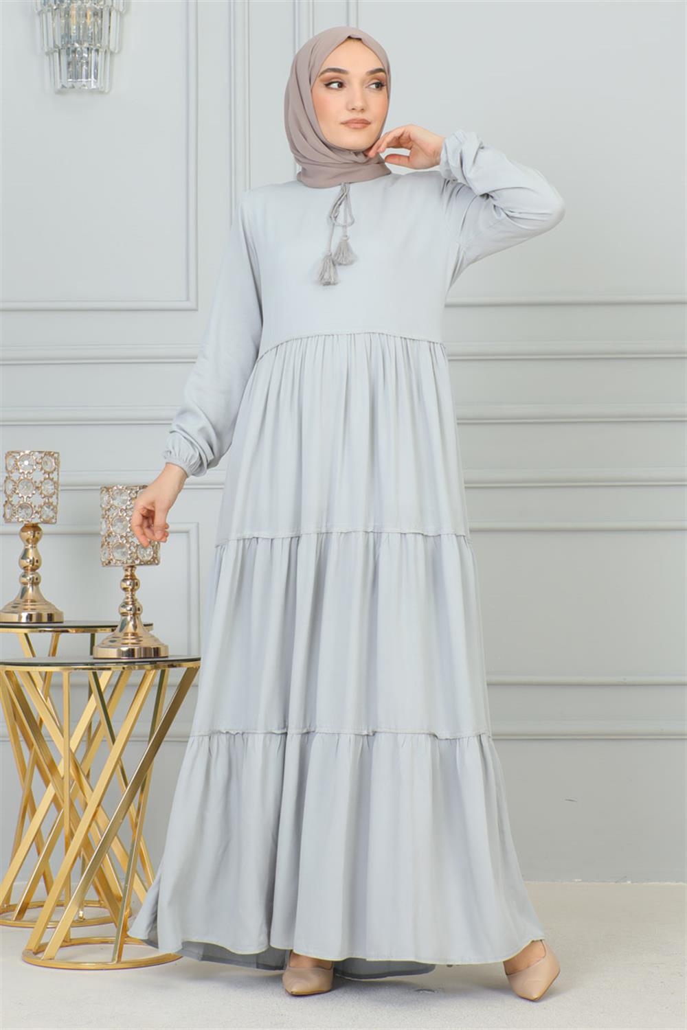 Püskül Detaylı Elbise GRİ