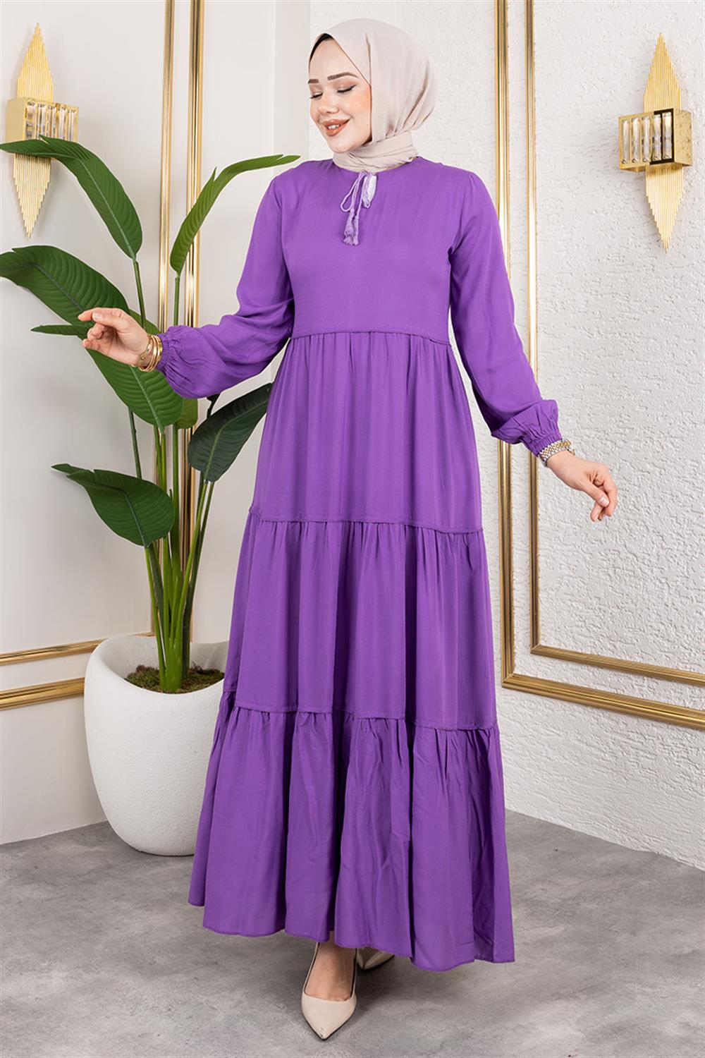 Püskül Detaylı Elbise Lila