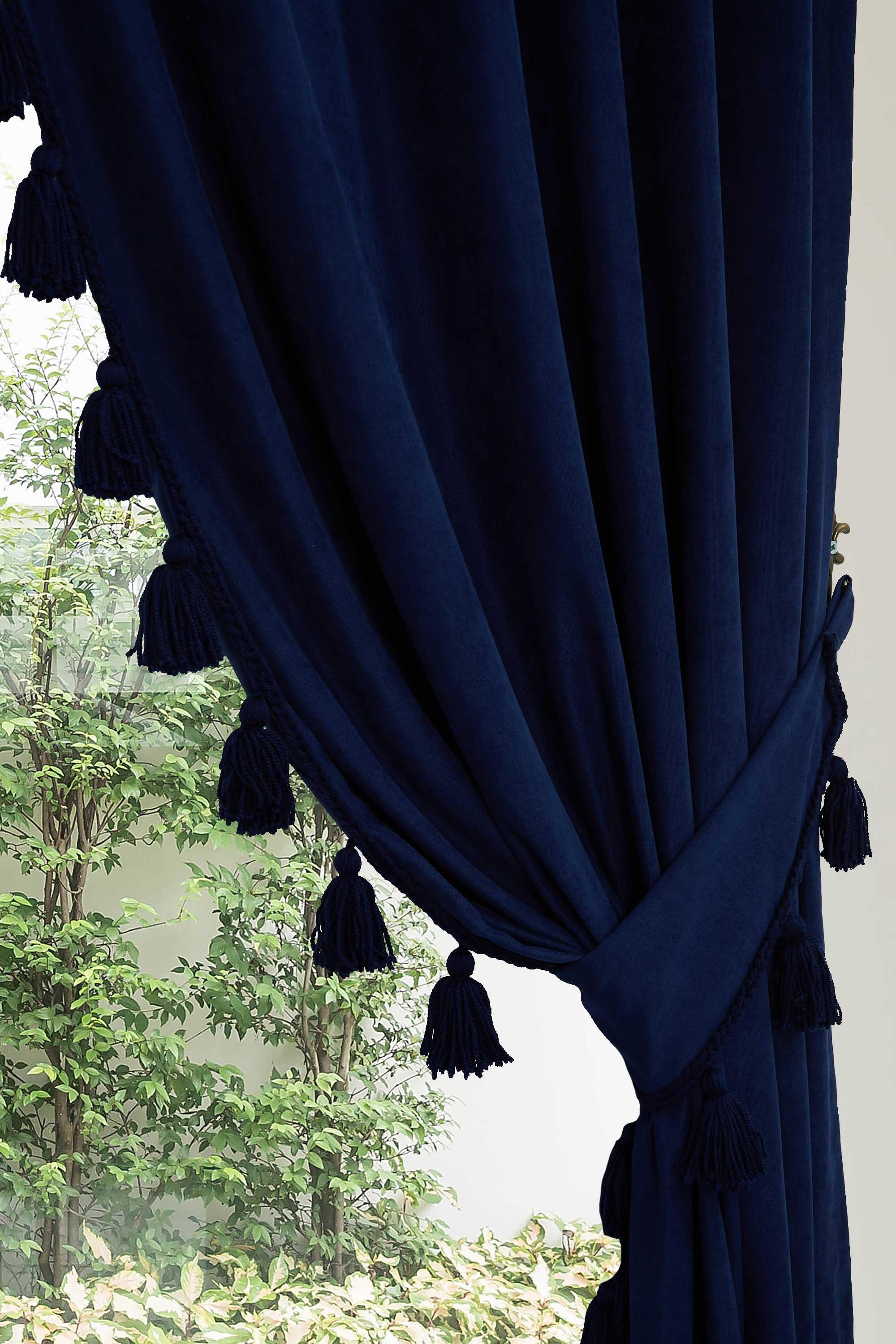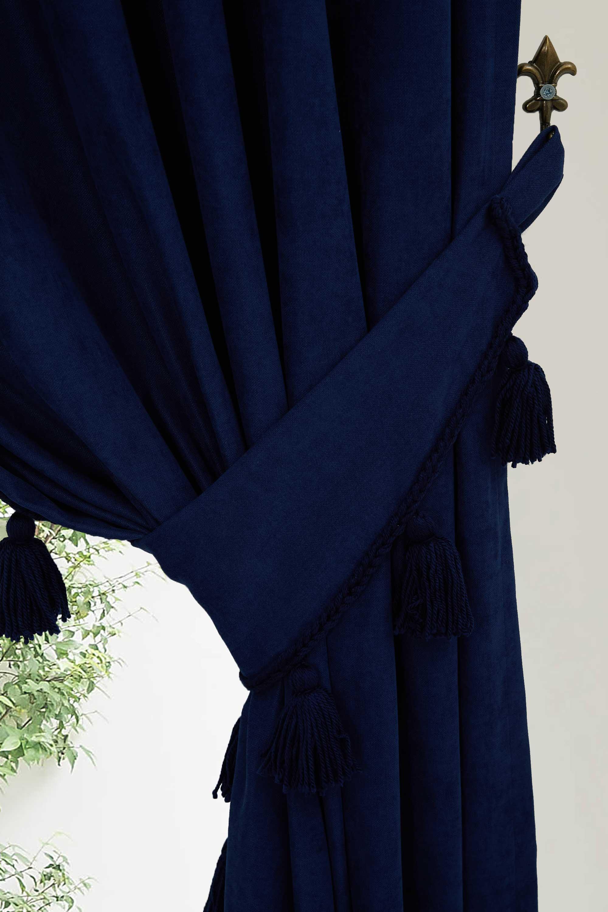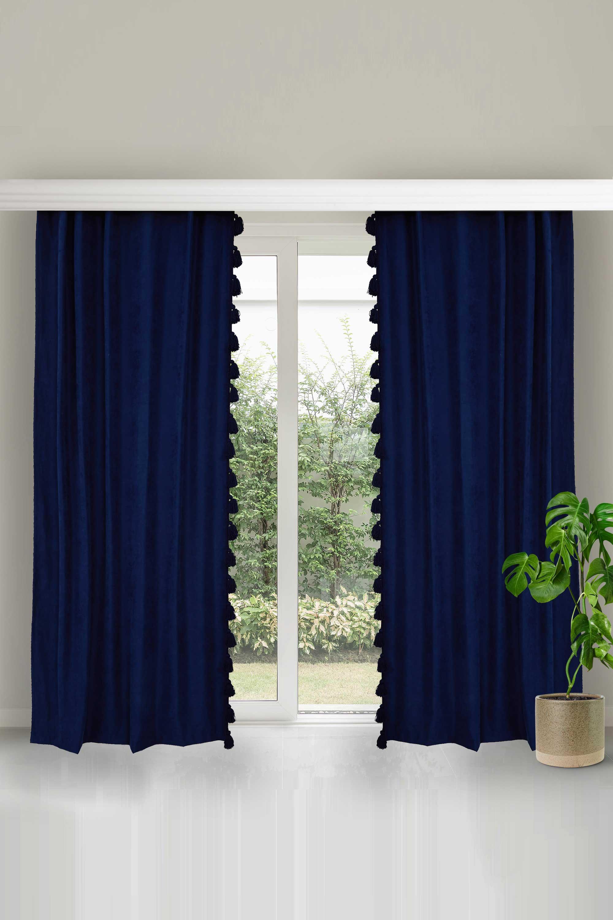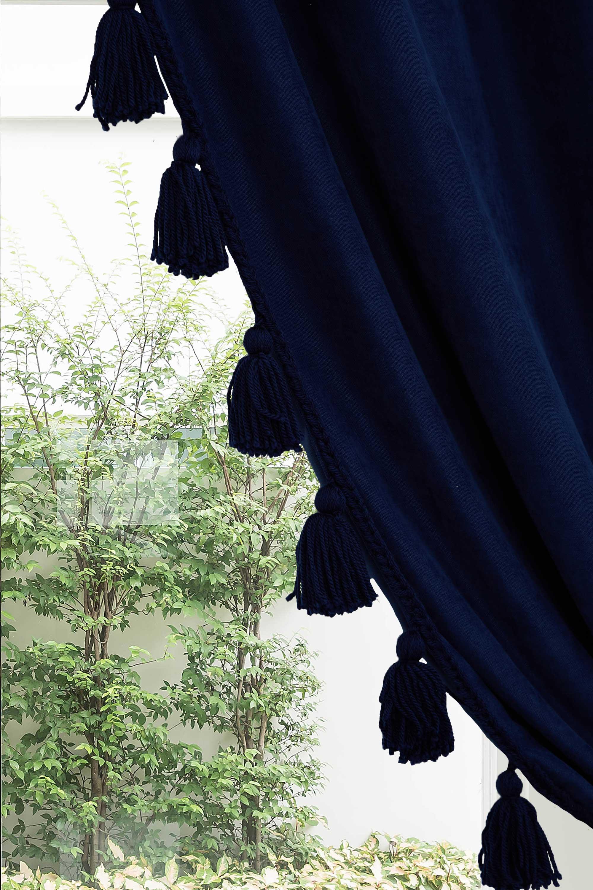 Püskül Kenarlı Fon Perde 245x140 cm Çift Kenar,PR-1 Mavi