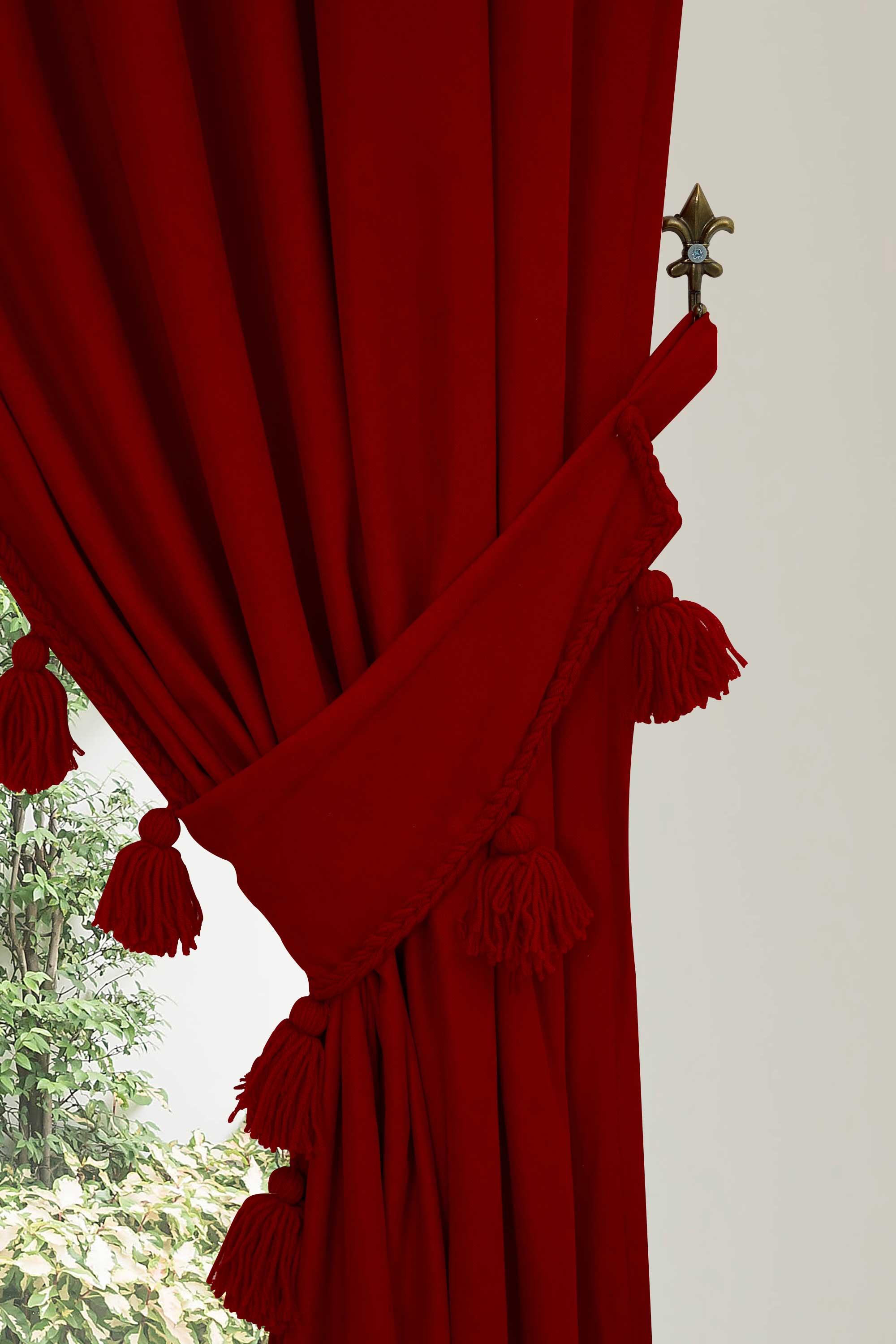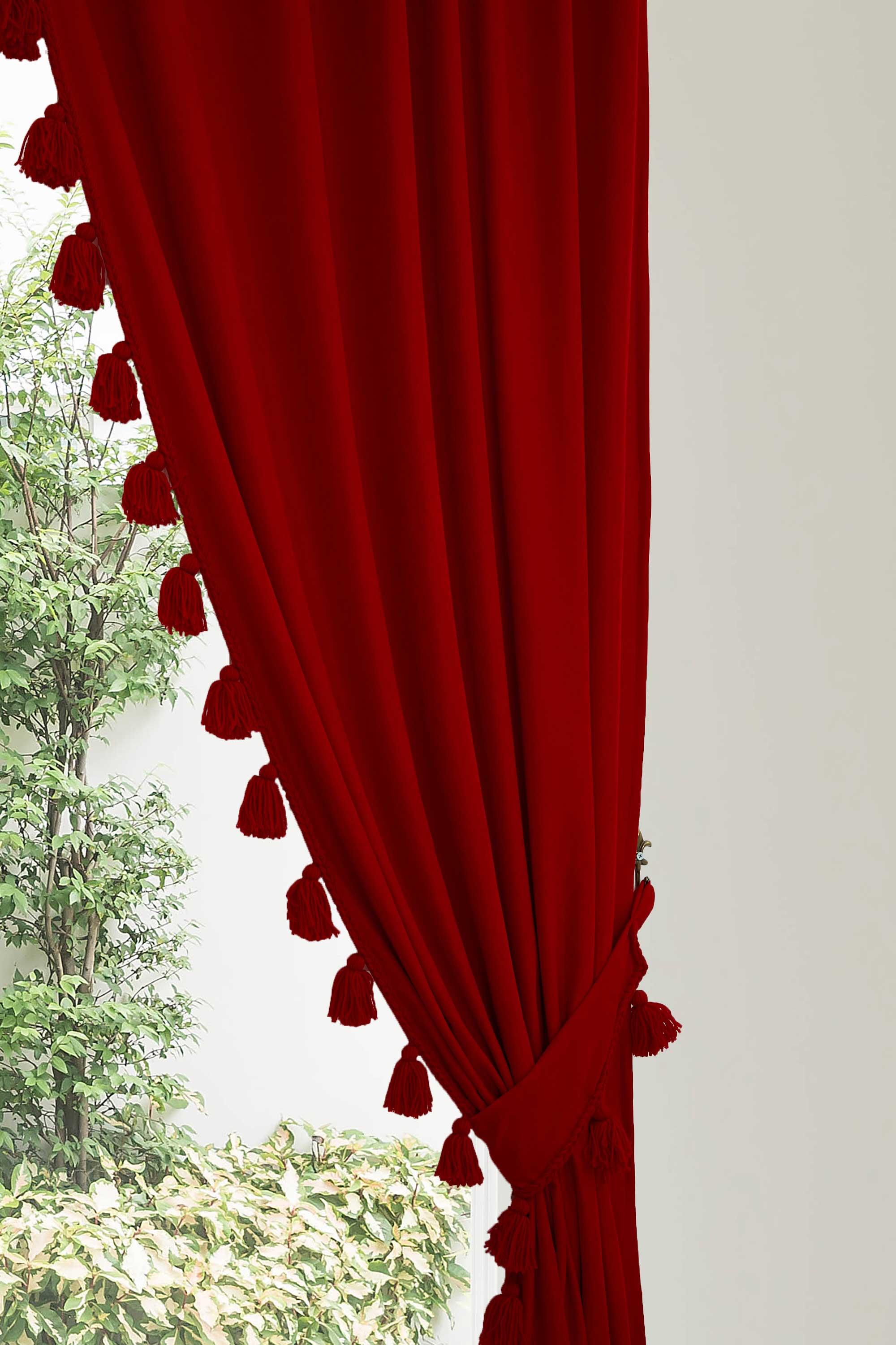Püskül Kenarlı Fon Perde Sağ Kenar 245x140 cm,PR-1SAG Kırmızı