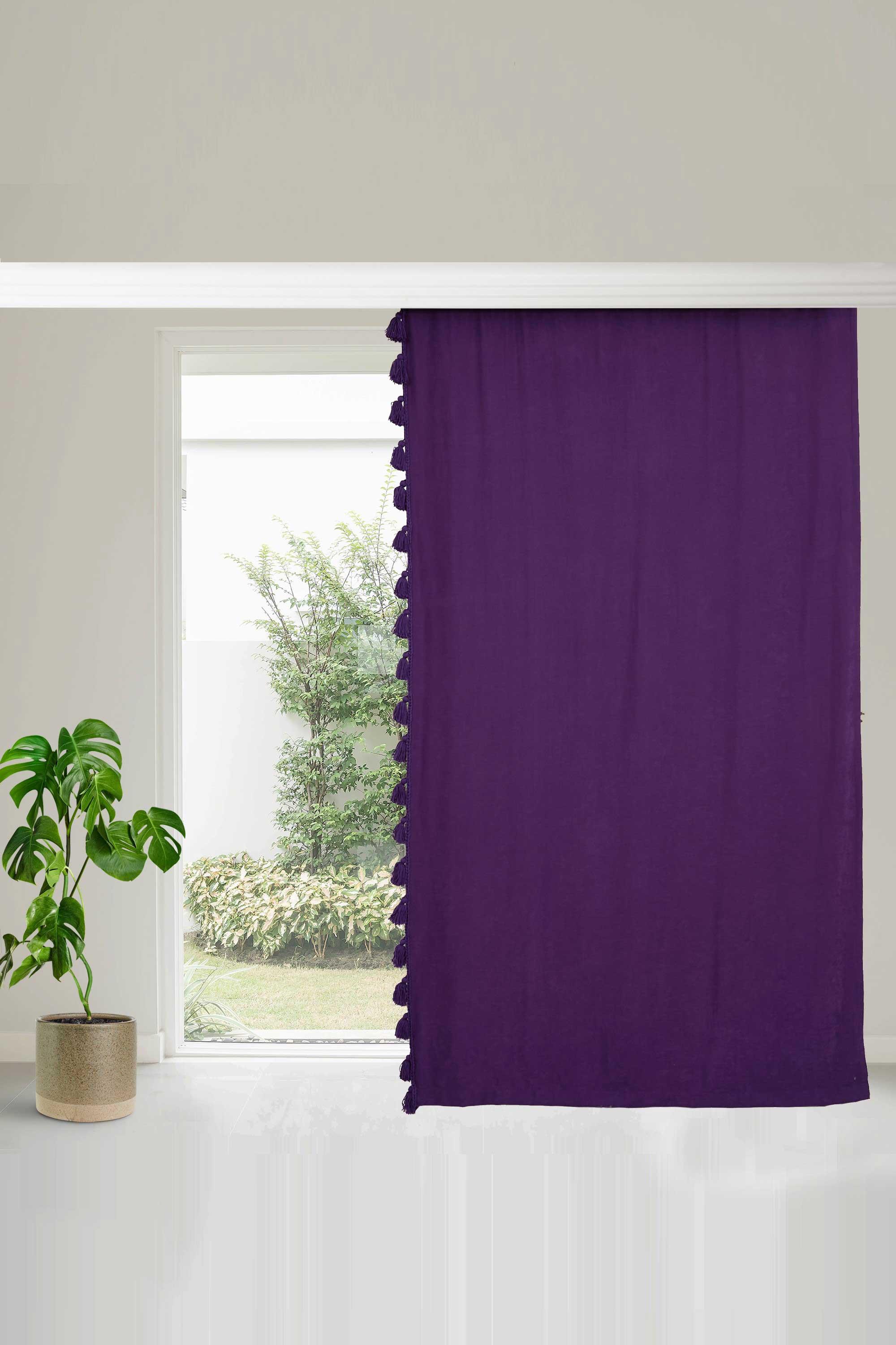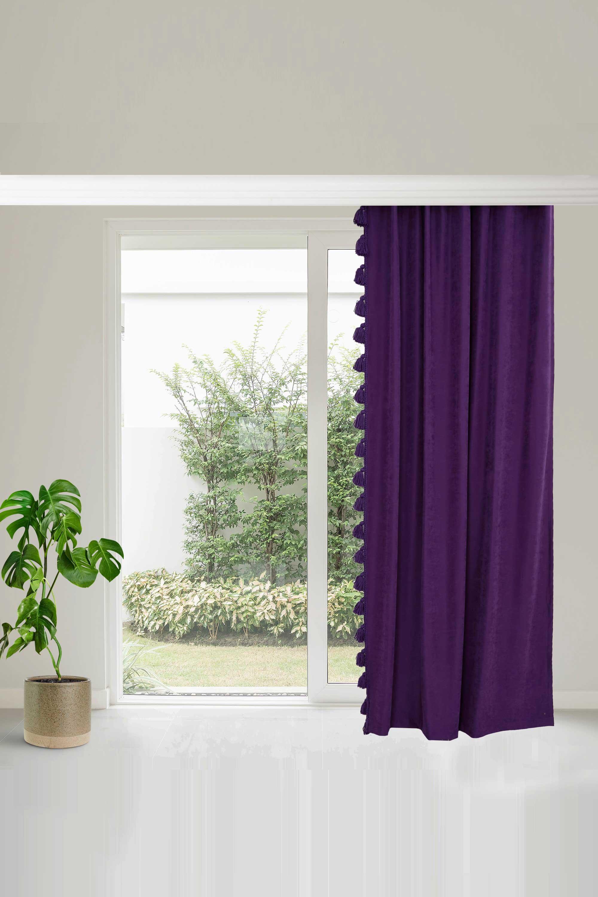 Püskül Kenarlı Fon Perde Sağ Kenar 245x140 cm,PR-1SAG Mor