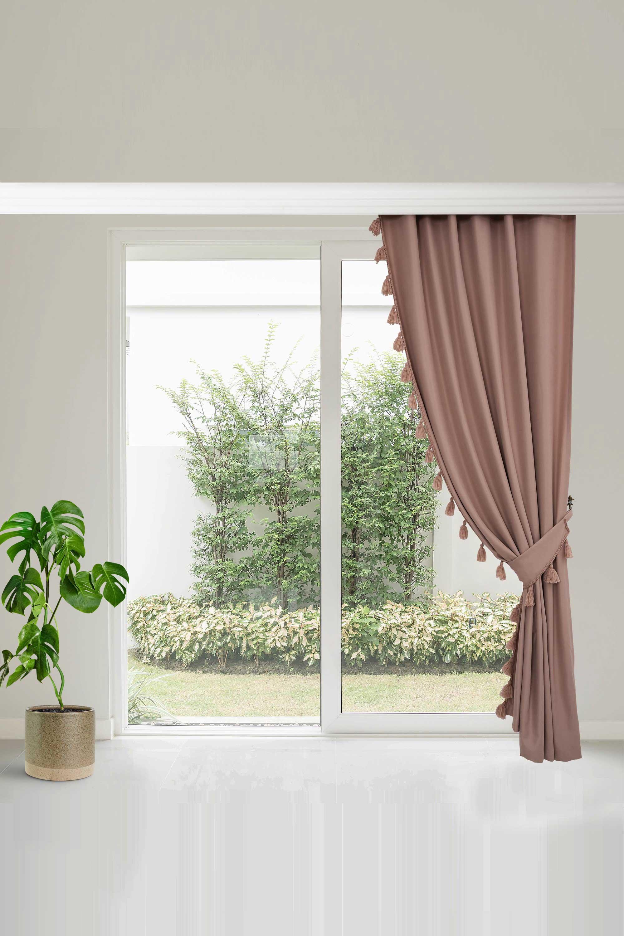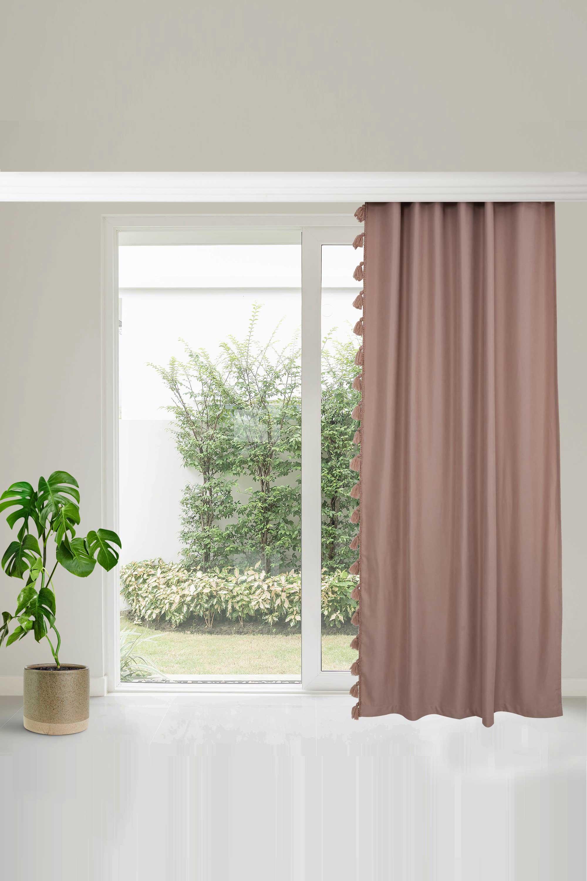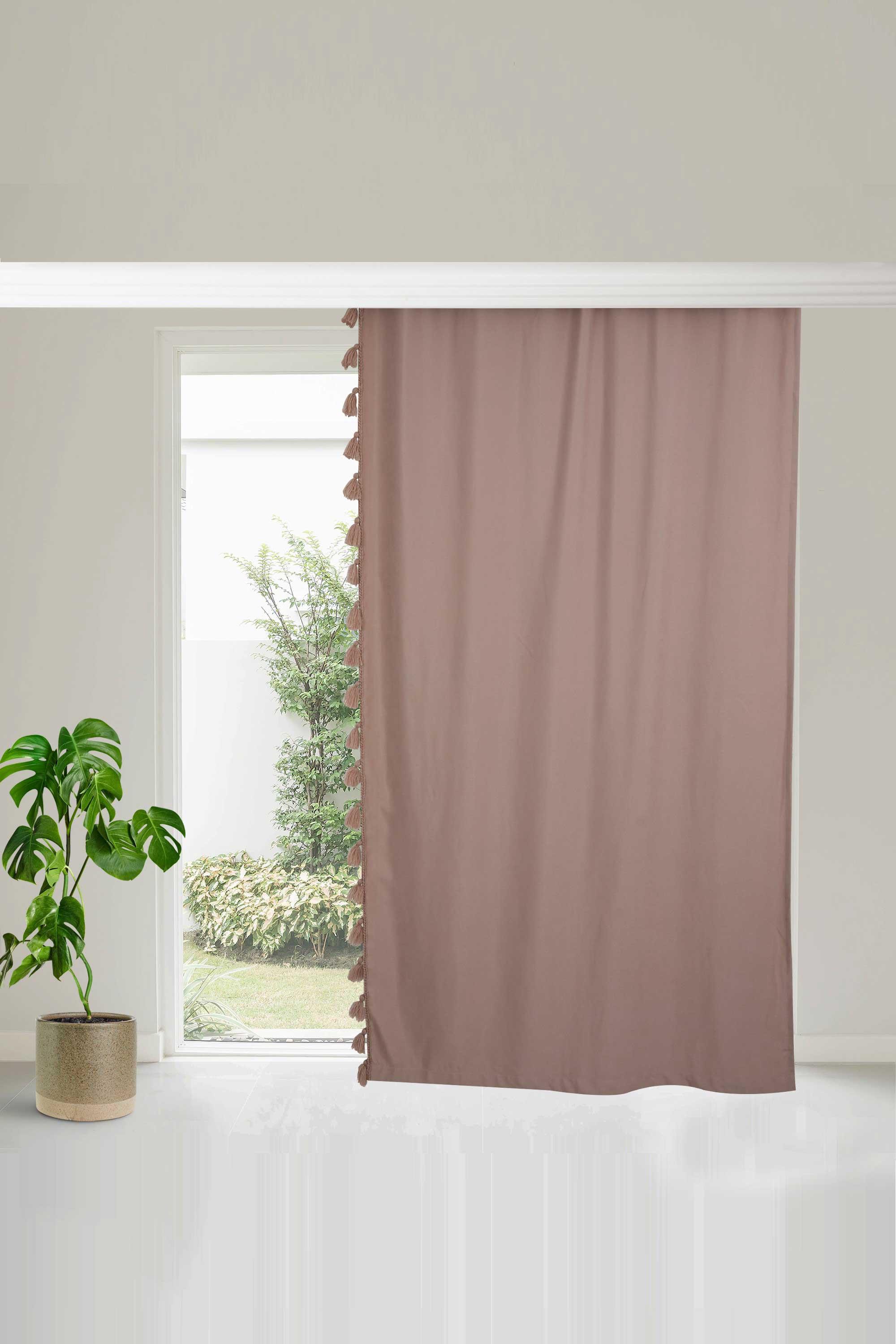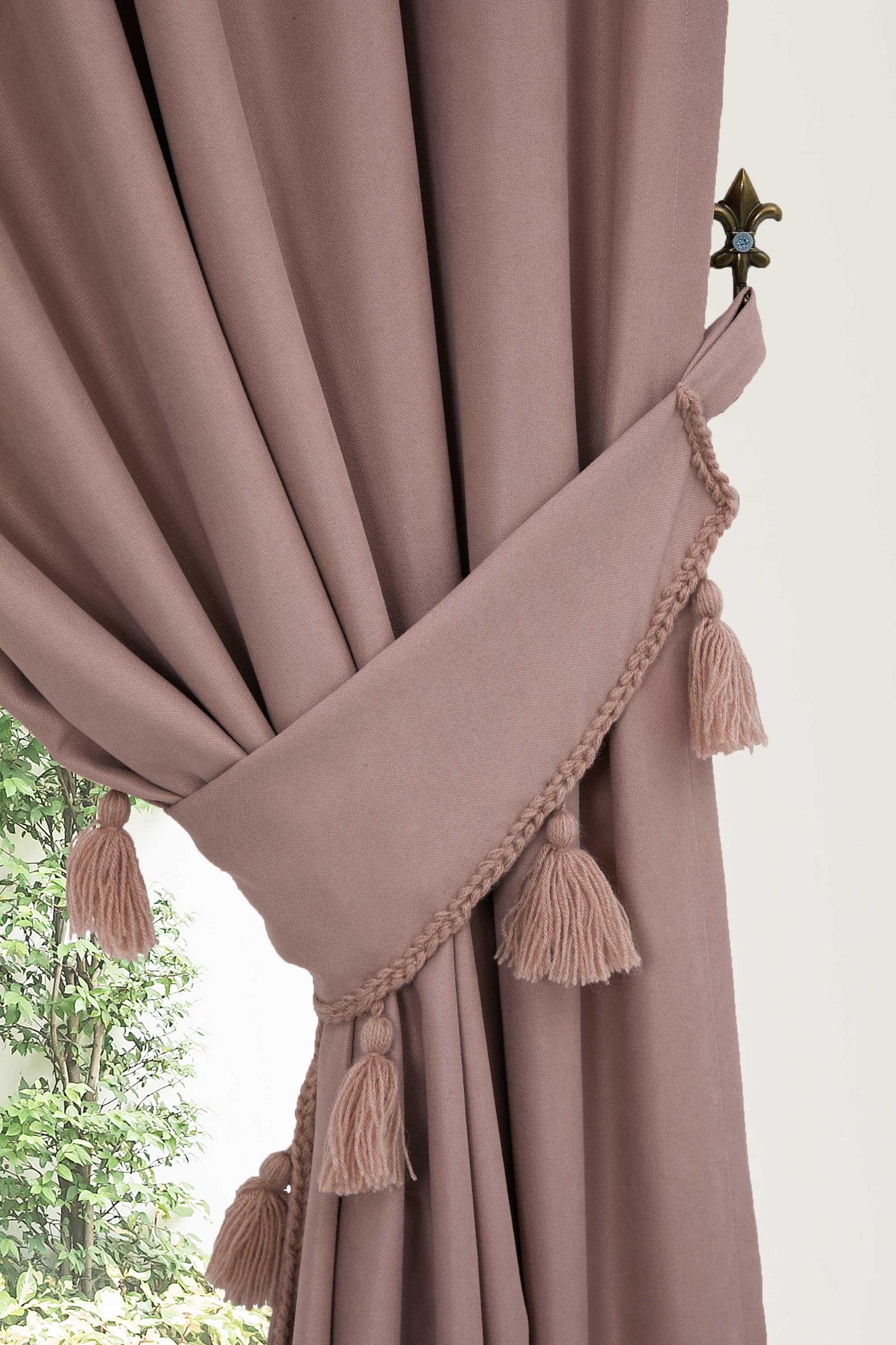 Püskül Kenarlı Fon Perde Sağ Kenar 245x140 cm,PR-1SAG Pudra
