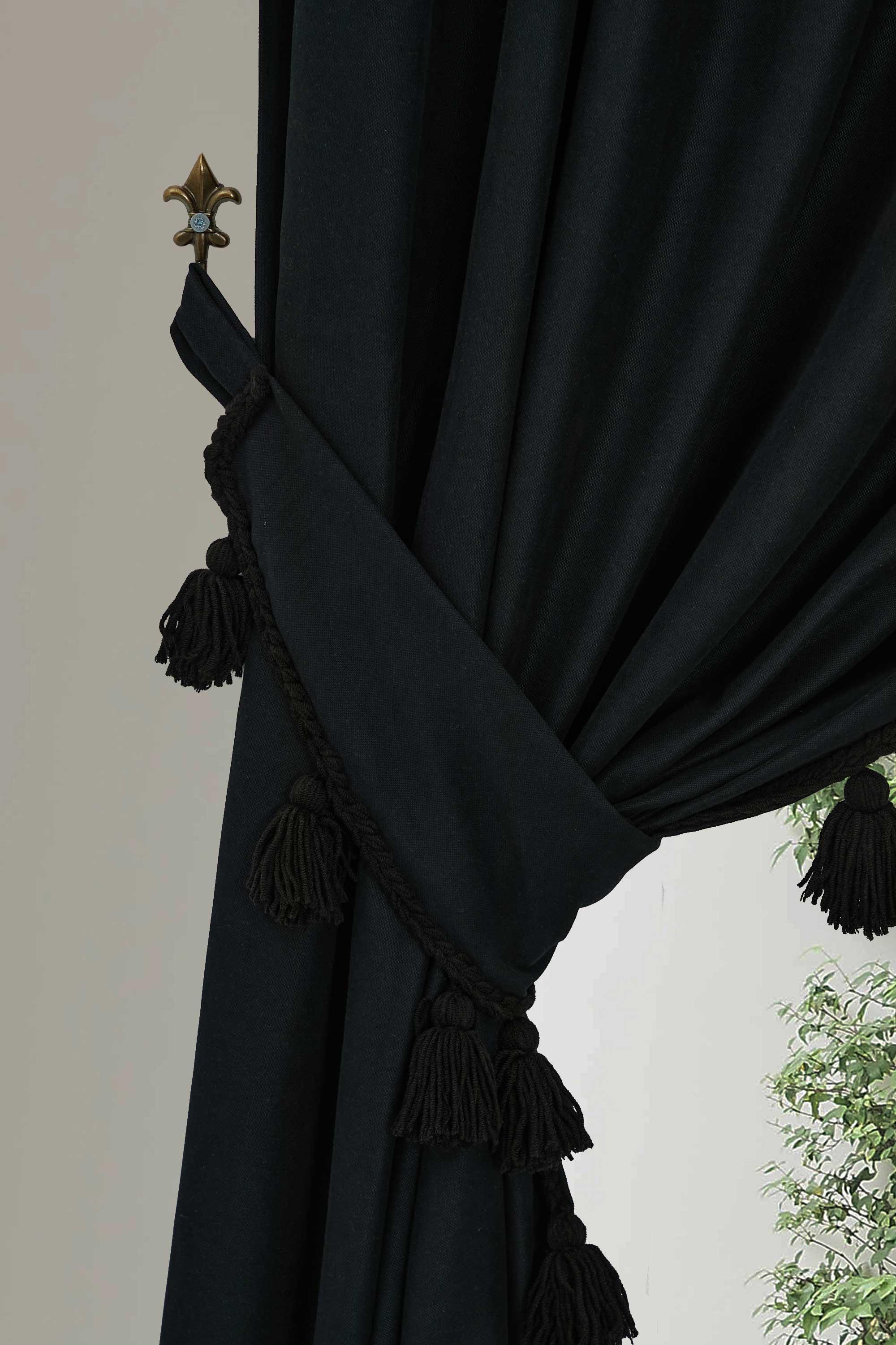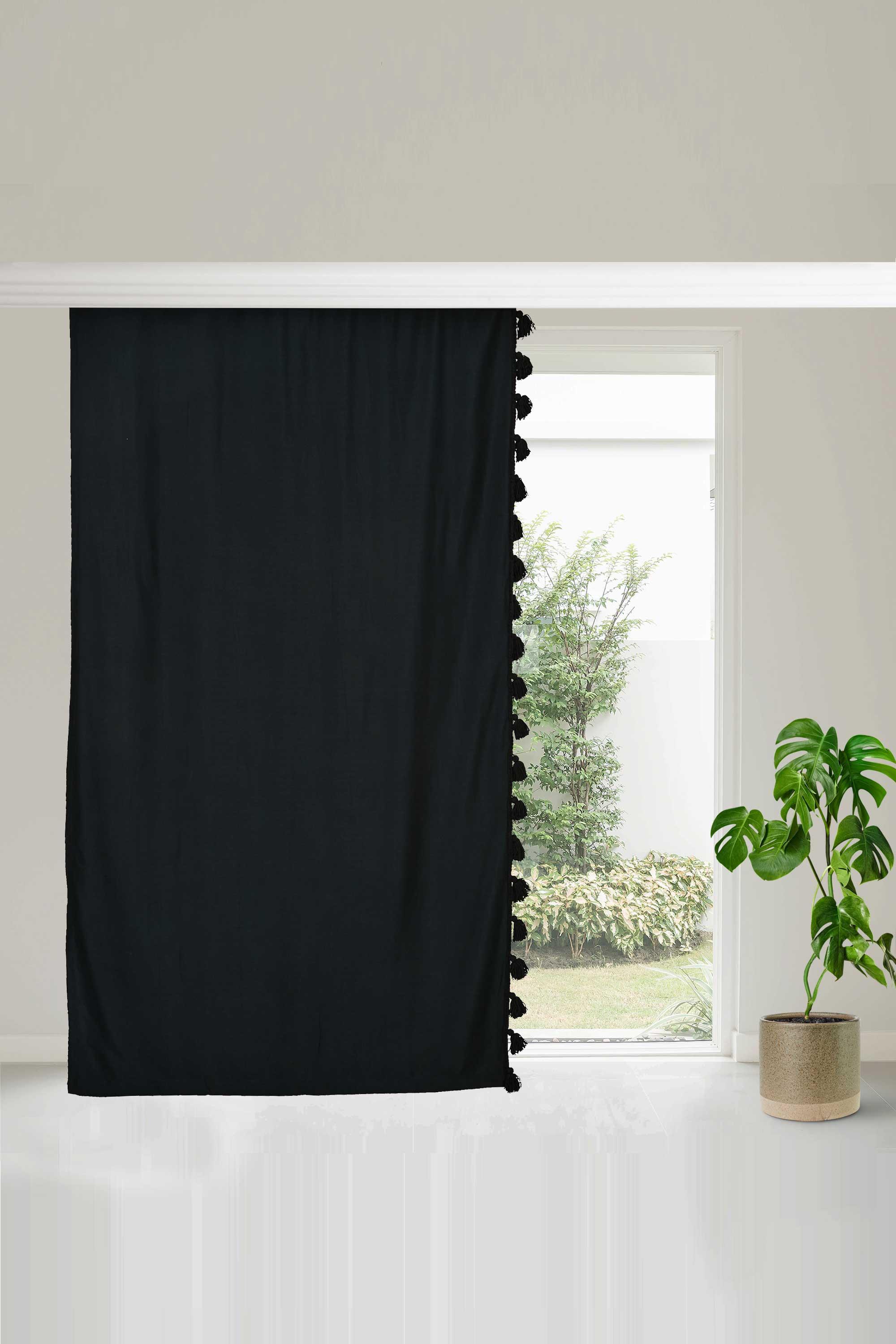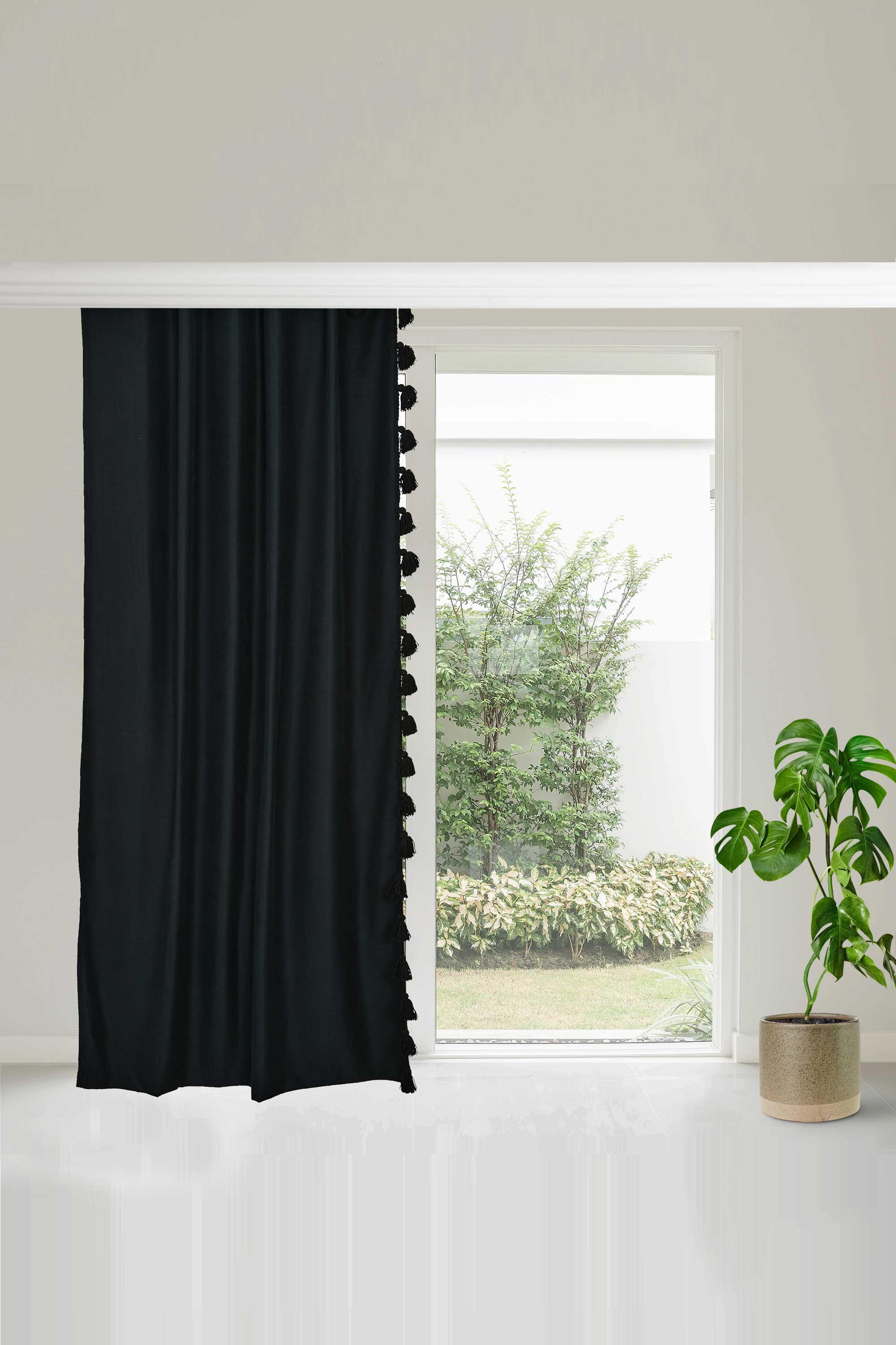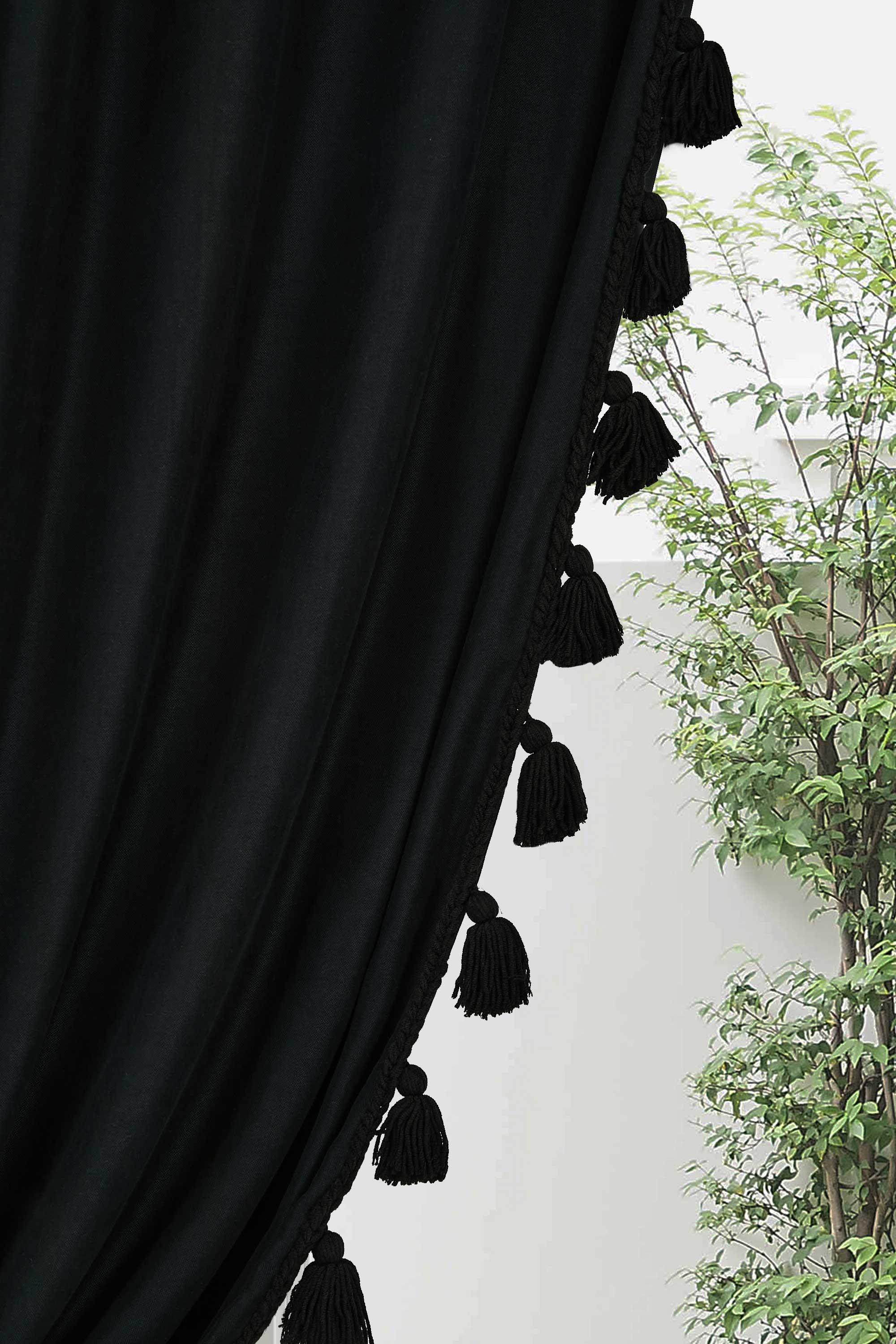 Püskül Kenarlı Fon Perde Sol Kenar 245x140 cm,PR-1SOL Siyah