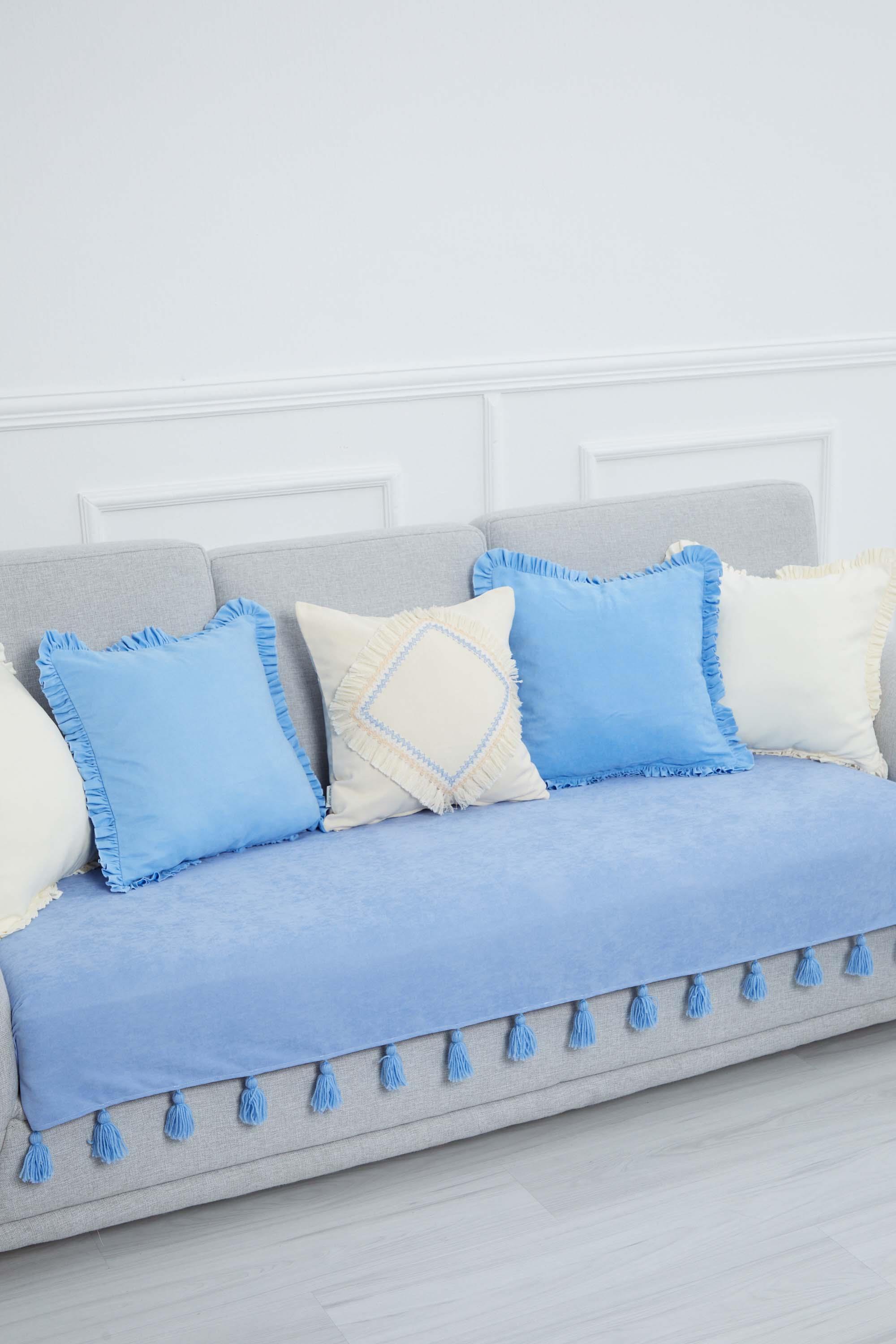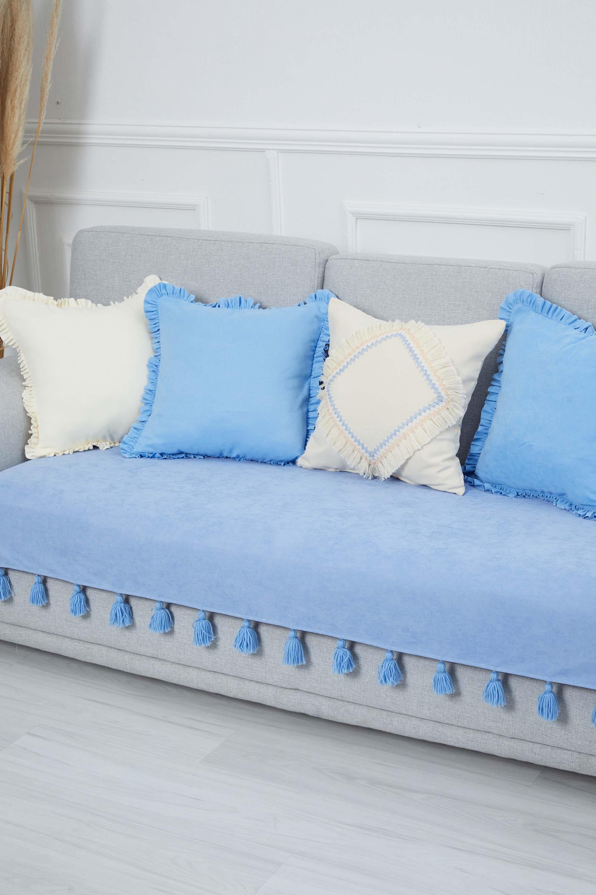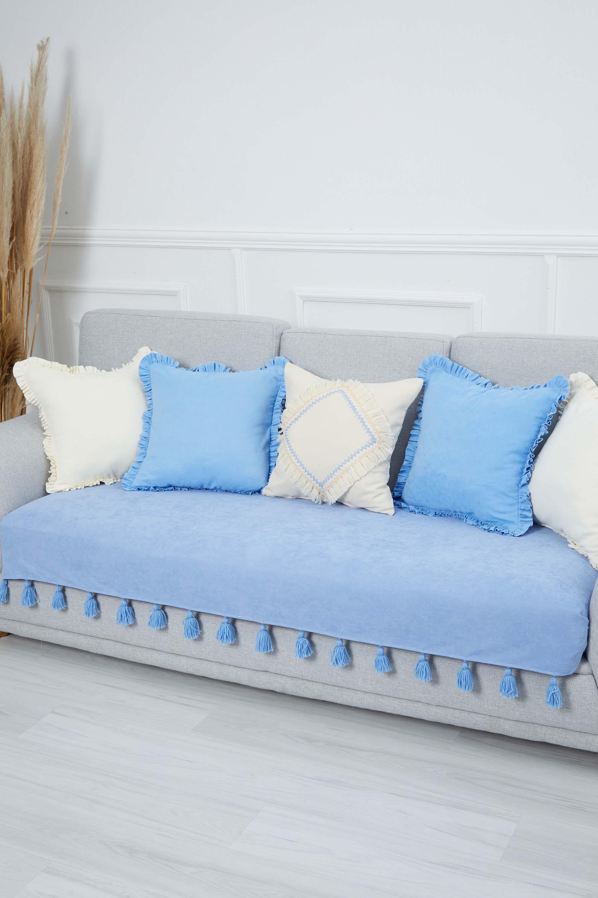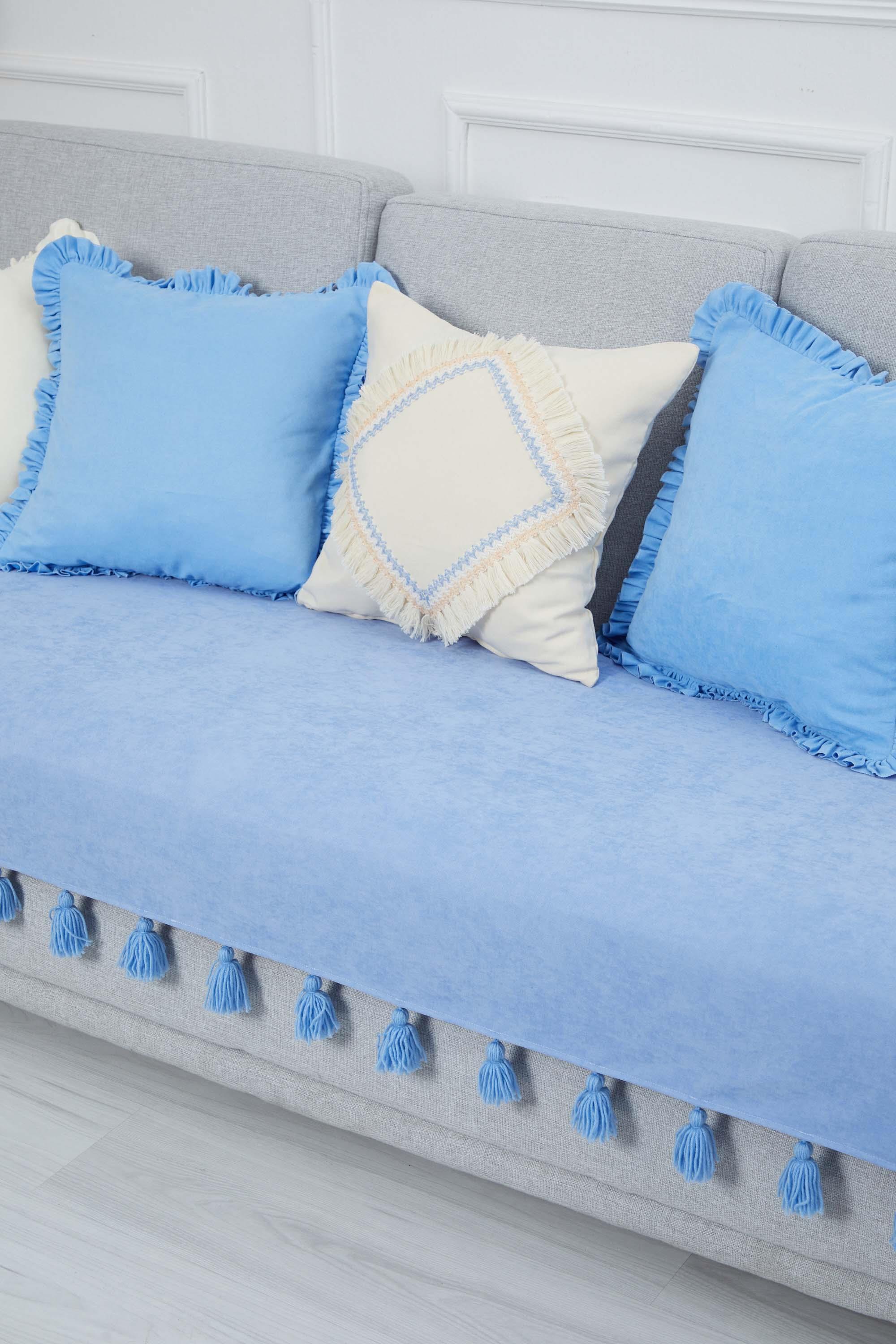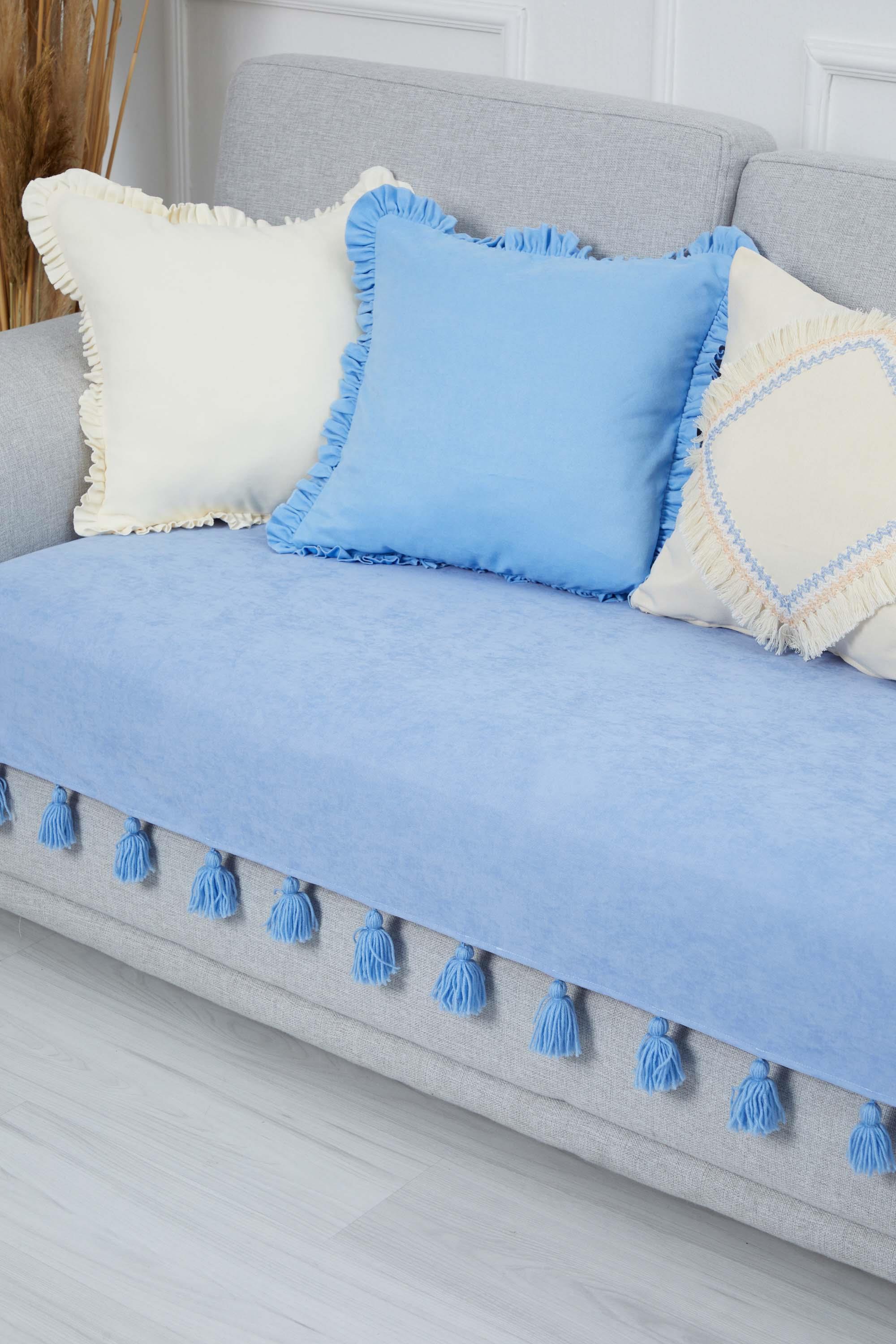 Püsküllü Koltuk Örtüsü 90 x 210,KO-19 Bebe Mavi