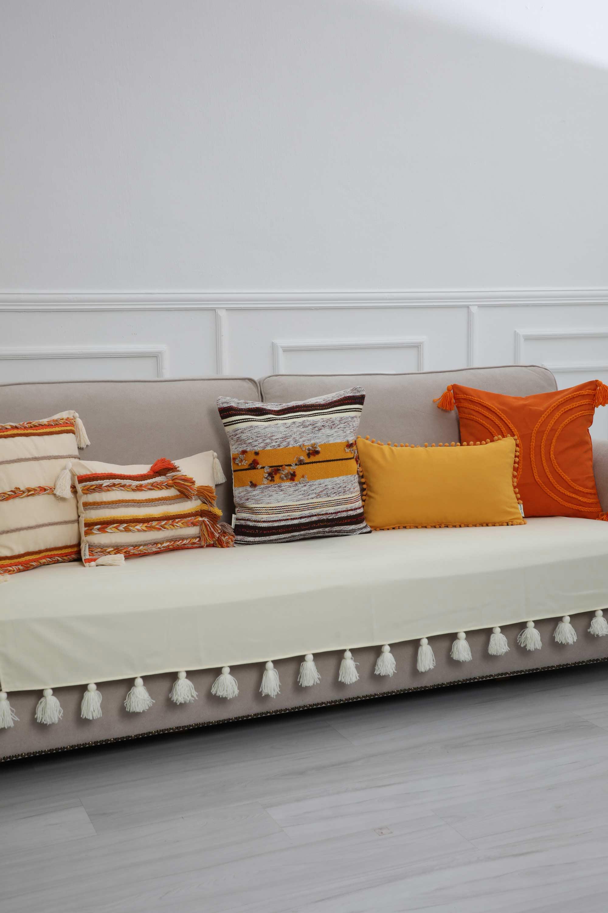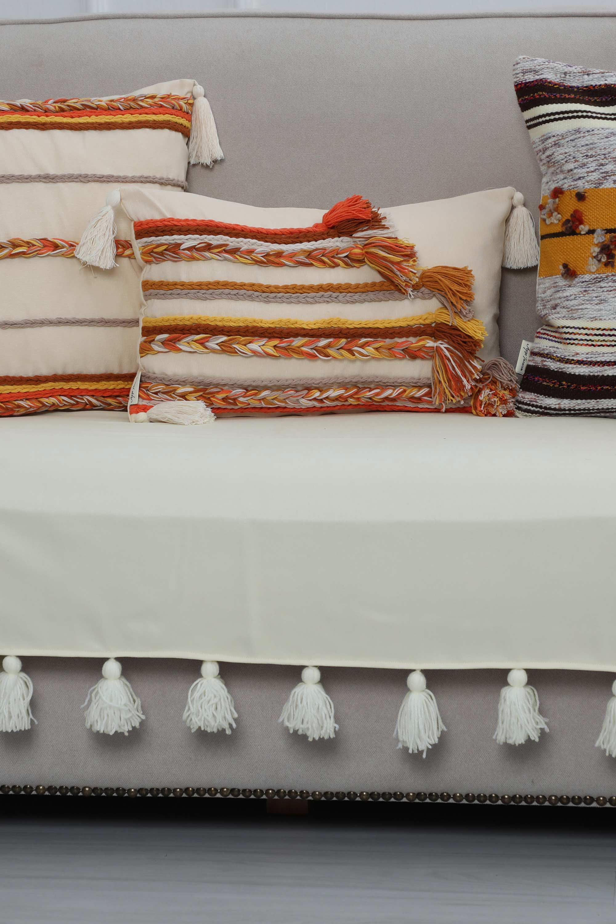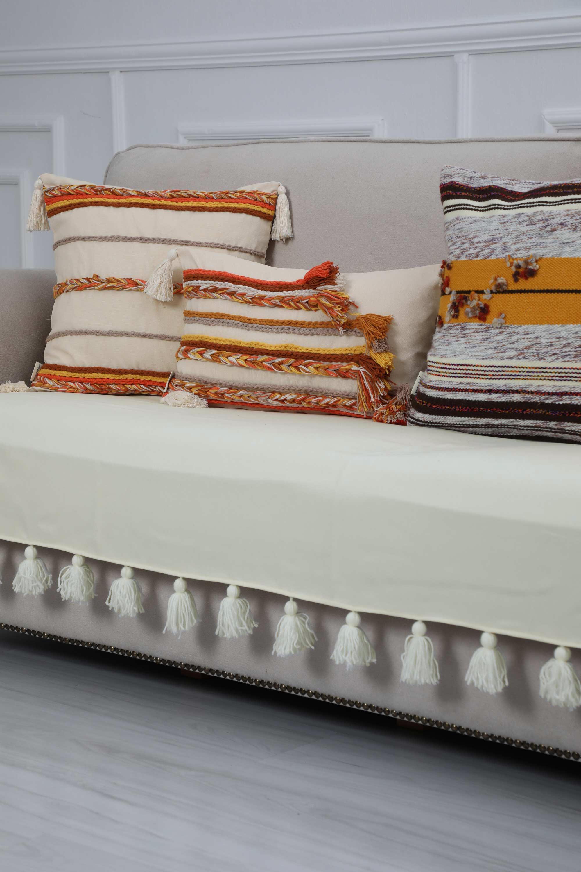 Püsküllü Koltuk Örtüsü 90 x 210,KO-19 Ekru