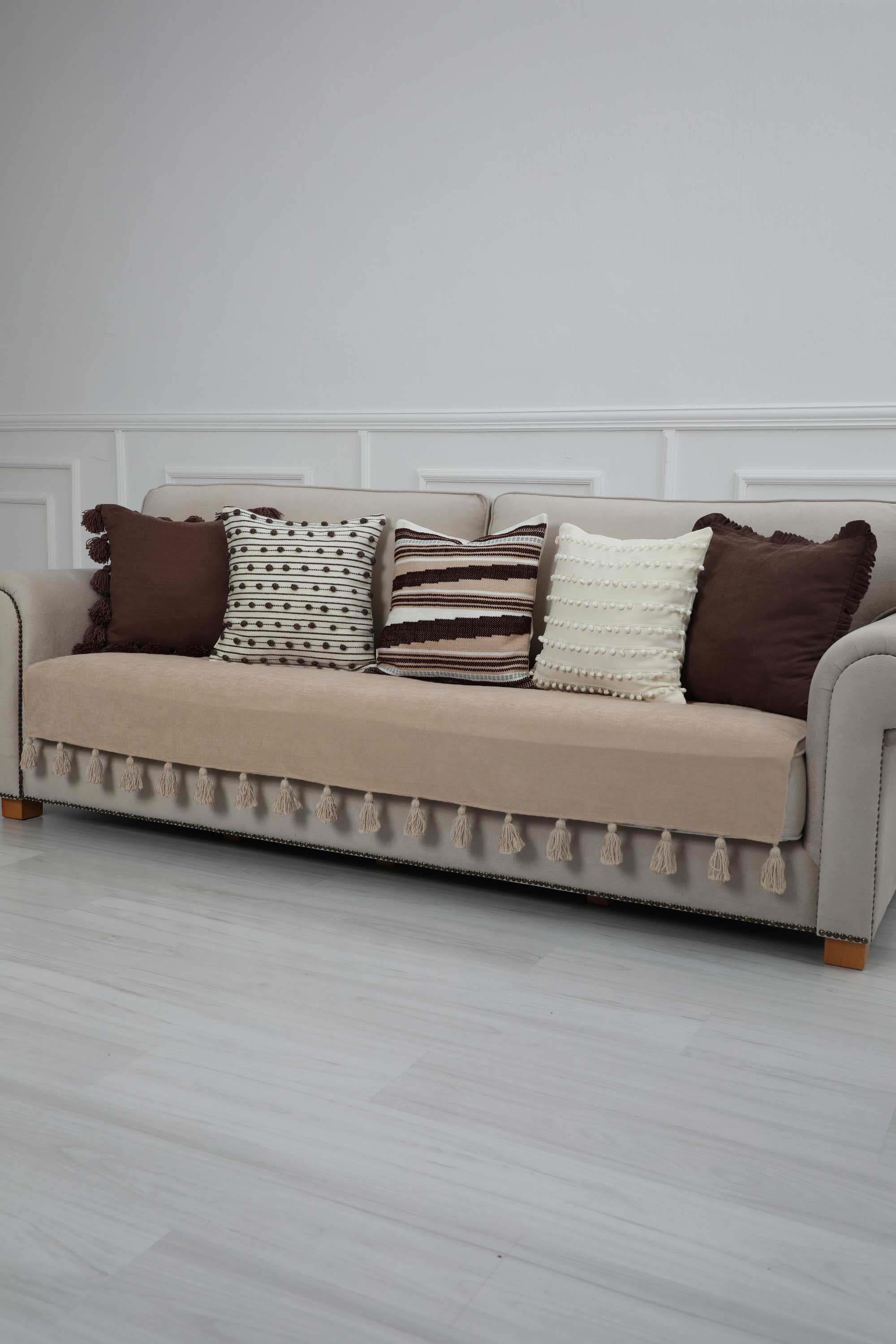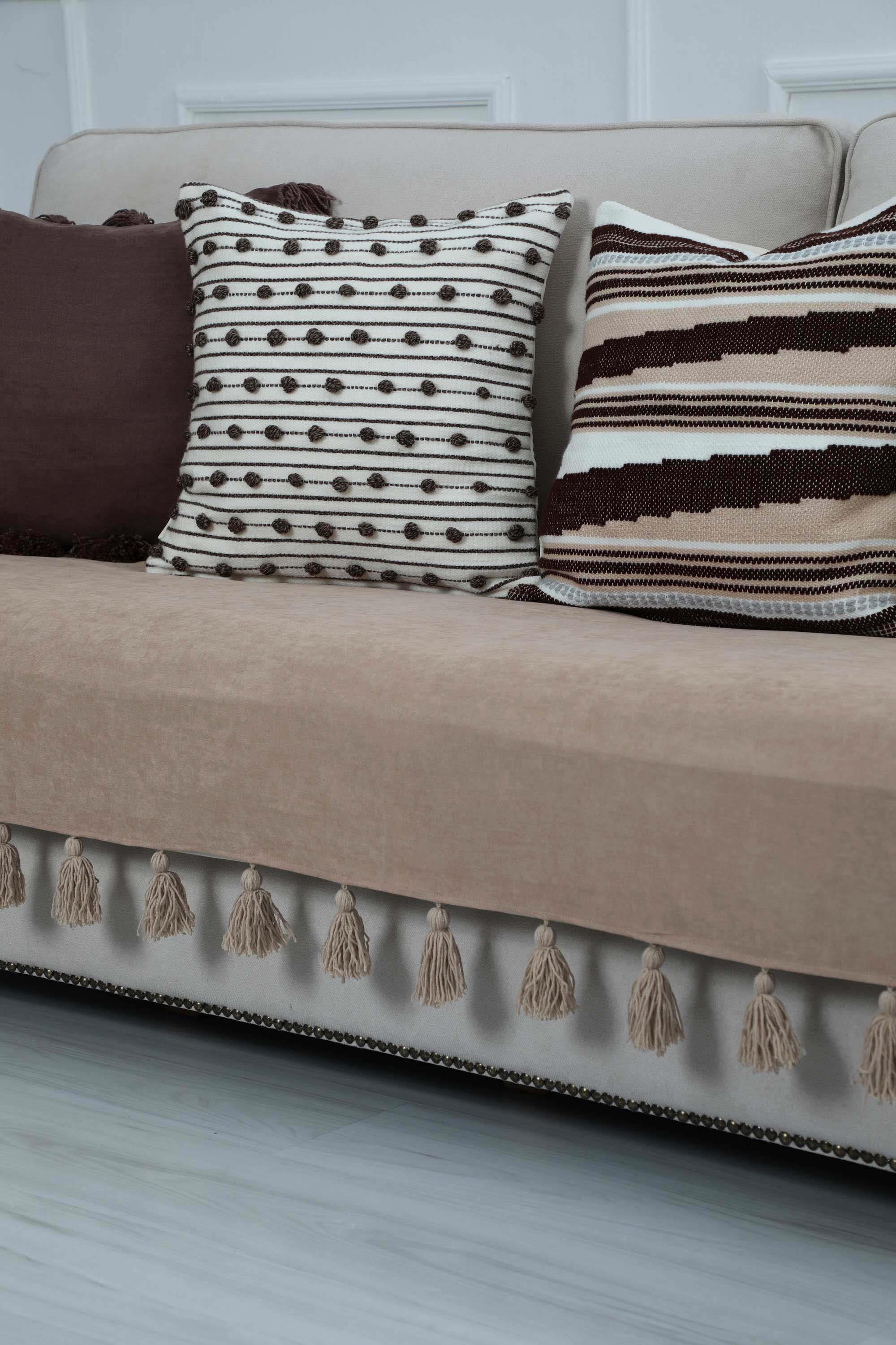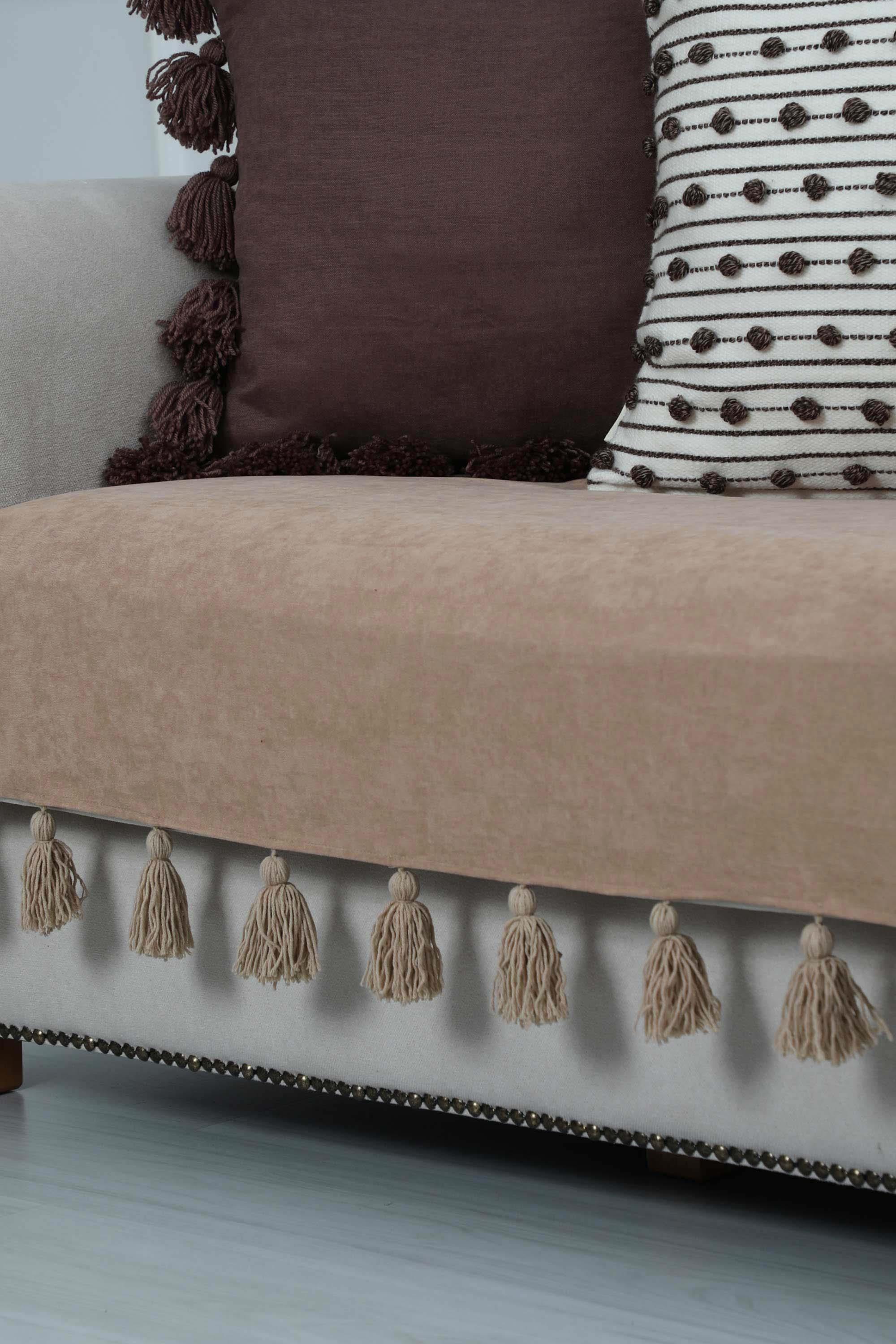 Püsküllü Koltuk Örtüsü 90 x 210,KO-19 Vizon