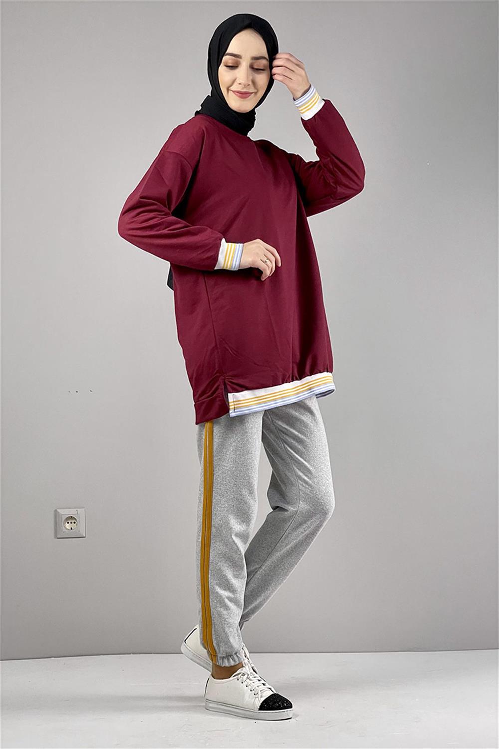 Ribana Çizgili Sweat Bordo